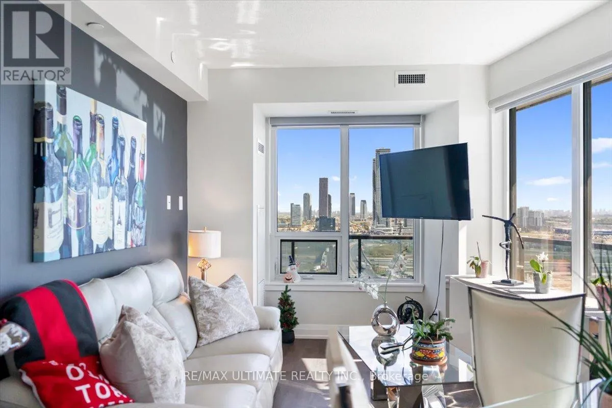 HIGHWAY 7 & WESTON RD Welcome to Unit 2008 at Centro Square Condominiums, where modern living meets unmatched convenience in the heart of Vaughan. This spacious 2-bedroom, 2-bathroom corner suite offers a bright layout filling the home with natural light and providing sweeping views of the city skyline over a wrap-around balcony. The kitchen is equipped with upgraded stainless steel appliances, seamlessly flowing into the combined living and dining area. Both bedrooms are generously sized, with the master featuring its own ensuite, while the second full bathroom ensures comfort for family, guests, or a work-from-home setup. Residents enjoy access to resort-style amenities including a fitness centre, indoor pool, party and meeting rooms, golf simulator, outdoor BBQ and lounge area, billiards & media rooms, guest suites, and 24-hour concierge service. Perfectly located with direct access to shopping, dining, and entertainment all across the street, major highways, and just minutes from Vaughan Metropolitan Centre subway station, this unit delivers the ideal blend of style, function, and urban lifestyle. Top of the line upgrades added include under-mount lighting, glass shower enclosure in master ensuite, stainless steel appliances, full-size washer & dryer, mirrored closet doors, kitchen cabinetry, and bath & kitchen fixtures. (id:27476)
