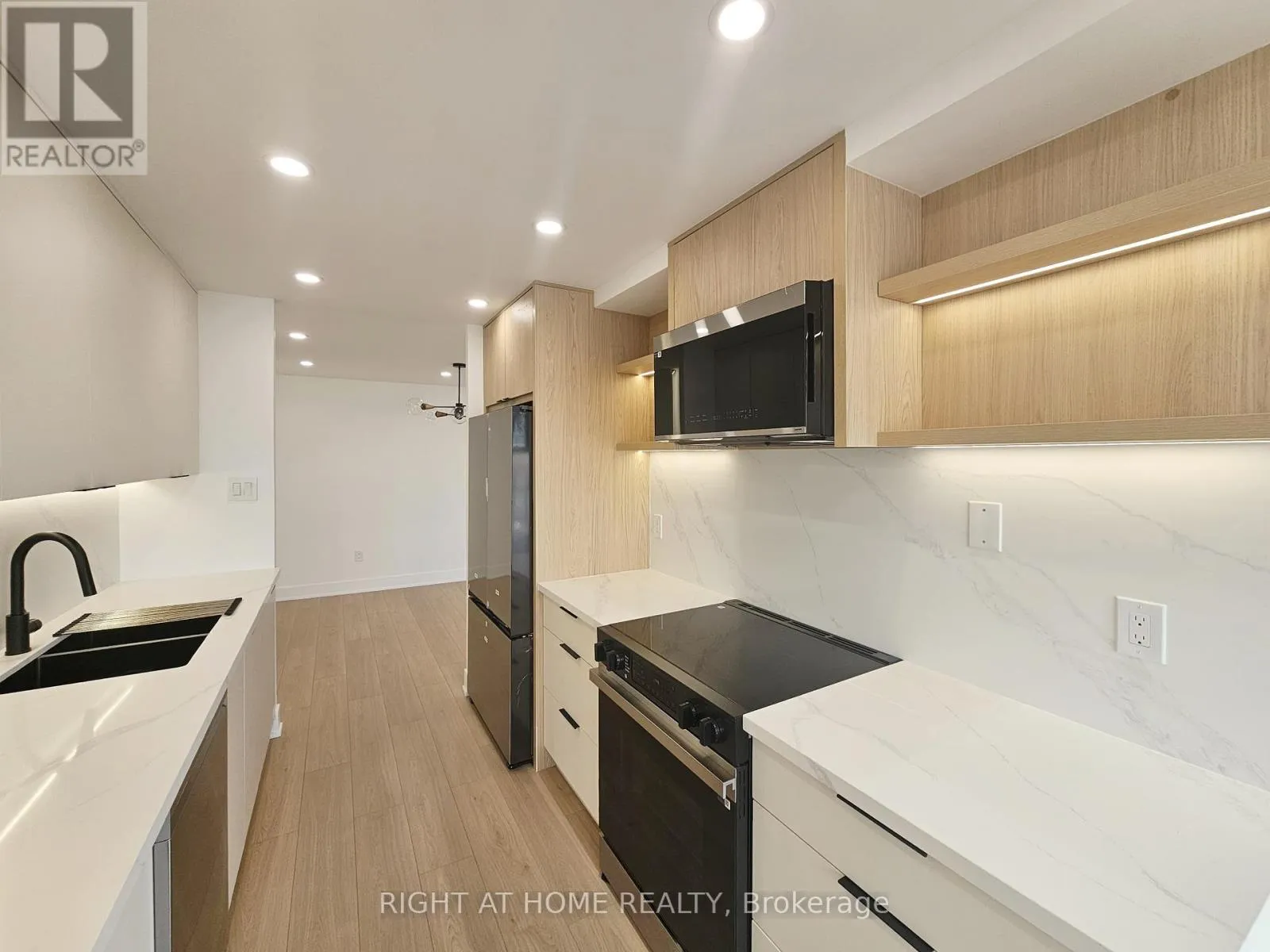 Bathrust & Clark Welcome to this Professionally Designed and Fully Renovated Masterpiece in the Heart of Thornhill! This bright and spacious 2-bedroom, 2-bathroom suite offers an elevated living experience with a beautifully executed open-concept layout. The condo features trending floors throughout, smooth floating ceilings accented with LED rope lighting and pot lights, and custom built-in closets that add both style and functionality. The generous dining area includes a striking designer feature wall ideal for showcasing your best art, while the bright living room is enhanced with a custom built-in TV cabinet, a wall-mount plate surrounded by LED lighting, and an integrated office/den space that seamlessly extends the living area.The stunning Chef's kitchen is designed for both cooking and entertaining, complete with modern cabinetry, stainless steel appliances, quartz countertops, a stylish backsplash, and a separate breakfast area. The fully upgraded primary bedroom offers "His & Hers" closets and a luxurious 4-piece ensuite with a glass shower. The spacious second bedroom includes a custom double closet, and the suite is further enhanced by an ensuite laundry room, LED mirrors, upgraded plumbing fixtures, and custom zebra blinds.Located within walking distance to places of worship, pharmacies, Promenade Mall, the bus terminal, library, parks, schools, and grocery stores, the convenience is unparalleled. Residents enjoy a full range of amenities, including a gated entrance with 24-hour security, an outdoor pool, a fitness room, tennis and pickleball courts, a racquetball and squash court, a sauna, party, meeting, and recreation rooms, guest suites, and an upcoming concierge service. The lobby and hallways have all been recently remodelled and renovated, adding to the building's fresh and modern appeal. **The monthly maintenance fee covers heat, hydro, water, cable, central air conditioning, internet, and an alarm system, offering exceptional value and effortless living** (id:27476)