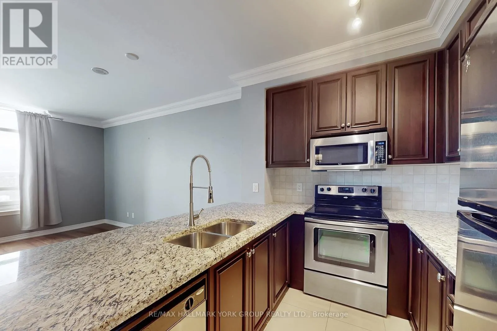 Cross Streets: Jane St/ Rutherford Rd. ** Directions: The entrance to the condo building is off Jane Street. Welcome to your new home in the prestigious Bellaria Tower 3. This bright and generously sized residence features rich dark laminate flooring, soaring nine-foot ceilings, two bathrooms, crown moulding, granite countertops, and stainless steel appliances. Enjoy an unobstructed north-facing view, ensuite laundry, and the rare convenience of TWO (2) parking spaces and TWO (2) lockers, offering exceptional storage. The open-concept layout provides excellent flexibility and can easily be converted into a two-bedroom home. Residents have access to an impressive selection of resort-style amenities, including concierge and security services, a theatre room, guest suites, fitness centre with sauna, games room, visitor parking, and a wine cellar. Step outside to over 20 acres of beautifully maintained green space and walking trails. Ideally located with quick access to Vaughan Mills, Highways 400 and 407, GO Transit, TTC, shopping, dining, and Cortellucci Vaughan Hospital. Cap off your holiday evenings by enjoying Canada's Wonderland fireworks from the comfort of your living room. This is a truly exceptional home offering a distinctive lifestyle opportunity not to be missed. (id:27476)