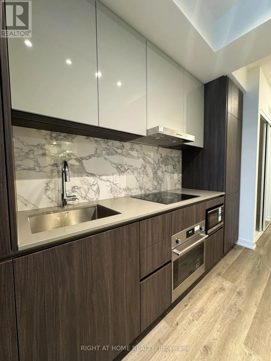 Hwy 7 & Hwy 400 Bright and modern 1+1 bedroom suite at Grand Festival in Vaughan Metropolitan Centre. Features a functional layout with floor-to-ceiling windows, a sleek kitchen with built-in stainless steel appliances, and a den with a door ideal for a home office, second bedroom, or guest room. Open-concept living area with quality finishes and a spacious 100 sq ft balcony, bringing total livable space to 643 sq ft (543 sq ft interior). Steps to VMC subway, YRT/Viva transit, restaurants, shops, parks, York University, and easy access to Hwy 400/407. Image is a virtual rendering; the unit is unfurnished. Furnished option is a possibility. Parking may be rented through management, subject to availability, for an additional $250. (id:27476)