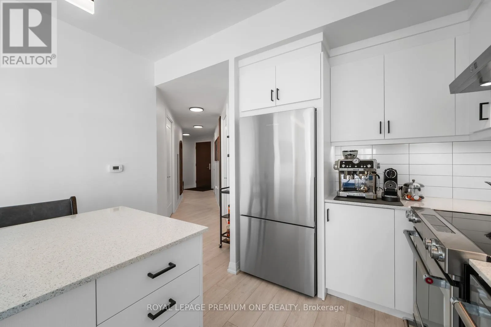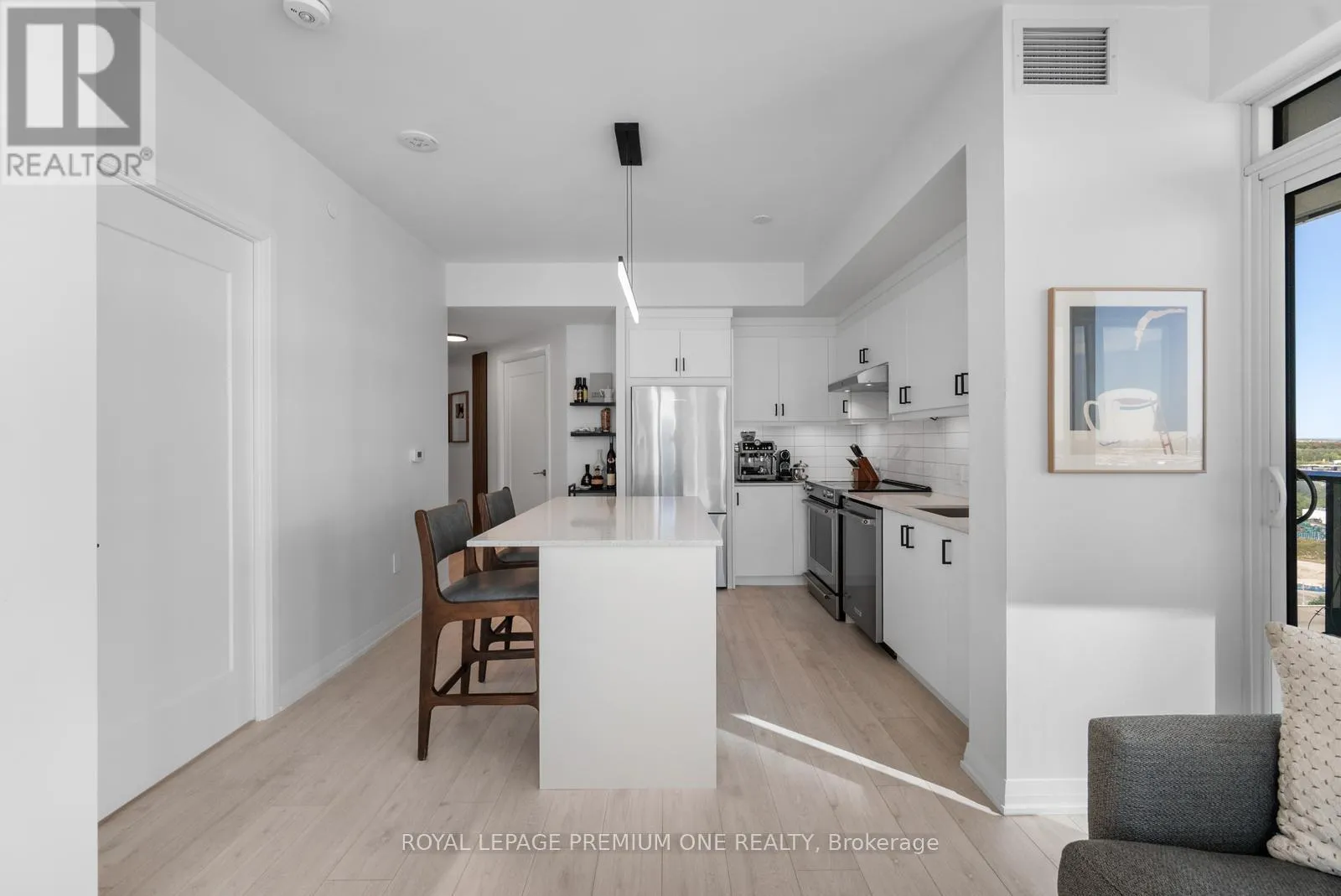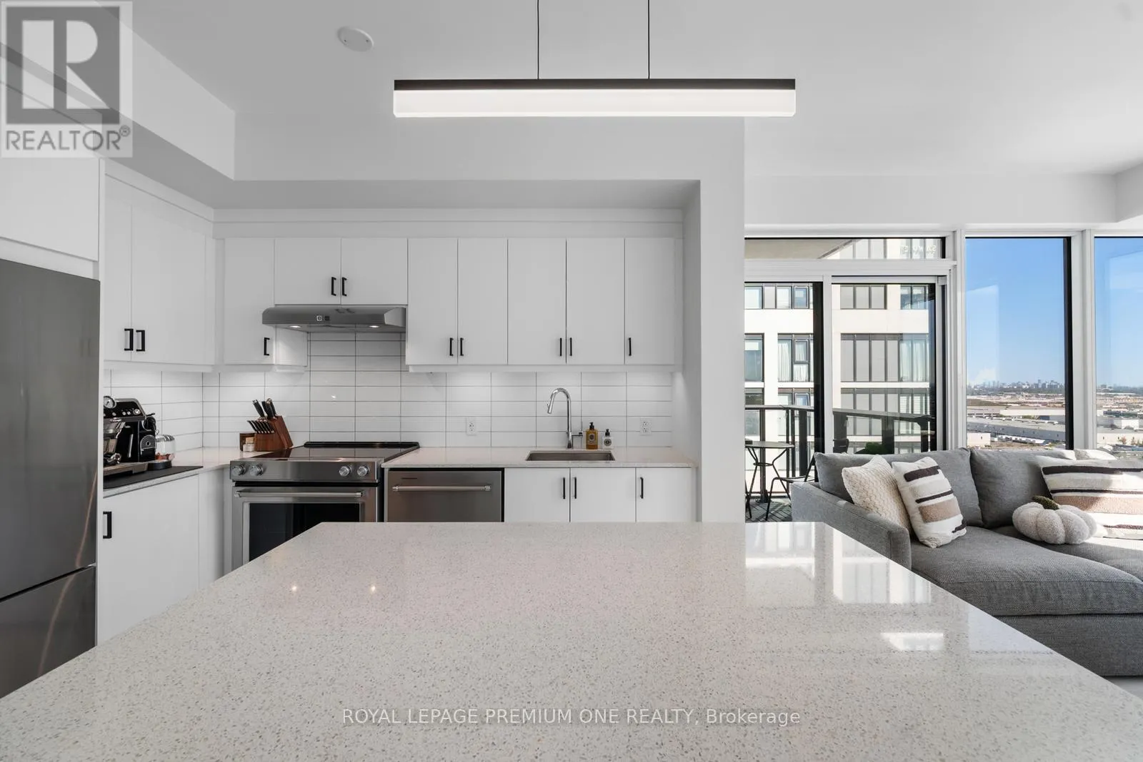JANE & RUTHERFORD Welcome to Charisma West Tower! This stunning 2 bedroom, 2-bathroom corner suite with parking and locker offers 875 sq. ft. of interior living space plus a 200 sq. ft. wraparound balcony with bright south-east exposure. Featuring a highly sought-after split bedroom layout, soaring 9 ft. ceilings, premium flooring, and countless upgrades, this unit has it all. The sleek modern kitchen boasts a centre island, quartz countertops, designer backsplash, upgraded moulding, and full-size stainless-steel appliances, while both bedrooms are outfitted with custom cabinetry closets. The spacious open-concept living and dining area is filled with natural light, creating a warm and inviting atmosphere. Residents enjoy access to exceptional building amenities including a 24-hour concierge, Wi-Fi lounge, and 7th floor wellness centre. Perfectly located steps from Vaughan Mills, TTC subway, VMC Bus Terminal, Viva Rapid Transit, Hwy 400/407, Cortellucci Vaughan Hospital, and Canada's Wonderland, this bright and beautifully upgraded unit is a must-see in a high-demand community! (id:27476)