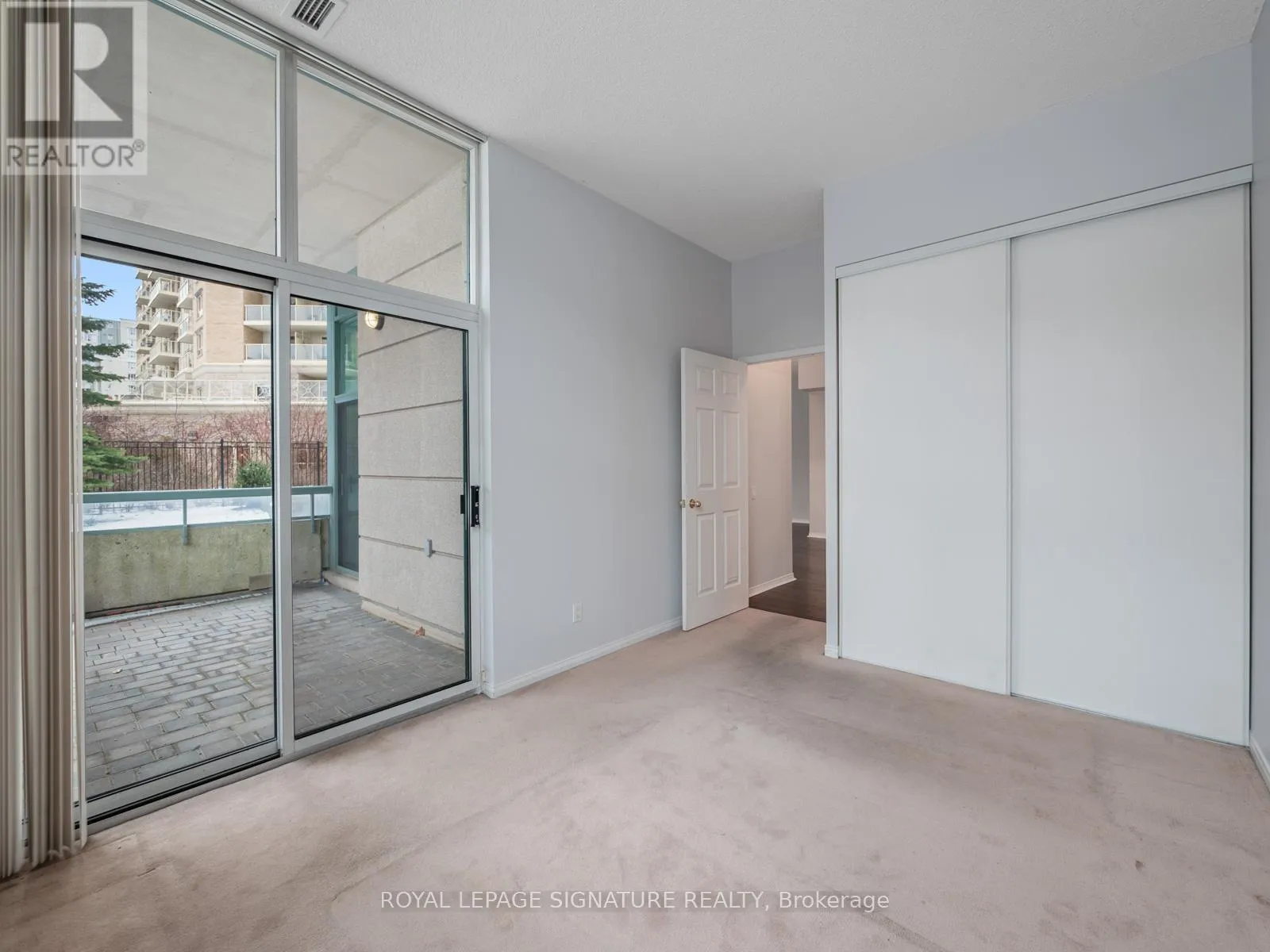 Bathurst St/Steeles Ave W Welcome to 5 Emerald Lane #102. This bright and spacious 1 bedroom, 1 bath condo offers 860 sq.ft of functional living space with 10 foot ceilings. This ground floor suite provides a home like feel with a large private terrace, unobstructed North Eastern exposure and peaceful garden, outdoor pool, and library views. There are walk outs from both the kitchen and the bedroom, creating an easy indoor outdoor flow. The layout offers generous room sizes and excellent natural light throughout the day. Located in a well managed building with great amenities and close to transit, parks, shops, and everyday conveniences. (id:27476)