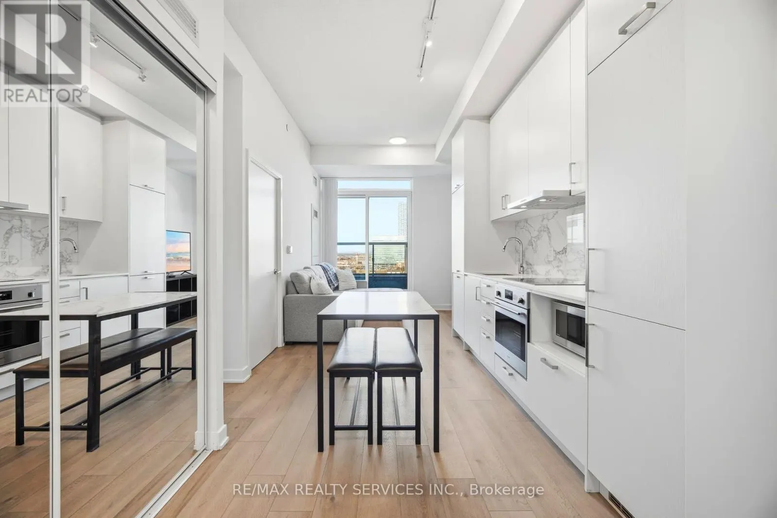 HWY 7 & Jane St. Welcome To Mobilio South Condos, A Bright Corner Unit Located In The Heart Of The Vaughan Metropolitan Centre. This Beautifully Designed 1 Bedroom Plus Large Den Features 9-Foot Ceilings And A Functional, Sought-After Layout With A Rare Wrap-Around Balcony Providing Expanded Outdoor Space And Multiple Access Points. The Spacious Den Includes A Walkout To The Balcony, Making It Ideal For A Bedroom Or Home Office. Floor-To-Ceiling Windows Provide Excellent Natural Light Throughout The Suite And Complement The Well-Proportioned Layout. The Unit Is In Excellent Condition And Offers Hardwood Flooring Throughout, Along With A Modern Kitchen Featuring Stainless Steel Stove And Cooktop And Fully Integrated Built-In Fridge And Dishwasher. Includes One Owned Parking Space Located On The First Level. Ideally Situated South Of Highway 7, East Of Highway 400, And North Of Highway 407, With Close Proximity To Vaughan Mills, IKEA, Walmart, Hospital, Restaurants, And Canada's Wonderland. Residents Enjoy A Full Selection Of Premium Amenities Including A Fitness Centre, 24-Hour Concierge, Party Room, Theatre, Games Lounge, Children's Playroom, Outdoor BBQ Area, Guest Suites, And Bike Storage. (id:27476)
