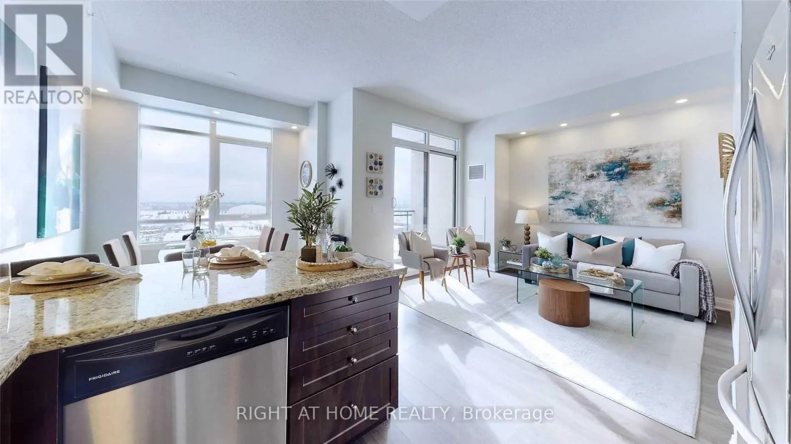 Cross Streets: Highway 7 & Martin Grove Road. ** Directions: South of Highway 7 on West side of Woodstream Blvd. Experience upscale living in this stunning Penthouse Suite in the luxurious Allegra Condos. This beautifully designed One Bedroom + Den Suite offers a bright, open concept design with modern laminate flooring throughout. The kitchen features stainless steel appliances, stone countertops and a functional breakfast bar. The spacious living and dining area create an inviting space to relax or host. Retreat to the large primary bedroom, complete with a private ensuite bath & spacious walk-in closet. The sizeable den provides a versatile space ideal for a home office, study nook or extra storage. With 9' ceilings throughout, a private balcony and unobstructed south facing views, this Penthouse Suite delivers a wonderful living experience! (id:27476)