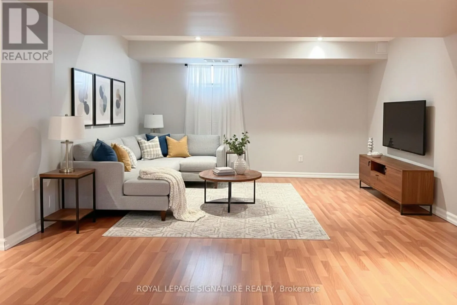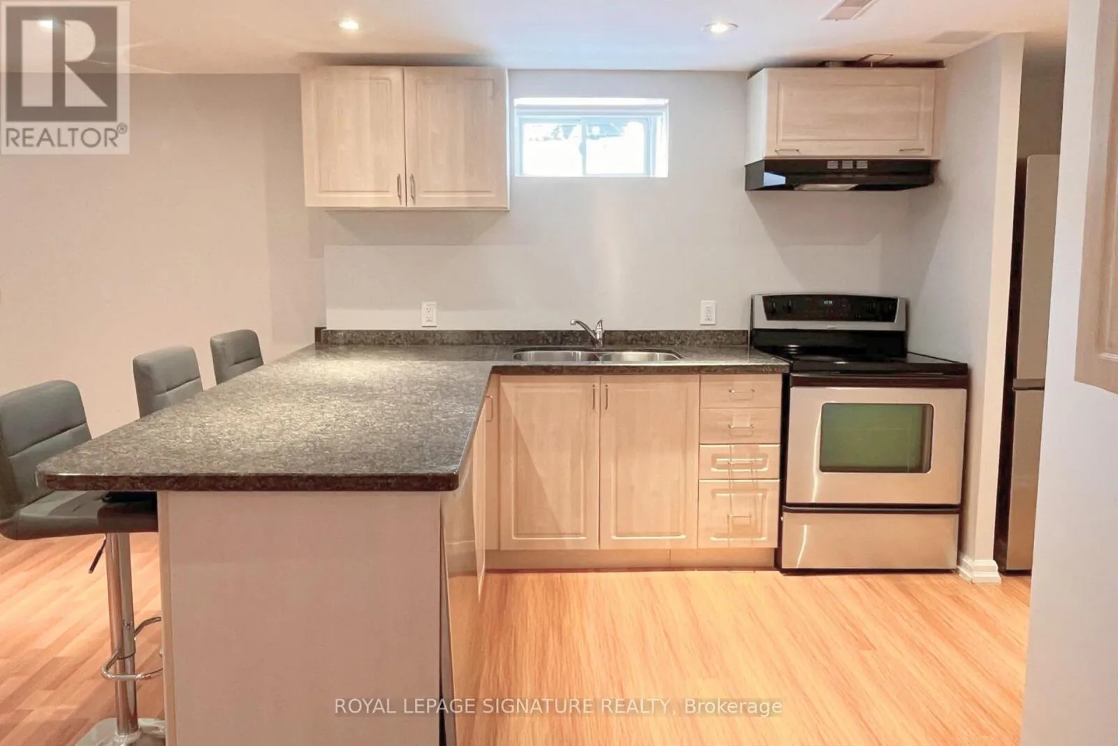 Pine Valley & Hwy 7 Exceptionally spacious two bedroom basement apartment located in a desirable Vaughan neighbourhood. This modern and well maintained suite features a bright open concept layout with oversized principal rooms, pot lights throughout, and a stylish kitchen complete with a peninsula offering additional prep space and seating. The unit also includes in suite laundry and ample storage, providing both comfort and functionality. One parking space is included. Conveniently situated close to restaurants, shopping, grocery stores, public transit, and with easy access to Highways 407 and 427. An excellent opportunity to lease a generously sized, contemporary basement apartment in a sought after community. Professional Managed By Condo1Property Management Inc. **Photos are for illustrative purposes only and may include digital enhancements** (id:27476)