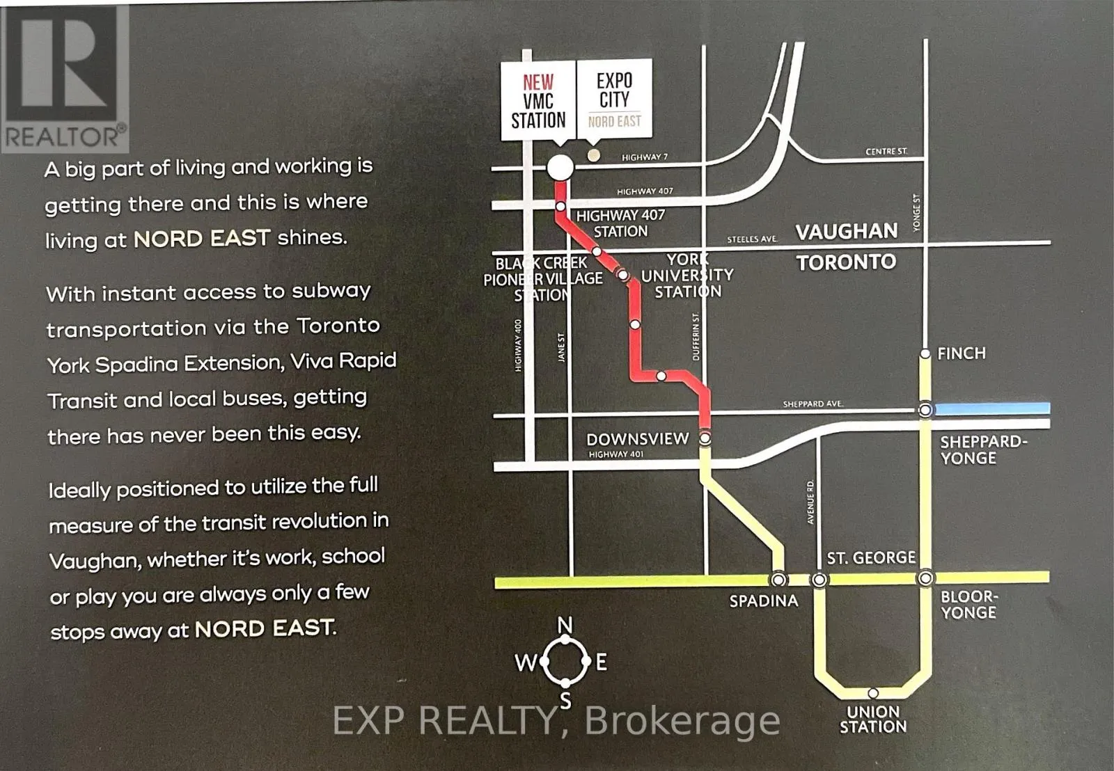 Cross Streets: Highway 7 / Jane. ** Directions: Highway 7/Jane. Welcome to Suite 805-2908 Highway 7 Rd! Experience urban living in the heart of Vaughan Metropolitan Centre. This suite features a bright open-concept layout with one bedroom plus den, 2 bathrooms, laminate floors, and floor to ceiling windows. With its open-concept layout, 9-foot ceilings, and an abundance of natural light, this suite offers both comfort and style. The sun-filled kitchen features stainless steel appliances, modern backsplash, quartz countertop, and the convenience of an eat-in option. The spacious primary bedroom features his and hers closet space, a four piece ensuite bath, and gorgeous Southwest views. The versatile den functions as a second bedroom, nursery, or home office. The unit has been freshly painted and professionally cleaned! Enjoy the convenience of an ensuite laundry and 1underground parking spot with an ideal location steps from the parking entrance and elevators. Beautiful Southwest views from the large balcony complete this suite! Premium building amenities include a fully-equipped fitness centre with yoga studio, indoor swimming pool, an entertainer's party room, movie theatre, guest suites, rooftop terrace with BBQ access, parks, retail space, concierge, and many more! Enjoy effortless commuting with quick access to TTC, YRT, Viva, Go Transit, and all major highways (400/401/407)! Neighbourhood amenities are located steps away and include Vaughan Shopping Centre, Costco, cafes, restaurants, banking, and grocery stores. Come and view today! (id:27476)