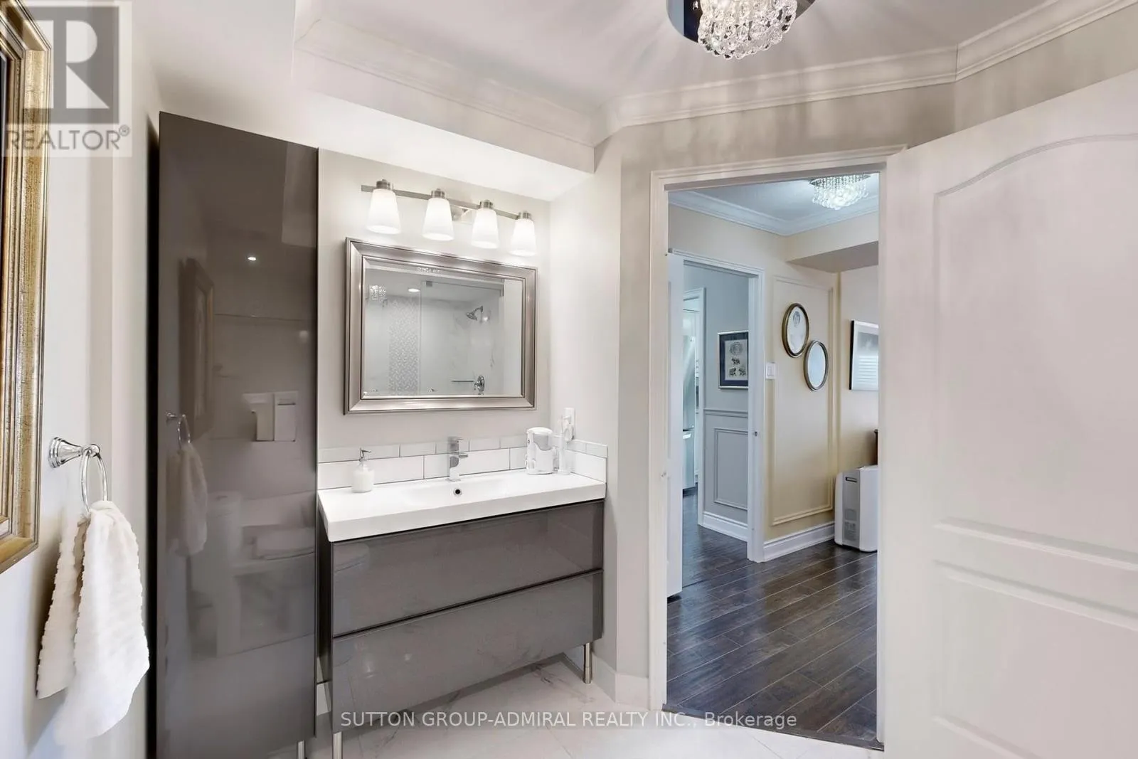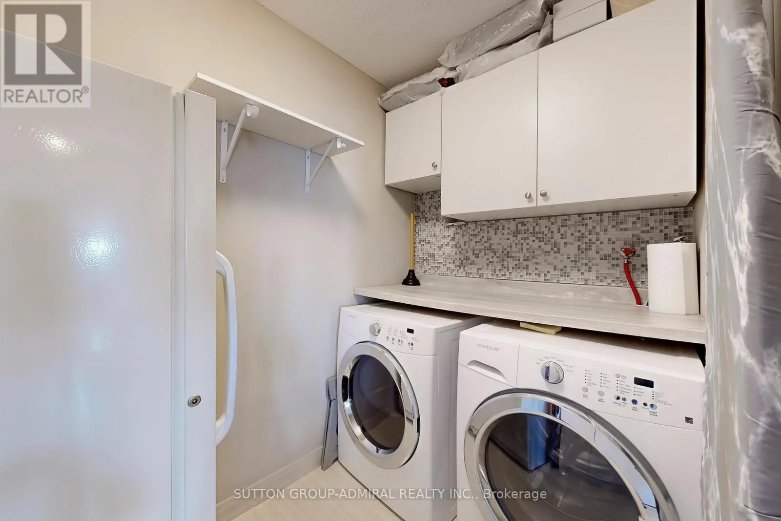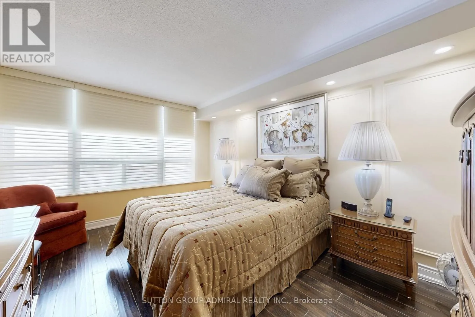 Bathurst/Steeles Step into this beautifully renovated residence located in one of Vaughan's most sought-after condominium buildings. Offering nearly 1400 sqft. of thoughtfully designed living space, this exceptional unit is ideal for both everyday living and entertaining,. Elegant crown moulding, wainscoting, and custom window coverings are featured throughout. The sun-filled kitchen boasts stainless steel appliances, granite countertops, and a custom-built pantry for added storage. The spacious primary bedroom includes a large walk-in closet, custom electric blinds, and a stunning ensuite bathroom. Additional highlights include custom built-in shelving in the front hall closet, Custom cupboards in laundry room with side by side washer/dryer and additional freezer, two side-by-side parking spaces, a locker, and an open balcony with beautiful northwest views. Residents enjoy an impressive array of amenities, including an indoor pool, hot tub, sauna, fitness centre, squash, tennis and pickleball courts, gazebo, and 24-hour concierge and security. Ideally located just steps from transit, shopping, restaurants, cafés, and places of worship. A truly exceptional opportunity not to be missed. (id:27476)