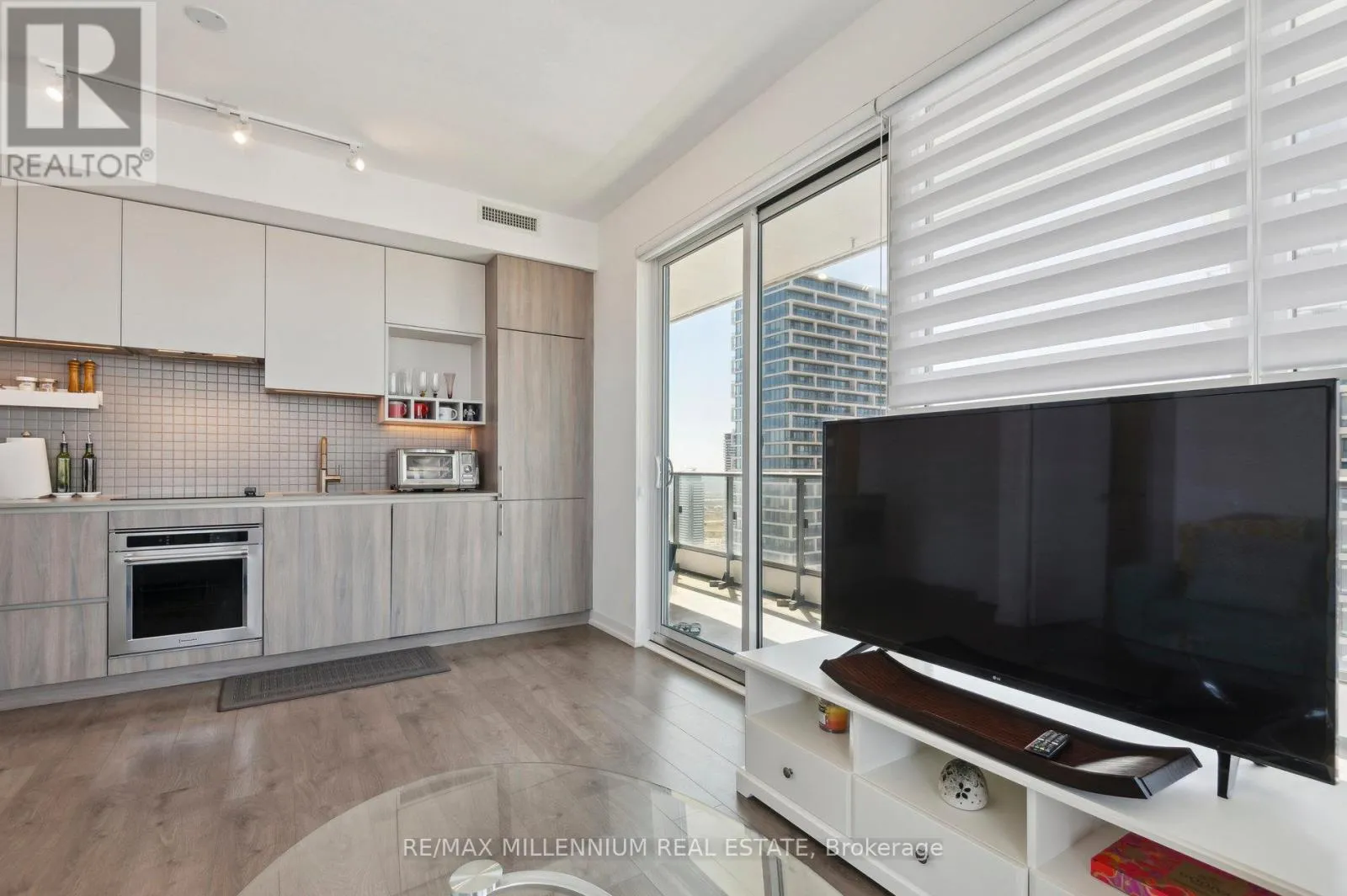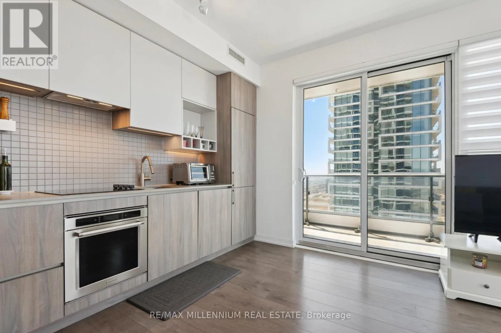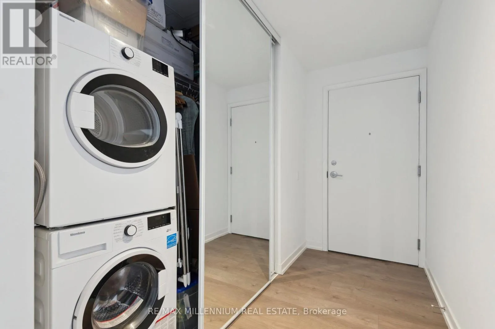 Highway 7/Jane St Welcome to Transit City 3 at the Vaughan Metropolitan Centre, a stunning residence in a vibrant master-planned community featuring a beautifully designed 9-acre park and unbeatable connectivity just steps from the VMC subway station, Viva and Züm transit, with York University, Vaughan Mills, and the YMCA nearby. This bright two-bedroom suite offers a highly functional layout with 9-foot ceilings, floor-to-ceiling windows, and unobstructed north-west views from a private balcony, complemented by laminate flooring throughout and a modern kitchen with upgraded cabinetry and built-in appliances. Enjoy excellent building management and exceptional amenities, with all built-in kitchen appliances (flat-top stove with oven, integrated fridge, dishwasher, hood fan, and microwave), front-load washer and dryer, all existing light fixtures and window coverings, and one parking space included. (id:27476)