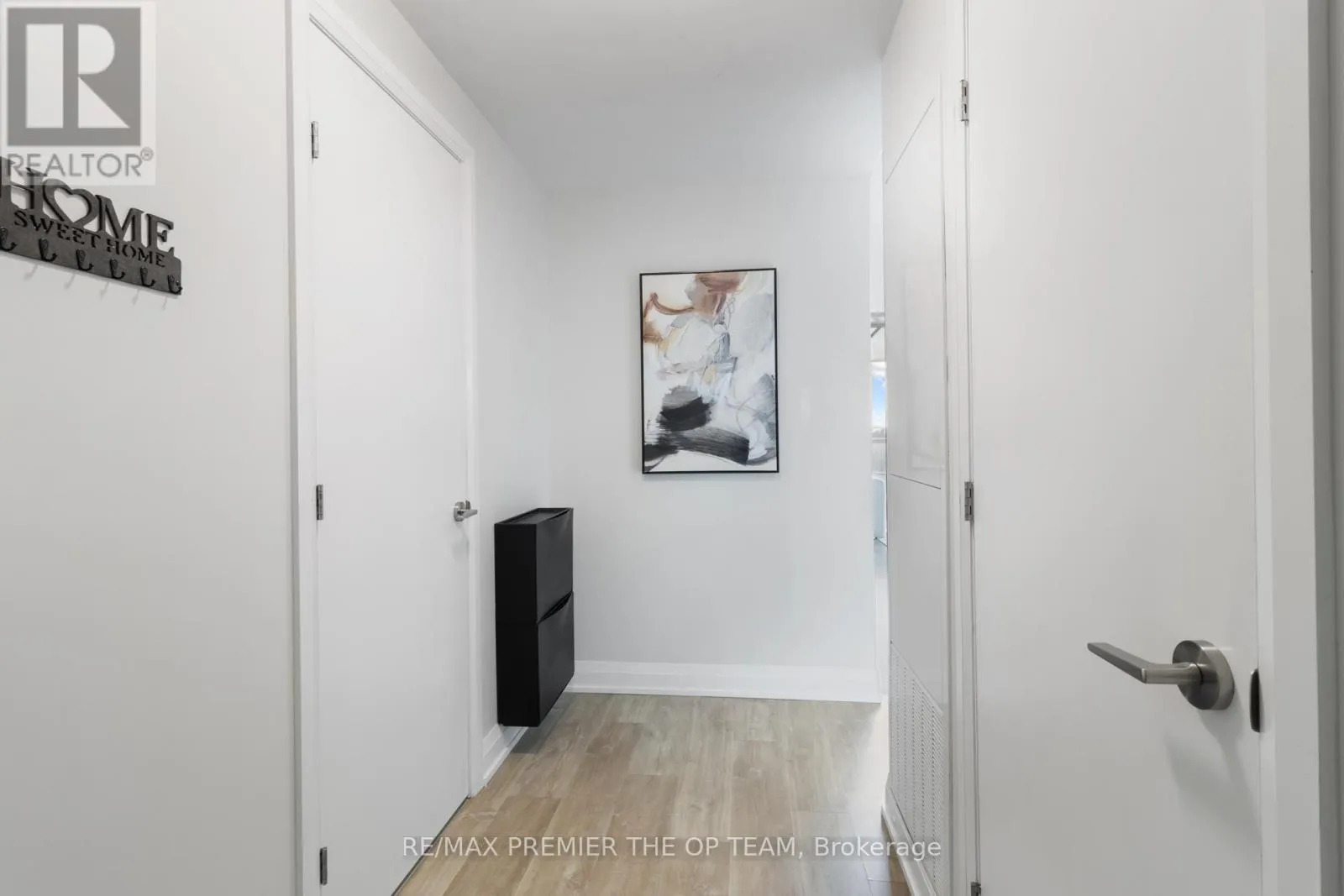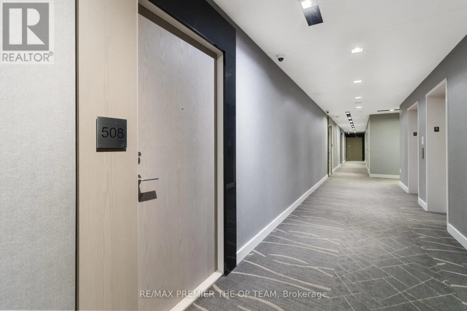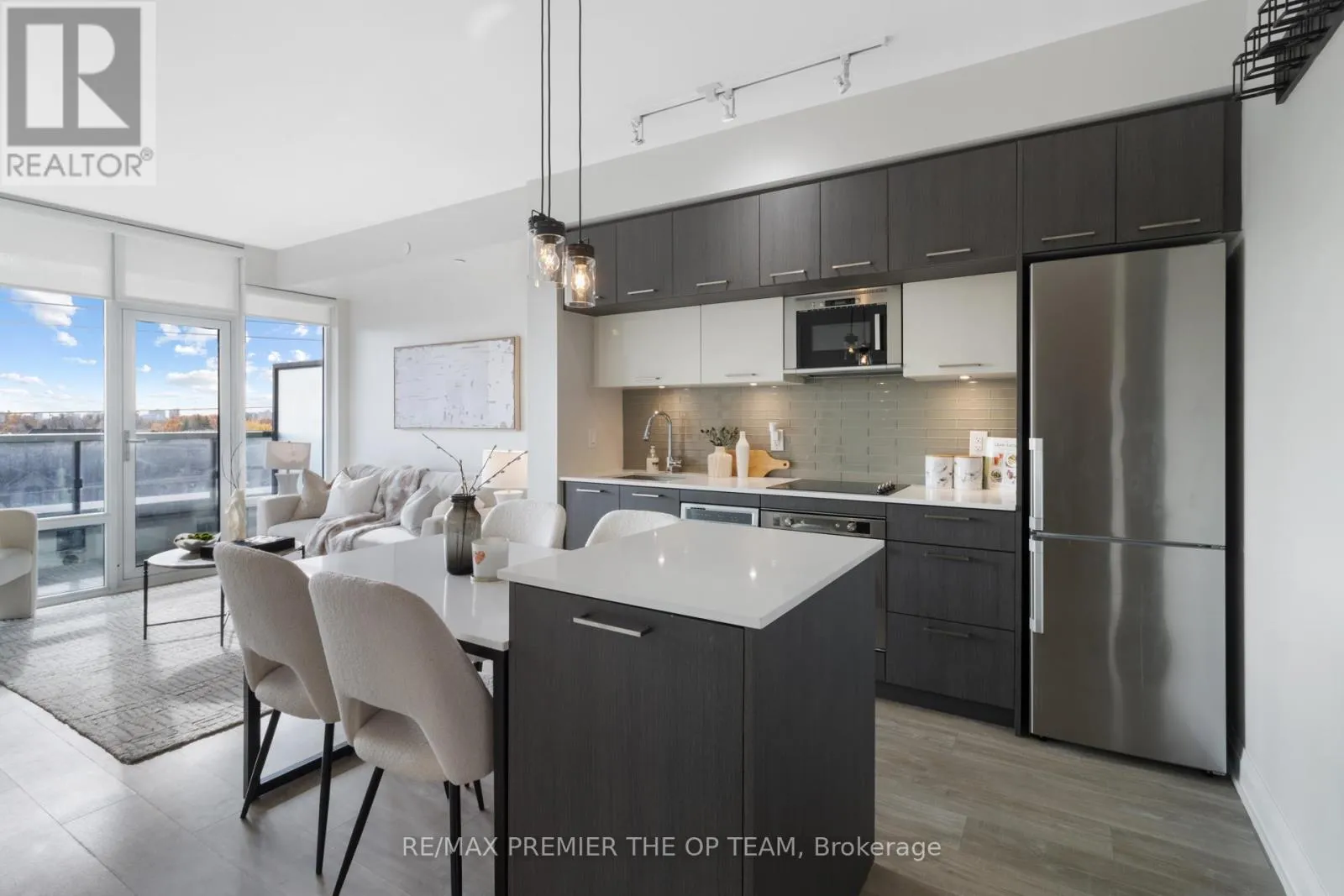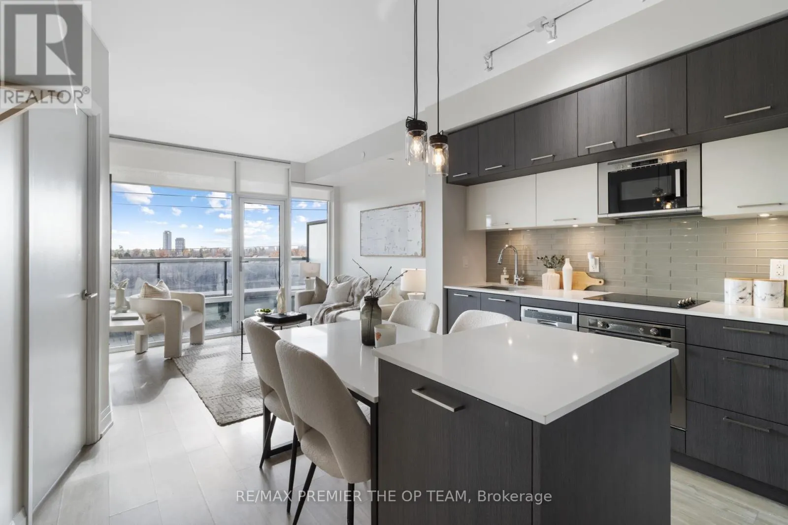 Pine Valley Dr & Highway 7 W Welcome to Unit 508 in the prestigious Avenue On 7 condo building-an impressive 2-bedroom, 2-bath suite featuring soaring 9-foot ceilings and beautifully upgraded finishes throughout. The open-concept kitchen offers quartz countertops, a stylish backsplash, a center island with seating, and stainless steel appliances, making it perfect for both cooking and entertaining. The second bedroom provides versatility as either a spacious home office or a comfortable guest room, complete with its own closet. An inviting foyer welcomes you with a generously sized 2-piece guest bathroom and convenient en-suite laundry. Floor-to-ceiling windows fill the unit with natural light all day, while the extra-large south-facing balcony, enhanced with upgraded composite deck flooring, offers ample space for relaxing or hosting guests. Ideally situated near public transit, shopping, and major highways, this sought-after building also features resort-style amenities including an outdoor pool, luxury gym, party and media rooms, visitor parking, and concierge. (id:27476)