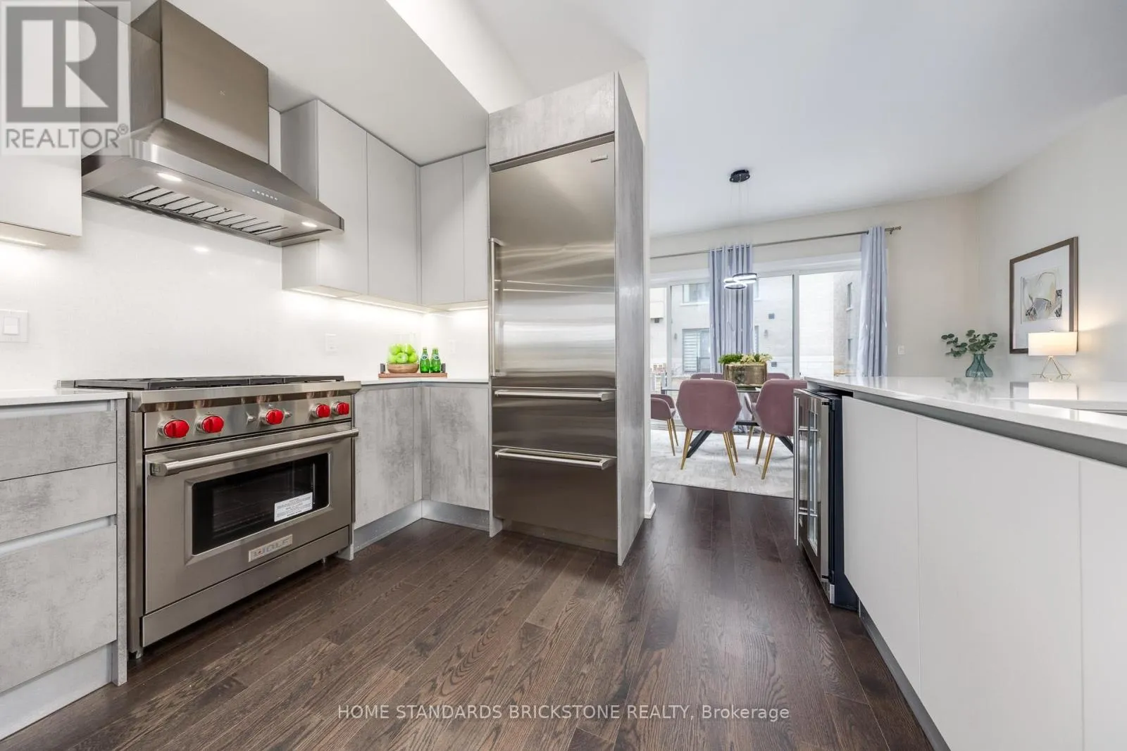 Bathurst & Clark Welcome to this extraordinary luxury townhome offering nearly 3,000 sq. ft. of meticulously designed living space, crafted by the renowned Wycliffe Homes. This move-in ready residence showcases superior finishes, thoughtful upgrades, and a coveted location that blends convenience with elegance. Step inside to an impressive open-concept layout featuring a custom Scavolini kitchen with professional-grade stainless steel appliances, including a Wolf range, bar fridge, and premium fixtures. Sleek quartz countertops, designer cabinetry, and high-end plumbing details create a modern yet timeless cooking and entertaining experience. The spacious living room flows seamlessly into the dining area and eat-in kitchen, with direct walkout access to the backyard perfect for hosting family and friends. Soaring 10-ft ceilings on the main floor and 9-ft ceilings on the second and third levels add volume and light throughout. Hardwood flooring extends across the top levels with no carpet anywhere, ensuring a clean and sophisticated look. The luxurious primary suite offers a spa- inspired 5-piece ensuite and a generous walk-in closet, providing the ultimate retreat. A rare and valuable feature is the private residential elevator, offering effortless access from the third floor down to the finished basement. With an upgraded circuit board sourced from Chicago, this elevator offers unmatched convenience compared to others in the area. Additional highlights include a 2-car garage and a finished lower level, adding flexible living space for work, recreation. Ideally situated just steps from Promenade Mall, places of worship, parks, and the public library, with top-rated schools nearby, this exceptional home offers the perfect blend of lifestyle and location. (id:27476)