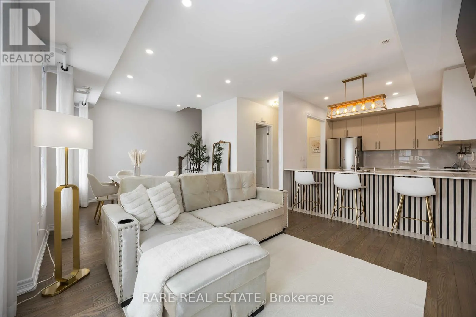 Cross Streets: Norwood Ave. ** Directions: Jane St. Immaculate and fully updated executive condo townhome, tucked away on the sought-after Kayla Crescent side of the complex in the heart of Maple, Vaughan. This bright and inviting 2-bedroom, 2-bath residence offers a true sense of home, combining modern design with everyday comfort in one of the area's most desirable neighbourhoods. Step inside to a thoughtfully curated interior featuring soaring ceilings, pot lights, a striking oak staircase, and premium engineered hardwood flooring throughout. The open-concept living and dining area is ideal for both daily living and entertaining, offering a seamless walkout to a private balcony-perfect for morning coffee or unwinding at the end of the day. At the heart of the home, the spacious chef-inspired eat-in kitchen blends style and function with quartz countertops, upgraded cabinetry, ample prep and counter space, an undermount sink, breakfast bar, and newer stainless steel appliances, including a premium induction range and pot filler. A feature wall in the entryway, updated light fixtures, and refreshed bathroom vanities add character and polish throughout, while ensuite laundry with a new washer and dryer provides added convenience.Upstairs, two generously sized bedrooms offer quiet retreats. The primary bedroom features a walk-in closet and walkout to a large private terrace, while the second bedroom enjoys its own balcony access. With three private outdoor spaces, this home offers rare indoor-outdoor living.Perfectly positioned just minutes from parks, schools, shopping, restaurants, Vaughan Mills, public transit, Maple GO Station, and Highway 400, this energy-efficient, low-maintenance townhome offers exceptional value in a prime location. A rare, move-in-ready opportunity-just unpack and enjoy. (id:27476)
