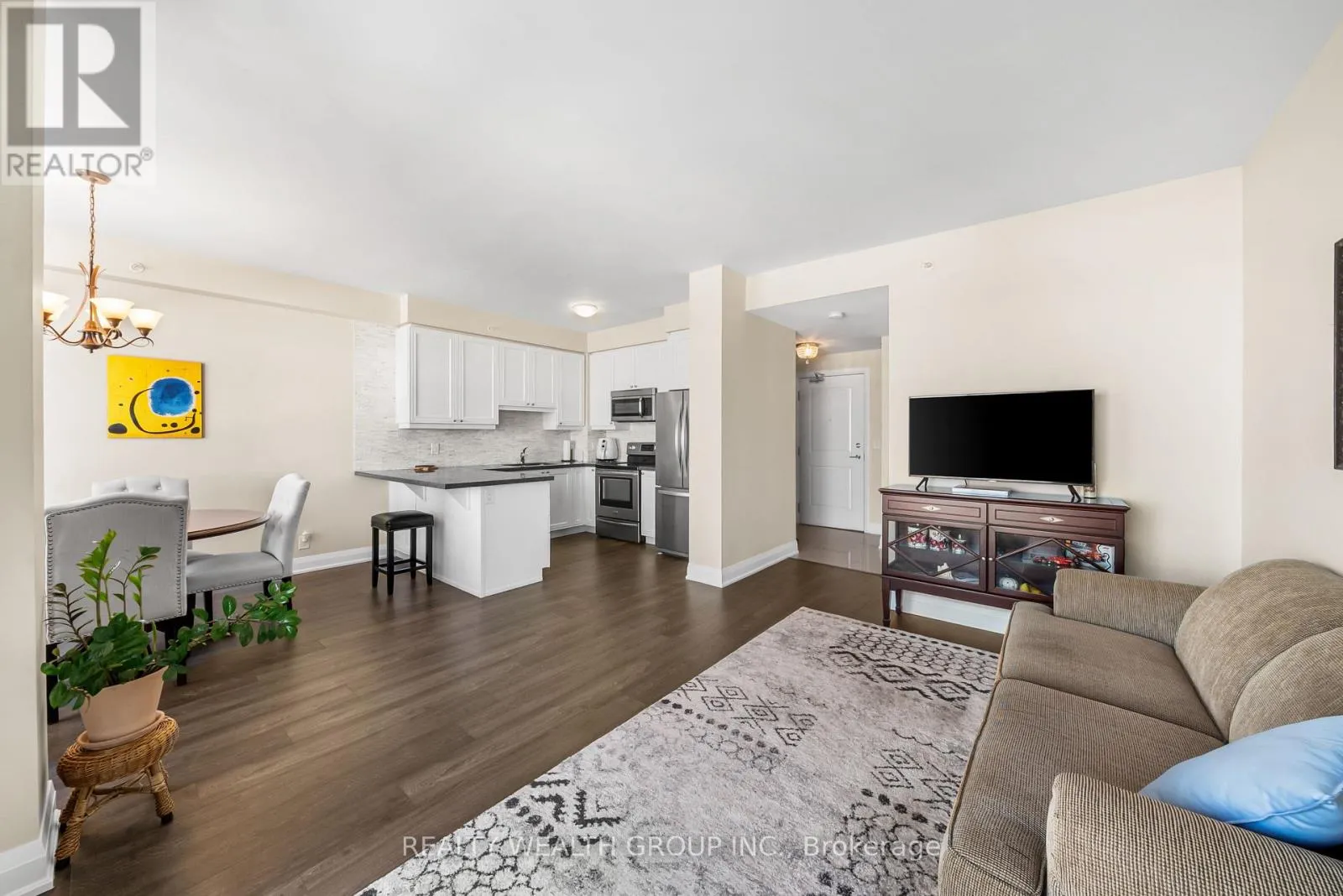 Cross Streets: highway 7 & Woodstream. ** Directions: South of Hwy 7, East of Hwy 27. Welcome to this spacious and well-maintained 1-bedroom plus den, 2-bathroom condo in a desirable low-rise building offering a quiet, community-oriented setting with the convenience of condo living. The open-concept layout features 9-foot ceilings and excellent natural light, creating a bright and inviting living space. Over 800 square ft with an upgraded kitchen which includes stainless steel appliances and enhanced cabinetry, flowing seamlessly into the living and dining areas. Enjoy a generous north-facing balcony with clear, unobstructed views, ideal for relaxing or entertaining. The functional den provides flexible space for a home office or guest area, while the spacious primary bedroom offers comfort and practicality. Additional features include ensuite laundry, polished marble flooring at the entrance, one owned underground parking space, and a locker.Residents enjoy access to outstanding amenities, including two fitness centres, sauna, theatre room, billiards room, party room, piano lounge, rear courtyard, BBQ terrace, rooftop pavilion with BBQ stations, and 24-hour security. This family- and pet-friendly building is conveniently located near parks, schools, shopping, dining, and major highways. (id:27476)