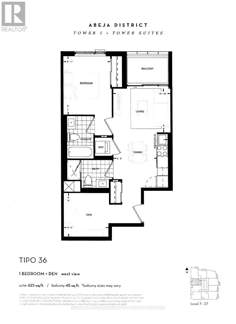 Jane & Rutherford A stunning 1+1 bed, 2 Bath unit at the prestigious Abeja District Condos. Very bright. Openconcept floor plan that floods the unit with lots of natural light. Open balcony. Laminatefloors throughout. Modern kitchen with quartz counters, stainless steel appliances andbacksplash. Master bedroom with 4-piece ensuite bath and a large closet, den is perfect for ahome office and ensuite laundry. Clear unobstructed views. Great building amenities such as24-hour concierge, gym, yoga studio, party room, spa, and so much more. Walking distance toVaughan Mills Mall. Minutes Away From Canada's Wonderland, Highways 400 & 407, CortellucciVaughan Hospital, The Vaughan Metropolitan Centre Subway Station & So Much More! Steps awayfrom public transit. 1 underground parking spot included. (id:27476)