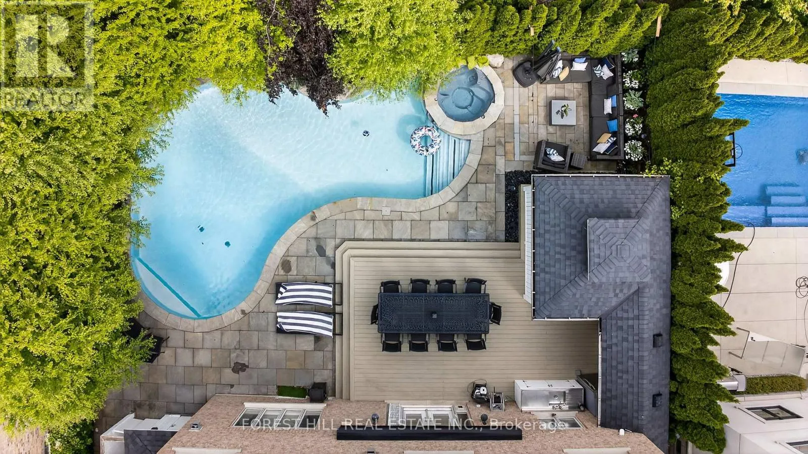 Bathurst St / Rutherford Rd Welcome to 110 Cook Mill Crescent an extraordinary residence nestled on the most sought-after street in the entire Valleys of Thornhill, one of Vaughan's most prestigious neighbourhoods. This stunning home offers a rare 60-foot frontage overlooking a tranquil pond, delivering total privacy and unmatched curb appeal in a truly elite setting. Boasting 4+2 bedrooms and 6.5 bathrooms, the home features complete customization and designer finishes throughout. A spectacular custom kitchen, completed in 2023, is equipped with top-of-the-line stainless steel appliances, a large island, and a stylish butlers pantry perfect for both everyday living and entertaining. All bathrooms have also been recently renovated with luxurious, high-end finishes. The main floor showcases rich hardwood floors, coffered ceilings, crown mouldings, wainscoting, and intricate custom millwork. The formal living and dining areas include a custom bar, while the spacious family room highlighted by a fireplace and custom media unit opens directly to your own private backyard oasis. Step outside to a resort-style retreat featuring a saltwater pool with a spillover hot tub, composite deck, beautifully landscaped gardens, a heated cabana, and mature trees offering complete privacy and tranquility. Upstairs, the oversized primary suite offers a luxurious ensuite and a spacious walk-in closet that can easily be converted into a fifth bedroom. The finished basement is a dream recreation space for families, including a custom wood and stone wet bar, a large rec room, two additional bedrooms, and an incredible sports and gaming playroom where kids can enjoy endless fun. The heated three-car tandem garage also features a private staircase with direct access to the basement, adding convenience and versatility.110 Cook Mill Crescent is a true masterpiece offering the perfect blend of luxury, privacy, and modern living in Vaughan's most coveted community. (id:27476)