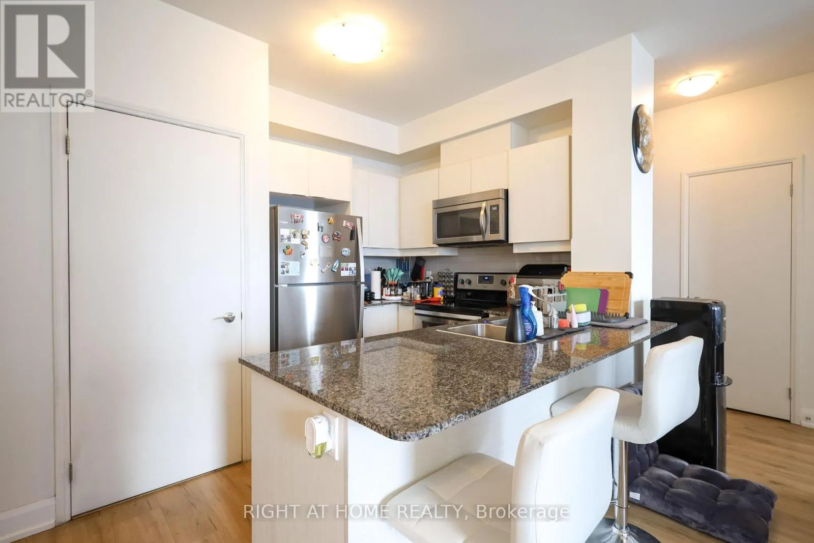 Jane/Highway 7 Spacious 1+1 bedroom suite with two full bathrooms at Expo City Condos in the heart of Vaughan, featuring hardwood floors, granite countertops, a large den, and a generous balcony accessible from both the living area and primary bedroom; parking and locker included with a tandem parking space accommodating two vehicles, ideally located close to Hwy 400/407, Viva Transit, TTC subway, York University, Vaughan Mills Mall, and offering 24-hour concierge, extensive amenities, and steps to shops, restaurants, entertainment, and parks. (id:27476)