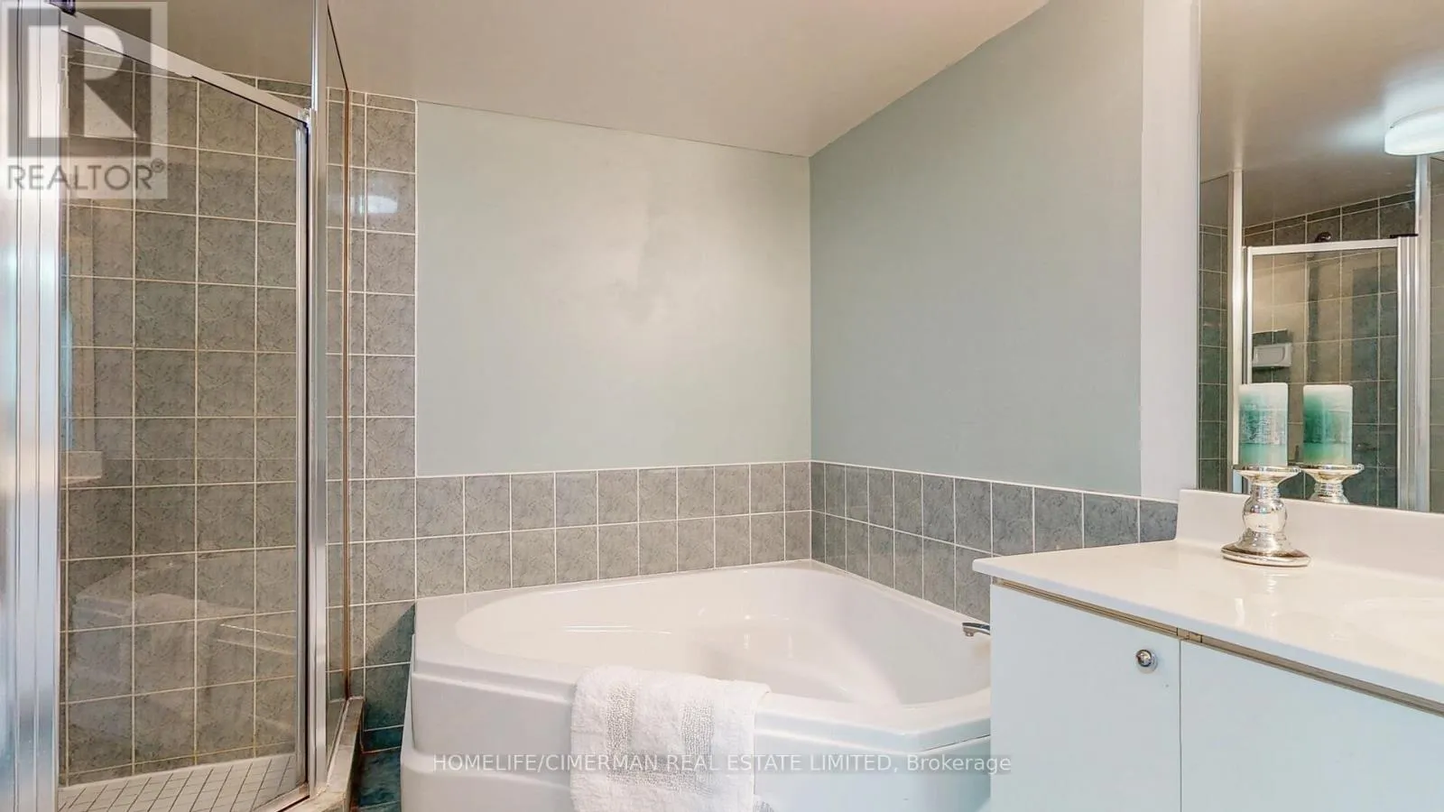 Cross Streets: Bathurst St. / Steeles Ave. W. ** Directions: Steeles Ave. W. / Emerald Ln. Welcome To Eiffel Towers By Menkes! Rarely Offered Corner Suite Featuring An Expansive Wrap-Around Terrace And Exceptional Privacy. One Of The Largest 2-Bedroom Layouts In The Complex With Functional Design: 1225 Sqft Interior + 224 Sqft Terrace (No Overhang Above) = 1449 Sqft. Bright, Spacious Living & Dining Areas With Custom Built-Ins For Added Storage And Floor-To-Ceiling Windows That Flood The Unit With Natural Light. Freshly Updated Kitchen With Modern Finishes & Brand New Stainless Steel Appliances (Dec 2025), Breakfast Area And Extra Pantry Cabinetry. Oversized Primary Bedroom With WIC & Spa-Like Ensuite With Soaker Tub & Separate Shower. Tandem Parking For 2 Cars + Oversized 2nd-Floor Locker. Quiet, Private Setting Away From Steeles & Bathurst. Gated Community With Resort-Style Amenities & 24-Hr Security. Easy Access To Hwys 401/404/407. A Rare Opportunity To Own A Truly Spacious And Private Condominium In A Highly Sought-After Complex. (id:27476)