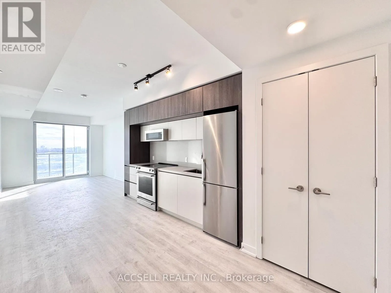 Highway 7 & Jane Street Welcome to this contemporary 1-bedroom, 1 bathroom condo, situated in the heart of Vaughan. Perfectly located just steps from the Vaughan Metropolitan Centre (VMC) and only minutes to Highways 407, 400, 401, and 427, as well as Vaughan Mills and Canada's Wonderland, this home offers the ideal blend of style and convenience. This open-concept unit is filled with natural light from the floor-to-ceiling windows and features sleek laminate flooring throughout. The highly functional eat-in kitchen is equipped with stainless steel appliances, including a microwave, stove, refrigerator, and dishwasher-making both everyday living and entertaining a breeze. (id:27476)