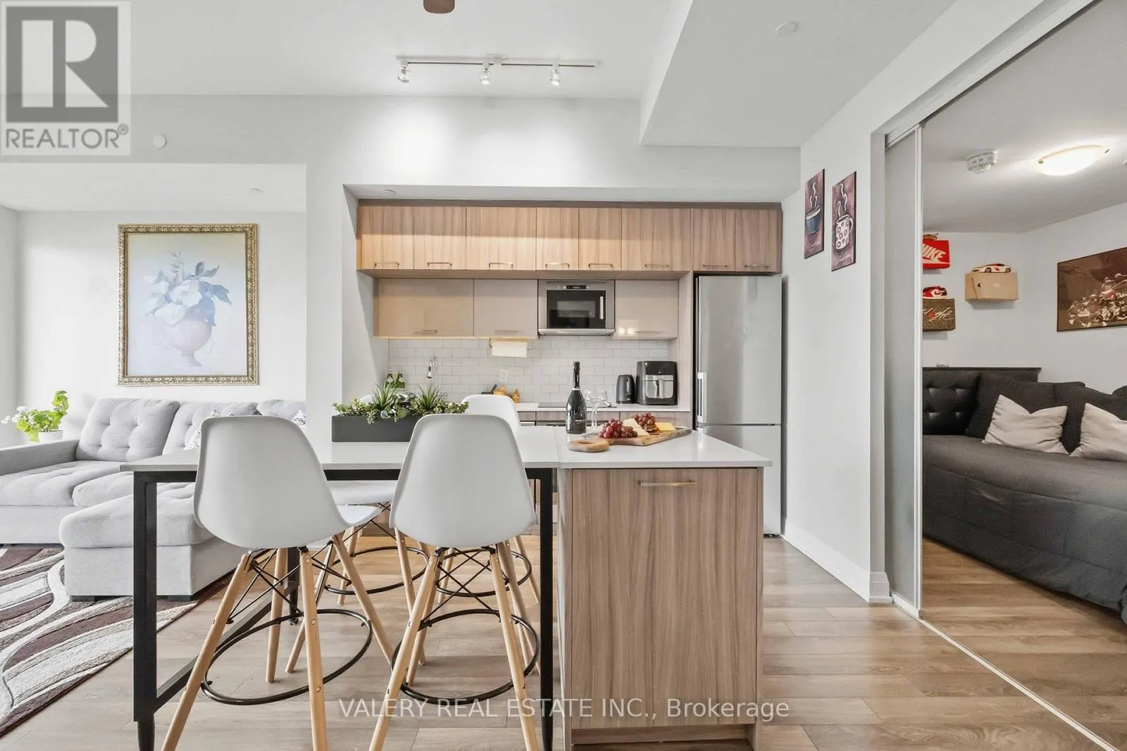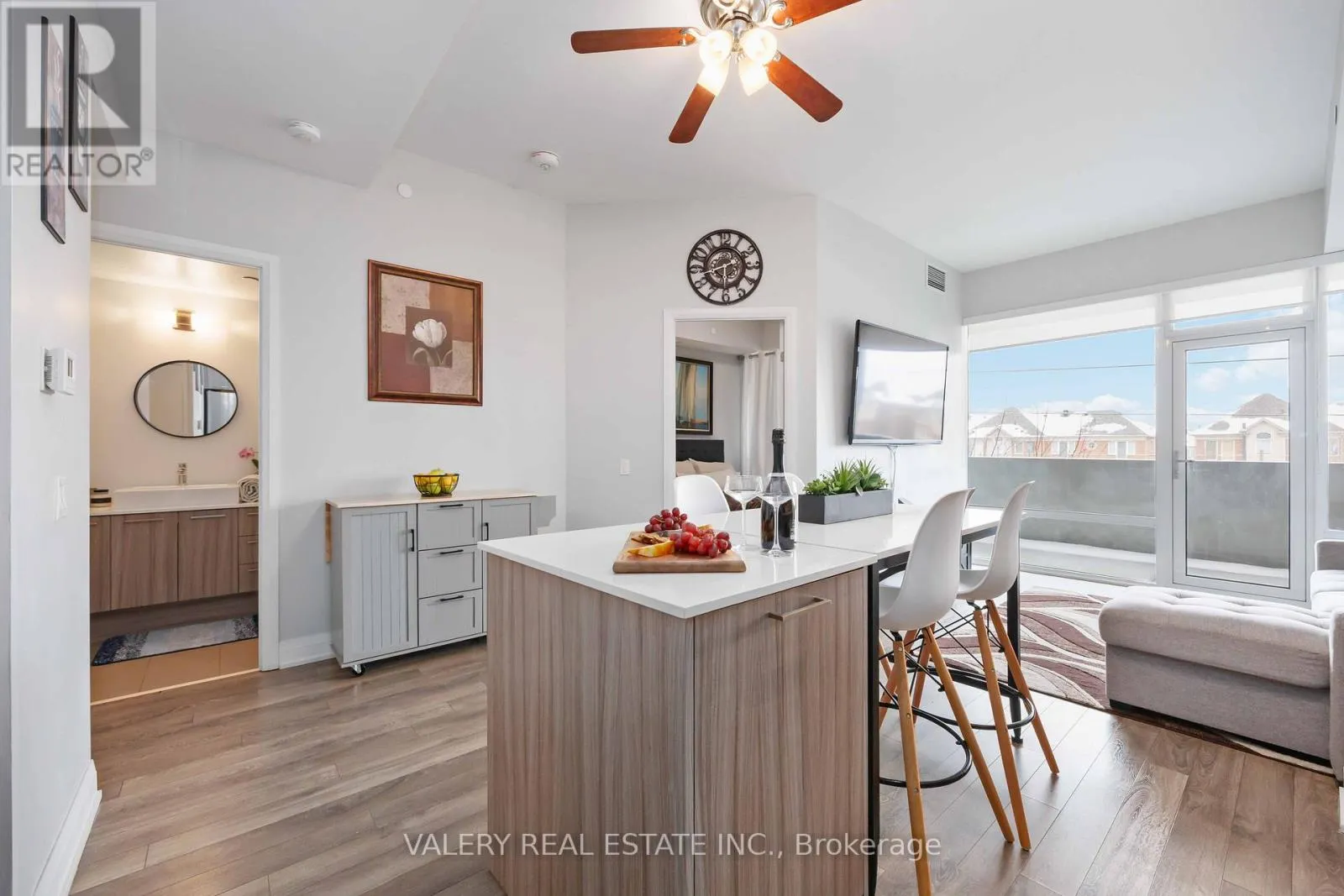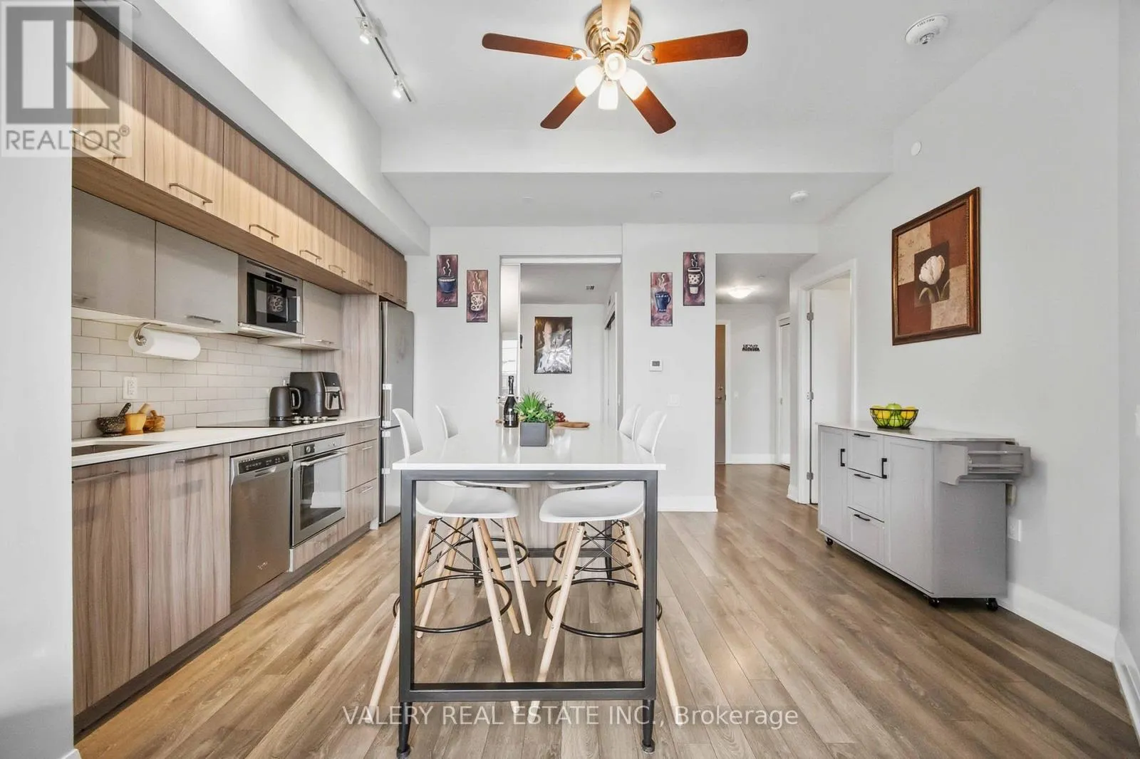 Cross Streets: Highway 7 & Pine Valley. ** Directions: West of Pine Valley on Highway 7. At the edge of East Woodbridge, where neighbourhood calm meets everyday convenience, a quiet rhythm unfolds at 4800 Highway 7. Perched on the third floor with a sought-after south exposure, Suite 325 is filled with steady natural light that carries through the open-concept layout from morning into late afternoon. The kitchen anchors the home with stainless steel appliances, a functional island for gathering, and clean modern finishes that invite both casual meals and unhurried evenings. From the living space, a walk-out balcony becomes an extension of the home, a place to pause, breathe, and take in clear, open views beyond the building.Two well-proportioned bedrooms offer flexibility for growing households, a dedicated work-from-home setup, or overnight guests. The primary bedroom is thoughtfully designed with a double closet and large windows, while the second bedroom easily adapts to changing needs. Ensuite laundry, and a practical floor plan make daily living effortless and efficient. Beyond the suite, the building experience elevates everyday life. Concierge service, an outdoor pool, party and meeting rooms, bike storage, visitor parking, kids playground, and even a car wash reflect a residence designed with comfort and convenience in mind. One owned underground parking space and an owned locker add rare value and ease. Set along Highway 7 at west of Pine Valley, this location offers seamless access to transit, major routes, shops, dining, and the established charm of East Woodbridge. It is a home that balances connection and calm, movement and retreat. Suite 325 is not just a place to live. It is a place to settle into a rhythm that feels both grounded and effortlessly connected. (id:27476)