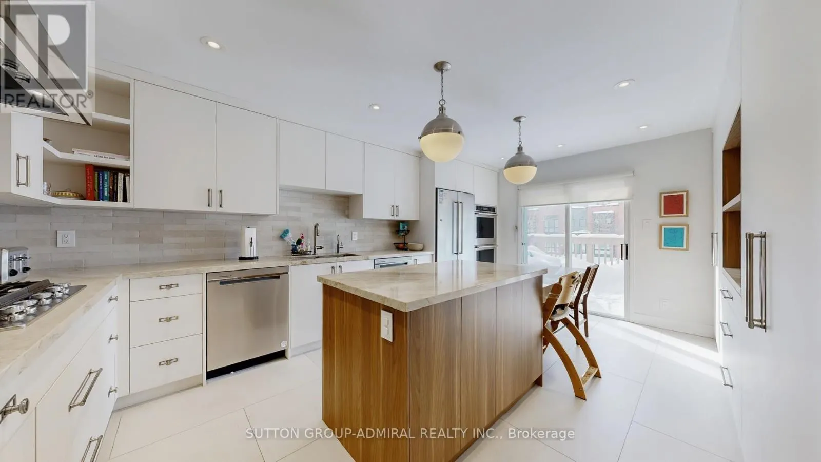 Cross Streets: Bathurst & Centre. ** Directions: North of Centre, East of Atkinson. Experience refined living in this exceptional 4-bedroom, 4-bathroom residence, offering 2,840 sq. ft. of beautifully designed space on a premium lot. Bright, spacious, and elegantly updated, this home harmoniously blends style, comfort, and functionality. Main Features: Exceptional layout: Huge Combined living/dining room, main floor office, and full 2-car garage Gourmet kitchen(fully renovated in 2022) featuring a large island with built-in table, quartz countertops, marble backsplash, expansive porcelain flooring, seamless wall-to-wall pantry, coffee/tea nook counter with sink, and high-end stainless steel appliances Walk-out to a raised deck overlooking the backyard - perfect for entertaining. Expansive primary retreat has a large additional enclosed space with window that can be used as a nursery, second office, or additional walk-in closet; includes a luxurious 5-piece ensuite, Renovated Shower(2024) and custom solar tubes. Professionally finished walk-out basement with a self-contained 2-bedroom apartment and separate entrance - ideal for in-laws or rental income potential. Location Highlights include: Zoned for top-ranked elementary and high schools; Steps to public transit, community centre/theatre, transit hub, shuls, and shopping; 5-minute drive to ETR and Highway 7 for ultimate convenience. This property offers an unparalleled lifestyle opportunity in one of the most sought-after neighborhoods - perfect for executive living or multi-generational families. (id:27476)