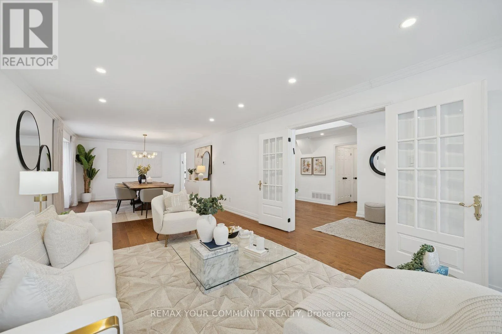 Bathurst/Clark Welcome to this exquisitely updated family residence, where timeless elegance meets modern sophistication. Thoughtfully renovated from top to bottom, this home seamlessly combines refined style with effortless functionality.At the heart of the home is a stunning, fully renovated kitchen, featuring premium cabinetry, a designer backsplash, countertops, and sleek flooring-ideal for both everyday living and elegant entertaining. The main floor is further enhanced by gleaming hardwood floors and a graceful staircase, creating a luminous, contemporary ambiance. The main floor powder room has been beautifully updated, reflecting the home's meticulous attention to detail.The bathroom in the second floor bedroom has been completely renovated with heated flooring The finished basement offers generous additional living space with newer broadloom and a fully equipped second kitchen, perfectly suited for extended family, guests, or sophisticated gatherings.Step outside to your private backyard sanctuary, a serene and exceptionally secluded retreat. Lounge by the luxurious saltwater inground pool, stroll along stone patio walkways, or unwind on the beautifully landscaped deck. A privacy wall and lush greenery provide complete seclusion, while the expansive green space beyond offers peaceful, unobstructed views, creating an idyllic setting for both relaxation and entertaining. Soffit lighting sets a warm evening ambiance, and a vegetable garden adds charm and functionality to this refined outdoor oasis.This residence is more than a home-it is a private, elegant retreat, thoughtfully designed for comfort, style, and tranquility. (id:27476)