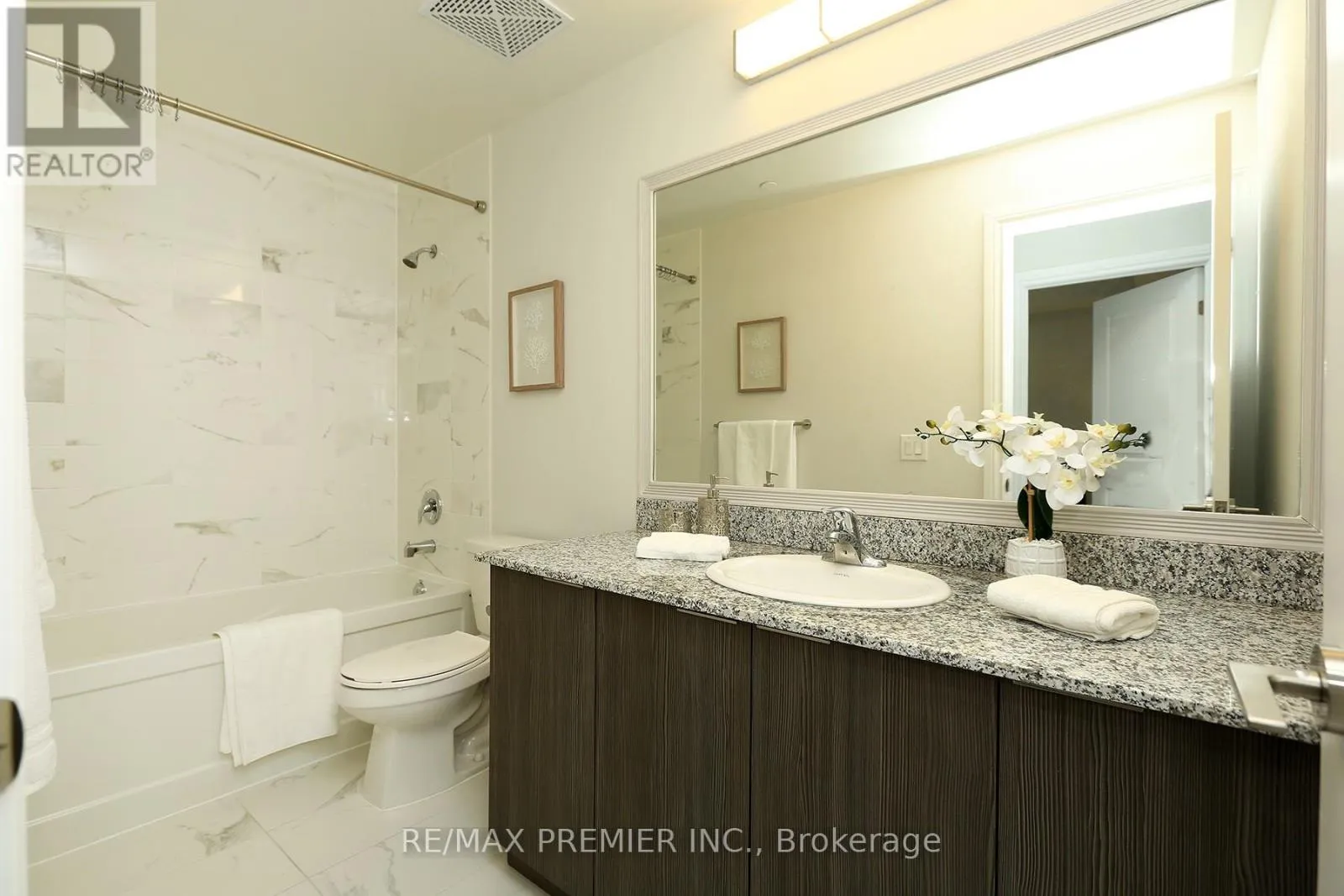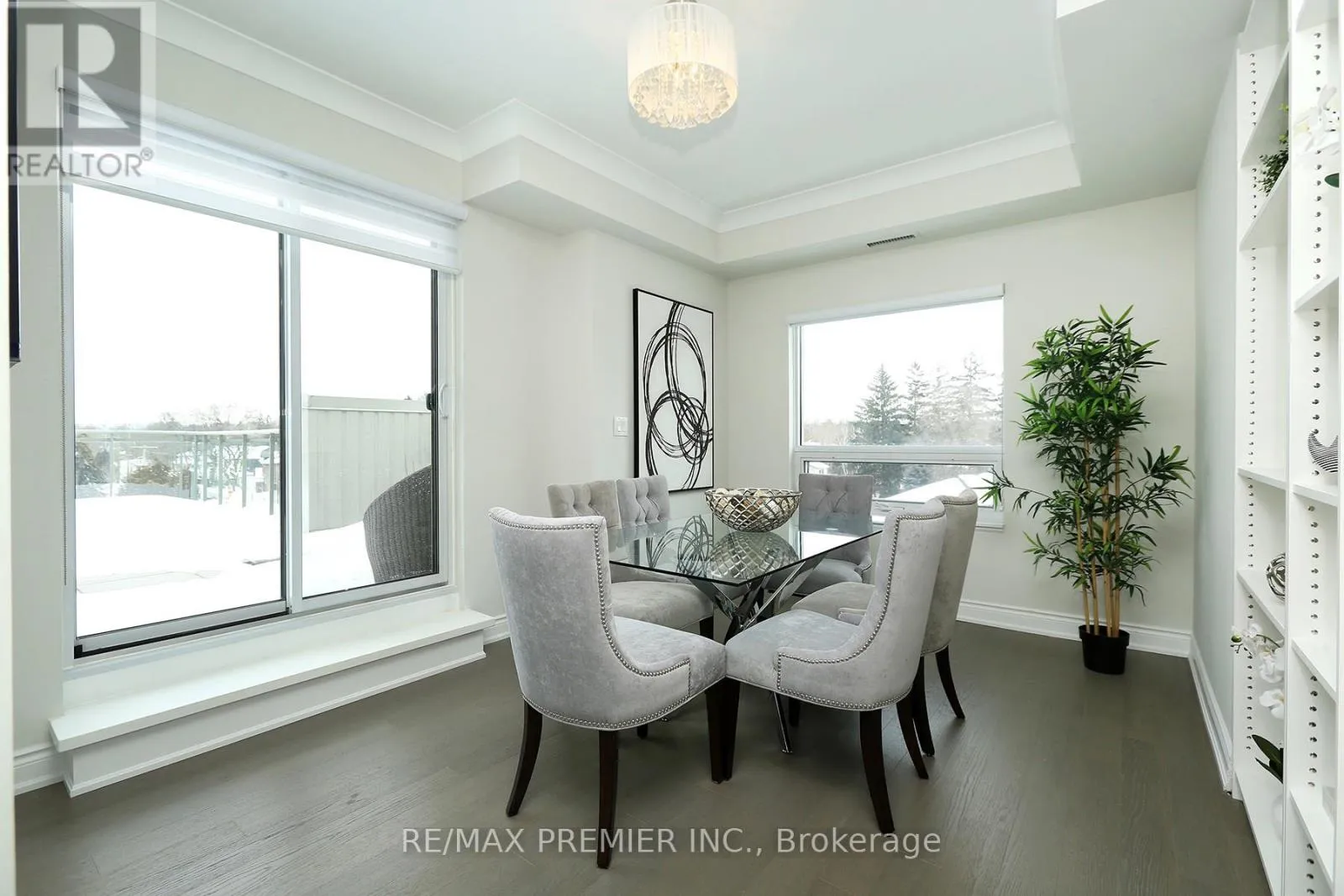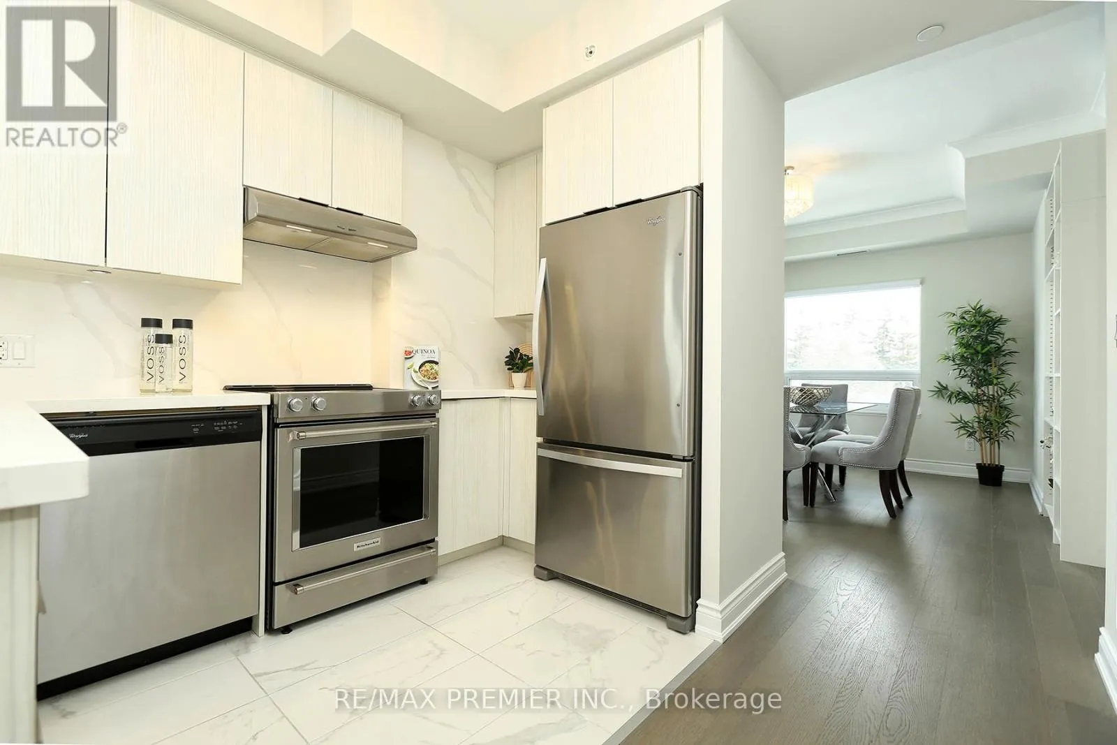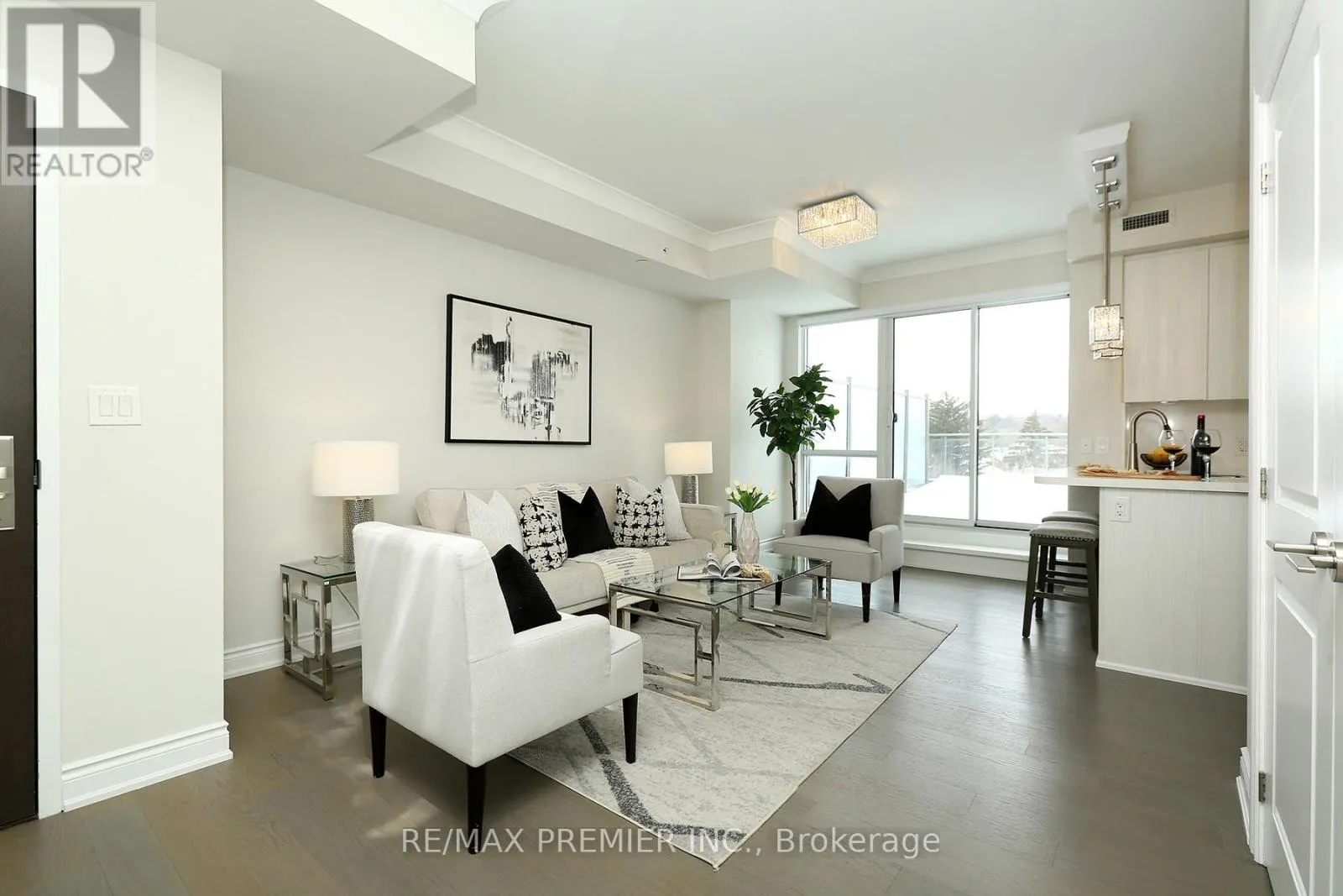 WOODBRIDGE AVE/CLARENCE AVE Welcome to "The Clarence" - a highly sought-after boutique condominium in the heart of Market Lane in Woodbridge. Known for its refined architecture and intimate scale, it offers a more private, residential feel compared to larger high-rise buildings. This rare and exceptional 2 bedrooms, 2 baths corner unit offers a massive terrace that delivers a lifestyle seldom found in condominium residences - like having a private backyard without the upkeep, ideal for summer BBQs, suntanning, and evening cocktail gatherings. From the moment you walk in, you are greeted with a warm and welcoming atmosphere and a sense of relaxed sophistication. The comfortable and inviting living area opens up to sleek modern kitchen complete with quartz countertops, stainless steel appliances, valance lighting, and breakfast bar. The dining room, with walk-out to the terrace offers an inviting ambience, perfect for those special occasions and memorable gatherings, while also offering the flexibility to be converted into a third bedroom or home office if desired. The primary bedroom is a true retreat complete with 4-pc ensuite, walk-in closet with organizers, and walk-out to its own private covered balcony - perfect for quiet mornings or evening relaxation. Enjoy the upscale amenities including a well-appointed party room, fitness centre and sauna. What truly distinguishes The Clarence from many other condo buildings in Vaughan, is its exceptional walkable lifestyle - steps to boutiques, restaurants, Cataldi for fresh groceries, the library, and scenic Humber River trails - making it ideal for those seeking low-maintenance, lock-up-and-go living without sacrificing comfort and elegance. (id:27476)