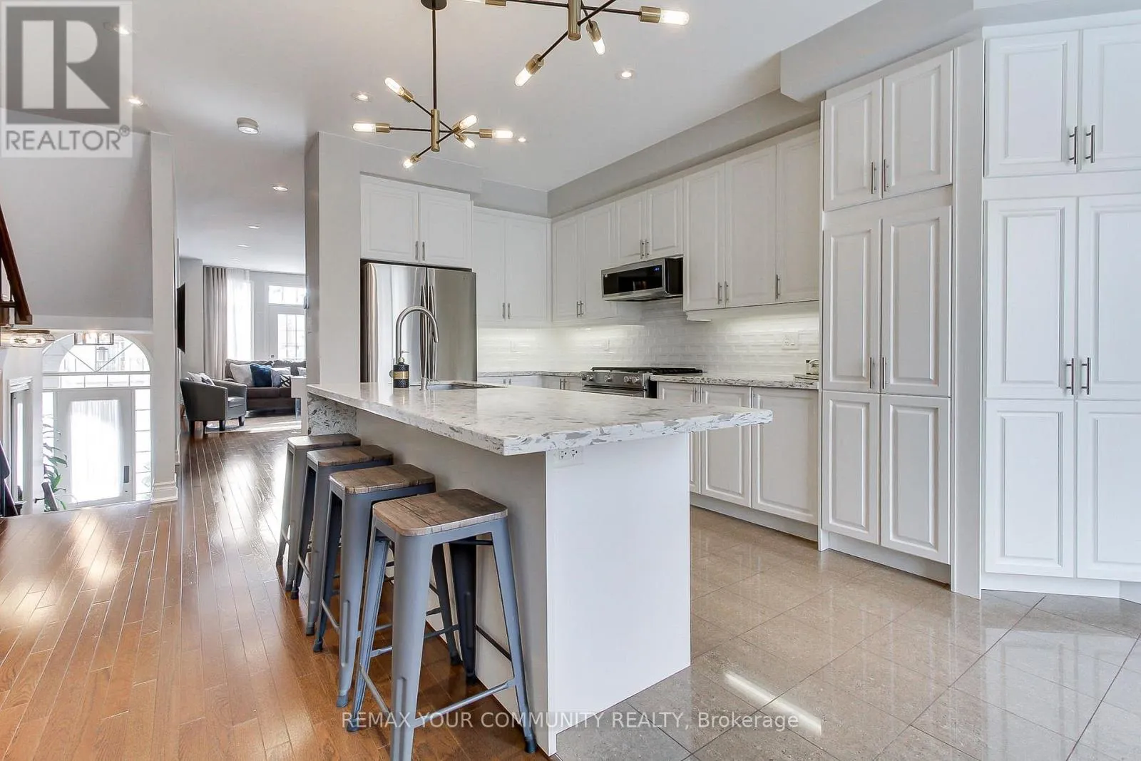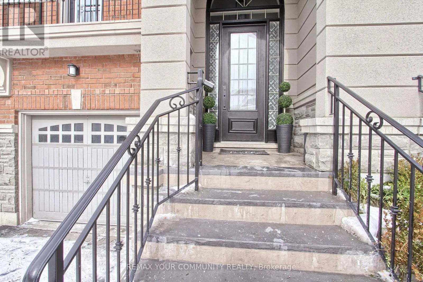 Weston Rd/Major Mackenzie Dr Welcome to this executive luxury townhome in prestigious Cold Creek Estates, nestled on a quiet, beautiful, and family-friendly street with wonderful neighbours. This exceptional home showcases high-end modern finishes and thoughtful renovations throughout, offering the look and feel of a detached residence. Soaring smooth ceilings welcome you the moment you step inside, leading to an incredible, highly functional layout with space in all the right places. The bright living room flows seamlessly into a sun-filled entertainer's dream kitchen featuring abundant cabinetry, a gas range, stainless steel appliances, pantry, and a stunning large granite waterfall island. An open-concept dining area completes this impressive main level, prefect for hosting and everyday living. The bedrooms offer unique architectural character: the primary suite features a walk-in closet and a no-expense-spared, spa-like ensuite; the second bedroom boasts dramatic 20-foot ceilings, while the third bedroom offers elegant vaulted ceilings. The above-grade lower level provides flexible space ideal for a family room, home office, or easily enclosed as an additional bedroom. The basement includes a private entrance to a self-contained apartment with kitchen and washroom-perfect for income potential or extended family. Step outside to a custom wood deck overlooking a generously sized backyard, ideal for entertaining, relaxing, and pets. (id:27476)