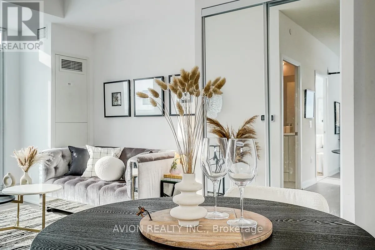 Cross Streets: Jane & Hwy 7. ** Directions: . Welcome to this elegant and sun-filled corner residence at the heart of Vaughan Metropolitan Centre. Designed for modern urban living, this home combines style, comfort, and exceptional convenience.This thoughtfully laid out 1+Den, 1-bathroom suite offers an efficient floor plan with excellent space utilization, ideal for professionals, couples, or small families. The southeast-facing exposure allows natural light to pour in throughout the day, complemented by expansive floor-to-ceiling windows that enhance the bright and airy feel.The generously sized den with windows provides outstanding flexibility and can easily be used as a second bedroom, home office, or nursery. The open-concept living and dining area seamlessly connects to a contemporary kitchen featuring sleek finishes-perfect for both everyday living and entertaining.Completed in 2023 by acclaimed developer Menkes, The unit includes one parking space for added convenience.Residents enjoy access to premium amenities, including a fully equipped fitness centre, party room, and 24-hour concierge service. The unbeatable location places you steps from the VMC subway station and transit hub, minutes to Vaughan Mills Mall, dining, grocery stores, parks, and schools, with quick access to Highways 400 and 407. A must see unit (id:27476)