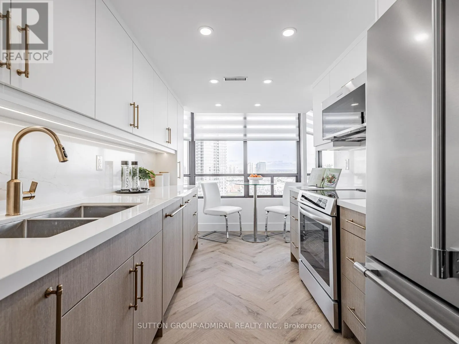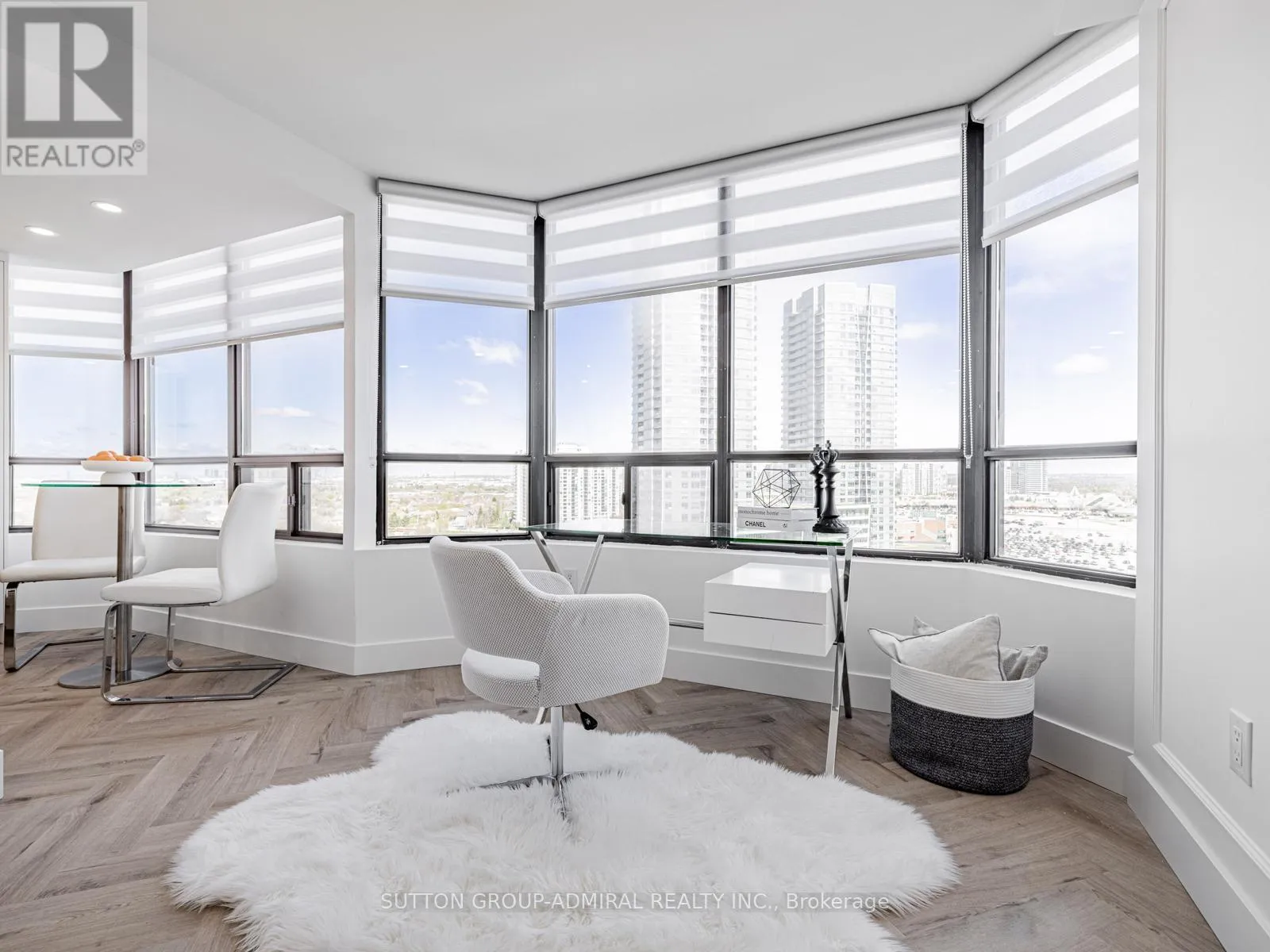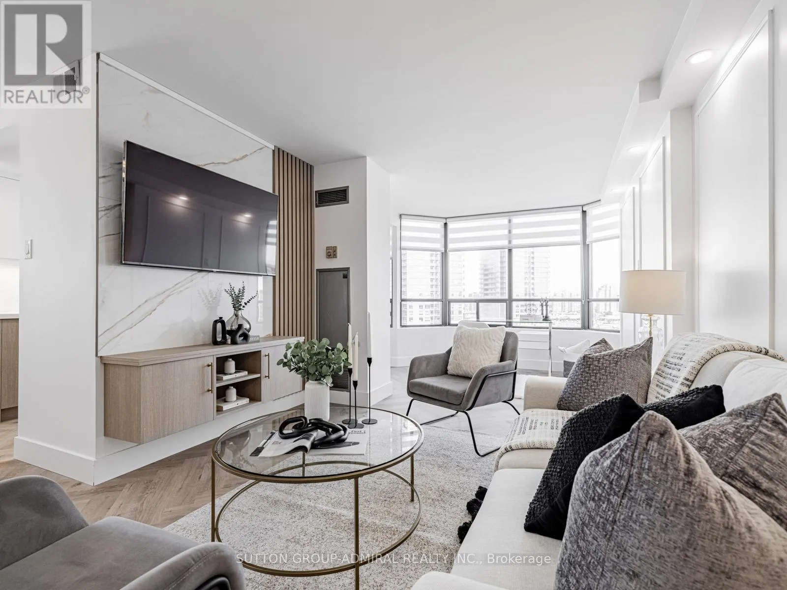 Bathurst/Clark Ave Absolutely stunning and meticulously renovated condo located in the prestigious Promenade Towers, offering approximately 1,250 square feet of luxury living in the heart of Thornhill. This bright and spacious 2-bedroom, 2-bathroom suite showcases top-tier finishes throughout, including elegant herringbone flooring, smooth flat ceilings, pot lighting, and premium window treatments. The designer kitchen is a true showpiece, featuring quartz countertops, modern cabinetry, and an efficient layout thats perfect for both everyday living and entertaining. Both bathrooms have been beautifully updated with spa-inspired elements: premium tiling and faucets, glass enclosed showers, automatic lighting and a private makeup vanity. Thoughtful custom closet systems maximize storage and organization, adding to the homes functionality and style. The expansive living and dining areas are perfect for relaxing or hosting, and include a bonus brand new TV , ready for your enjoyment. Two walkouts lead to an oversized private balcony with sweeping views of the Thornhill skyline, ideal for morning coffee or evening sunsets. This well run building offers low and all-inclusive maintenance fees with a full range of high-quality amenities, including 24-hour security, a swimming pool and indoor whirlpool, a fully equipped fitness centre, a renovated party room, and tennis/pickleball courts. Building is currently modernizing all hallways--almost complete! Enjoy the convenience of an unbeatable location just steps from Promenade Mall, public transportation, schools, parks, and places of worship. This is a rare opportunity to own a turnkey home in one of Thornhill's most desirable and vibrant communities, where luxury, comfort, and convenience converge. (id:27476)