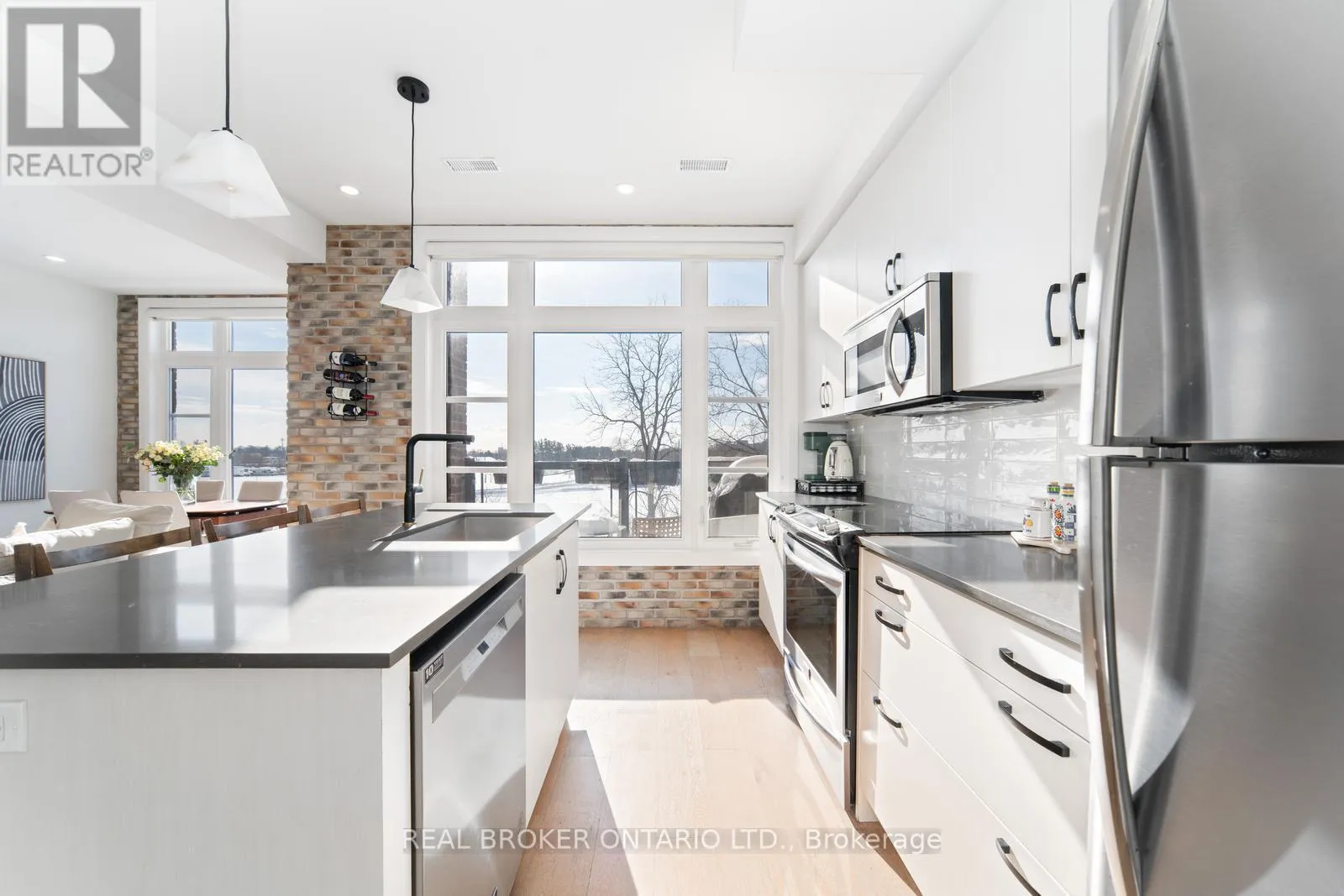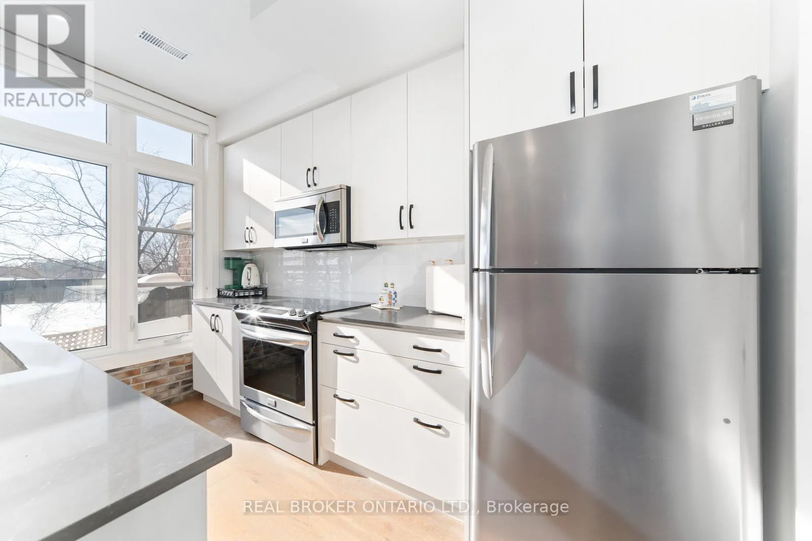 Kipling Ave/Woodbridge Ave Welcome to this absolute dream of a townhome in Vaughan's desirable Fairground Lofts community, perfectly located steps from Woodbridge Ave. Offering 2 bedrooms & 2 bathrooms, this beautifully upgraded unit boasts sun filled south facing exposure, with engineered hardwood flooring throughout! Open concept layout. Freshly painted. Kitchen centre island is perfect for entertaining, with newly installed backsplash. Accent wall featuring white oak slatted wall panels in cozy living room! Renovated powder room on main floor with automatic lighting! Spacious primary bedroom with huge walk-in closet and huge windows! Walk out onto balcony facing the Woodbridge Fairground - an unobstructed view. Gas line for BBQ hook-up on balcony. This move-in ready property is a fantastic opportunity in a highly desirable community. Combining style and functionality, this home truly boasts pride of ownership! Close to shops, highways, public transit and more! Don't miss out on this incredible opportunity to call #48 yours! See virtual tour! (id:27476)