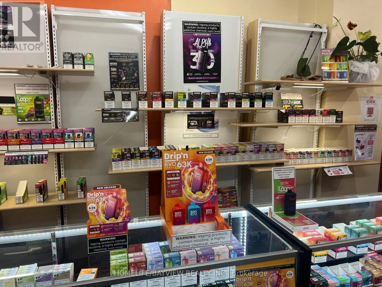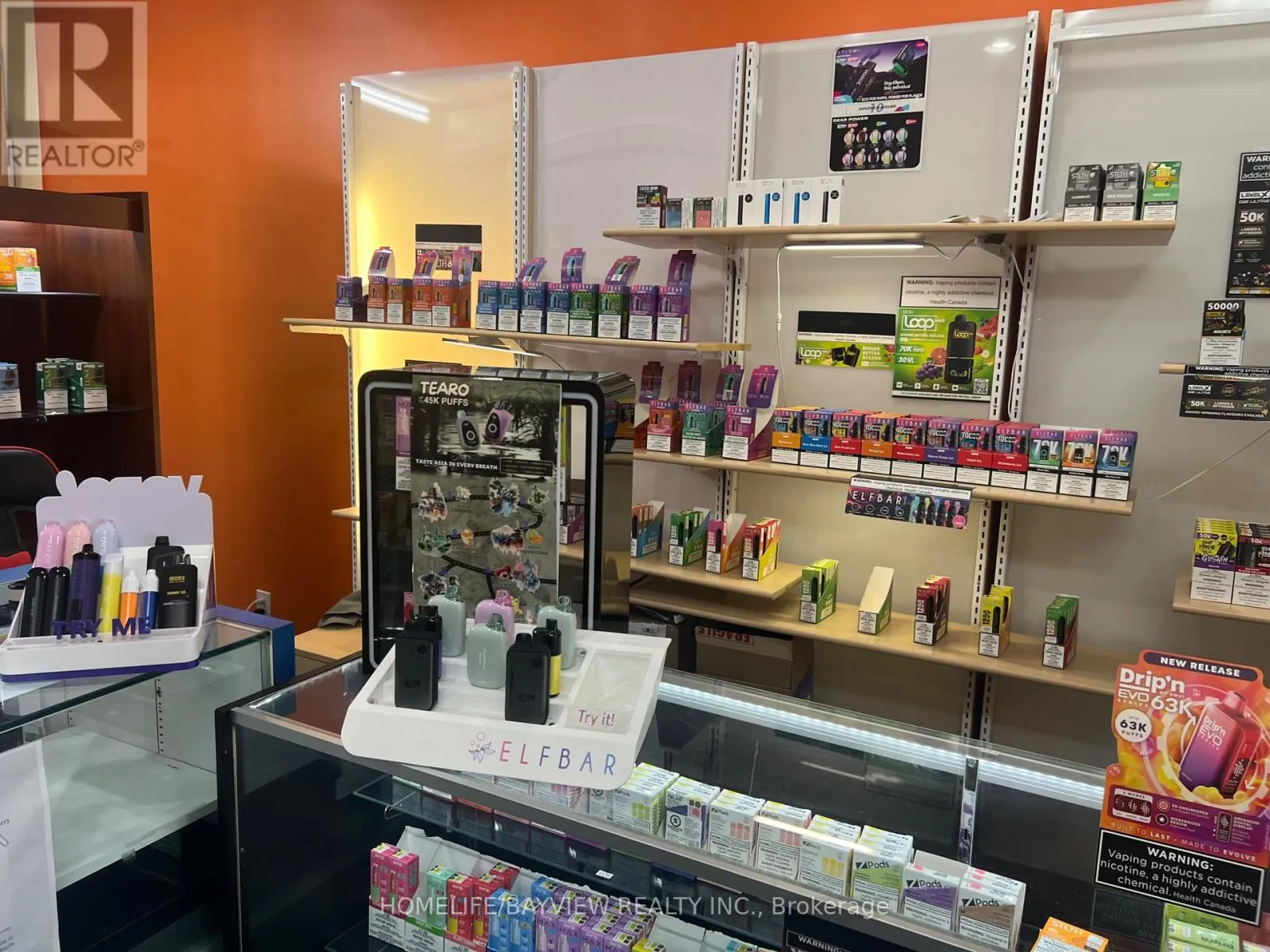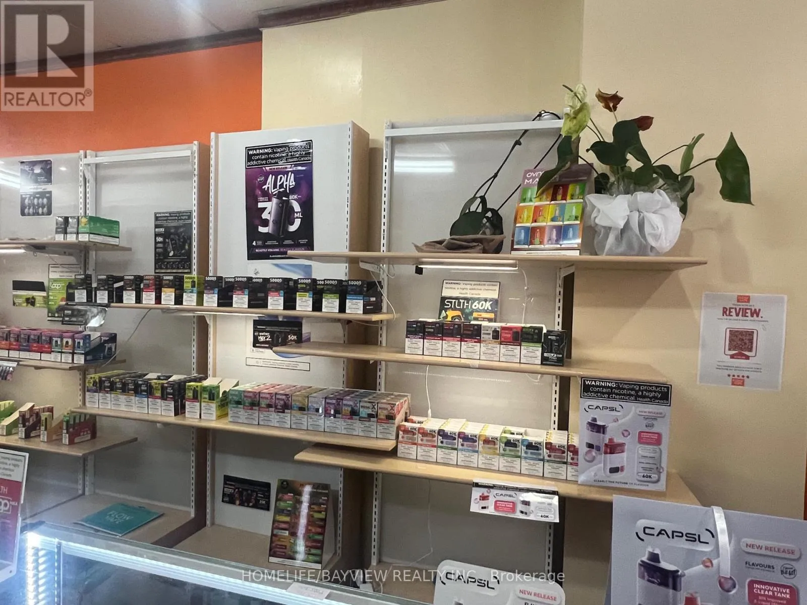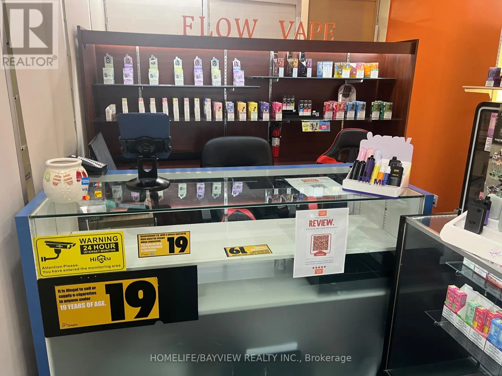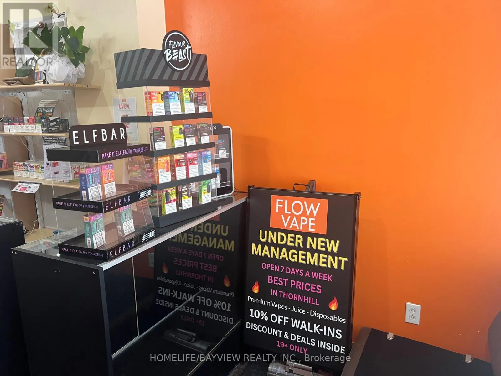 Yonge/Clark Established and busy vape shop located in prime Thornhill with exposure on high traffic Yonge St. Lots of loyal customers. Great spot in HSBC plaza. Shop sells vapes, pipes, e-cigarettes, shisha, etc. Excellent high profit margins. Easy 1 person operation. Prime location with strong sales. Sales $8,000-$9,000/month & growing with a new loyalty program & now offering delivery via the Fantuan App. Hours 7 days: 9:30am-11pm. Rent $2938/month includes TMI, HST & Utilities. Lease 3.5 years + 5 years option to renew. Don't miss this amazing opportunity to be your own boss. (id:27476)