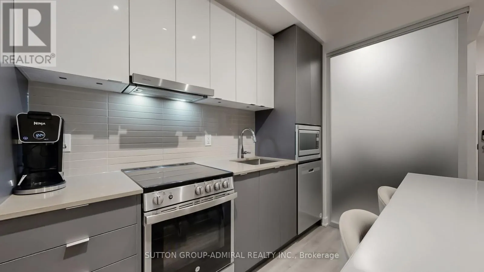 Bathurst St./ Centre St. Bright and spacious 1+1 (or 1+den) in the brand-new building at 50 Upper Mall - perfect for first-time buyers or investors. Open-concept layout, large balcony overlooking the courtyard, modern kitchen with island, built-in appliances. Just a 7-minute walk to the subway, steps from Loblaws, LCBO, cafes, and the park. Building perks include gym, concierge, guest parking. Immaculate, fresh condition - move-in ready! (id:27476)