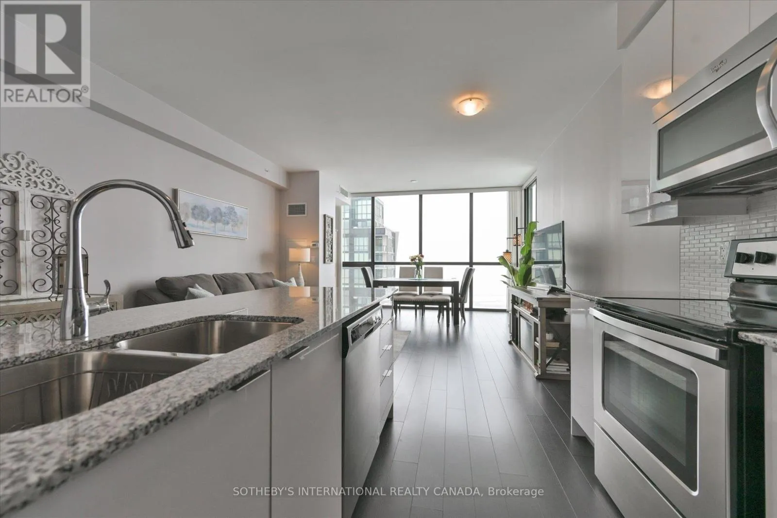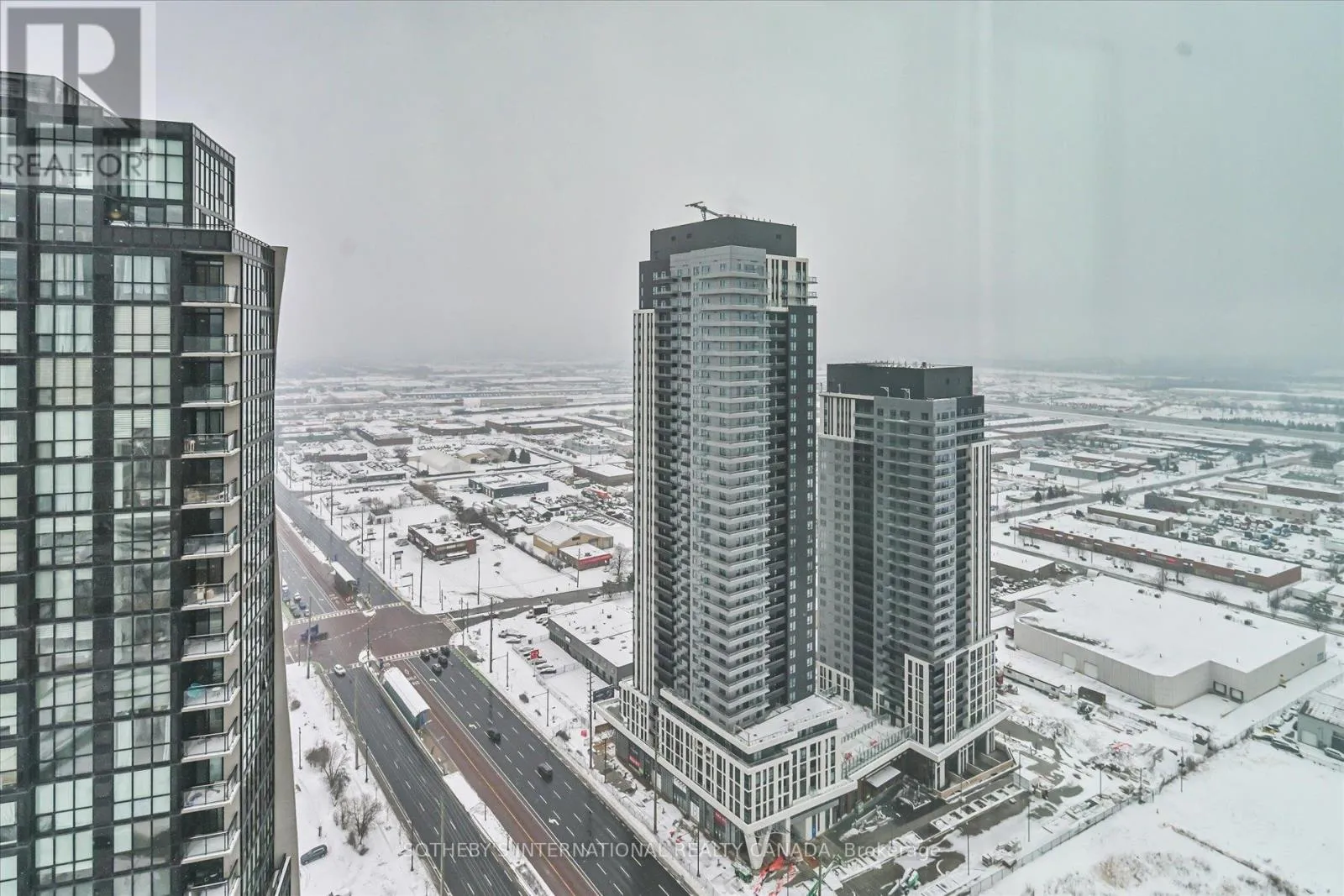 Cross Streets: Jane and Highway 7 W. ** Directions: Please, follow your GPS. Location truly matters and this spacious 1+Den condo delivers. Ideally situated just steps to the VMC subway station and Viva/TTC transit, this highly sought-after south east facing unit offers exceptional natural light throughout the day and expansive city views, including the CN Tower on clear days. Inside, the layout is both bright and functional. The open-concept living and dining area feels generous and welcoming, while the kitchen is thoughtfully positioned for everyday convenience. The separate den provides excellent flexibility, ideal for a home office, guest space, or additional storage. Two washrooms add comfort and practicality. Residents enjoy access to an impressive selection of amenities, including a fully equipped gym, indoor pool, media room, party room, outdoor terrace with multiple BBQ stations, and a children's play area, offering something for every lifestyle. The building also features 24-hour security for added peace of mind. Convenience extends beyond the unit, with everyday essentials located within the building and a vibrant, growing community just outside your door. A bright, spacious home in a connected urban setting, ideal for professionals, first-time buyers, or investors alike. (id:27476)