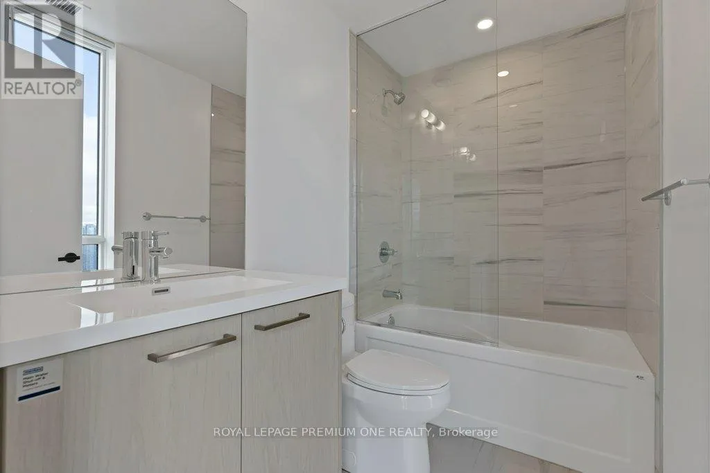 Hwy 7 / Hwy 400 Welcome to Elevated Living at Festival Towers Vaughan's Icon of Luxury Living Perched high above the city on the 40th floor, this exquisite 2-bedroom suite with 2 Full Bathrooms offers breathtaking south-facing views of the Toronto skyline. Located in the landmark Festival Towers, one of the most exciting additions to the Vaughan skyline, this residence blends refined elegance with thoughtful functionality perfect for professionals, couples, or small families seeking upscale urban living. The open-concept layout is enhanced by a neutral designer palette, floor-to-ceiling windows, and a modern kitchen complete with quartz countertops, matching backsplash, and sleek integrated appliances. Step onto the spacious private balcony and soak in panoramic city vistas, or retreat to the serene primary bedroom for quiet comfort. Additional highlights include in-suite laundry, a convenient parking spot, and exceptional storage solutions throughout. As a resident, you'll enjoy access to over 70,000 SqFt of unmatched amenities, including 24-hour security, a fully equipped fitness centre, social lounge, party room, remote work areas, kids' playroom, music & art studio, sports bar, outdoor theatre, pet stop, and more. Ideally located steps from the VMC subway station, major bus terminals, and highway access, this suite offers seamless connectivity for commuters and downtown professionals alike. Experience luxury living where lifestyle meets convenience welcome home to Festival Towers. (id:27476)