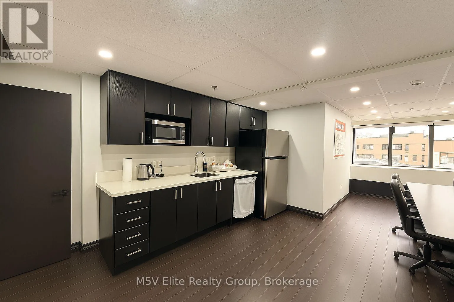 Highway 7/Martingrove This 1,870 sq ft industrial/commercial unit is an incredible opportunity to expand your business. Highlighting the beauty of industrial space, it can be modified to fit your unique needs. The unit features two private offices, a boardroom with soaring ceilings and potential for a mezzanine, a fully equipped kitchen, and two washrooms. Recent renovations include herringbone-pattern flooring, LED pot lighting, modern kitchen and washrooms, security system, and surveillance cameras. Two staircases, including a stylish spiral staircase, add character, and the possibilities with this space are endless. Ideal for a professional office, creative workspace, small business, or church, it offers ample parking and low maintenance fees. Perfectly located in Vaughan, just 4 minutes from Highway 427, and minutes from Brampton and Toronto, this versatile unit combines professional appeal with exceptional accessibility. (id:27476)