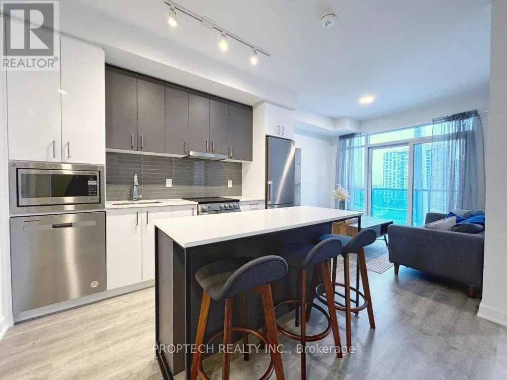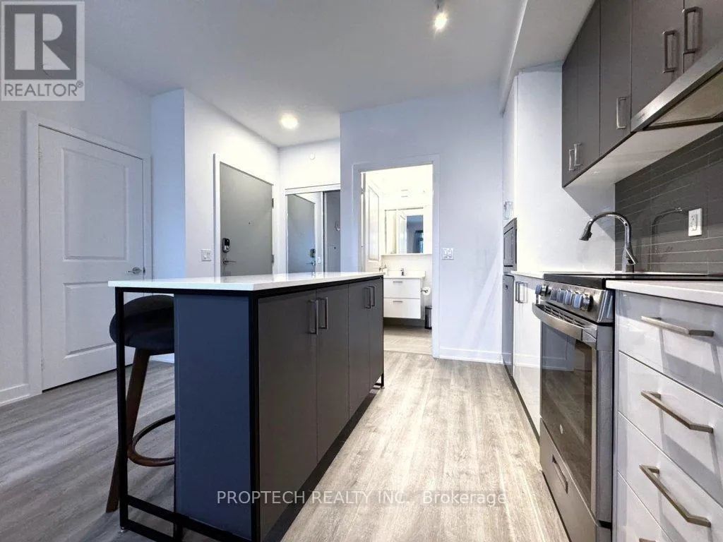 Cross Streets: Bathurst St and Clark Ave. ** Directions: From Hwy 407, exit at Bathurst St and head south. Turn right onto Centre St, then right onto Upper Mall Way. Located beside Promenade Shopping Centre, with transit and amenities just steps away. Welcome to Promenade Park Towers, for modern living in the heart of Thornhill! This thoughtfully designed 1-bedroom suite provides 497 sqft of interior space with a 30 sqft balcony for a functional layout and north-west exposure with ample natural light. The open-concept kitchen is upgraded with a kitchen island, granite countertops, European-style cabinetry, ceramic backsplash, and stainless steel appliances, flowing seamlessly into the living area and private balcony ideal for everyday living and entertaining. Laminate flooring throughout adds to the clean, contemporary feel while the modern bathroom features quartz countertops, a porcelain Deep Soaker tub with shower surround, and stylish fixtures. The suite also includes a Yale Assure keyless smart lock, providing a secure but convenient keyless entry. Maintenance fee of $339.79/month includes water, heat, and high-speed internet. One locker is included. Parking rental options are available through property management, subject to availability (underground approx. $200 + HST/month, outdoor approx. $150 + HST/month). Steps to Promenade Shopping Centre, transit, dining, and everyday amenities, with easy access to major highways. Excellent opportunity for first-time buyers, downsizers, or investors seeking a well-connected, move-in-ready condo. (id:27476)