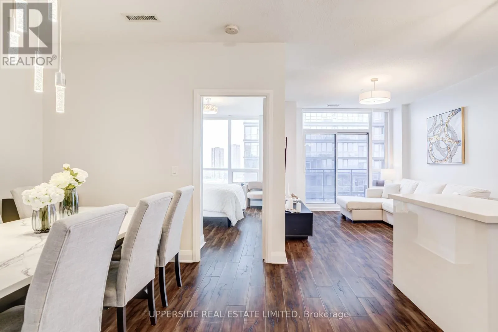 Cross Streets: Bathurst St & Centre St. ** Directions: Turn right onto North Park Rd from Bathurst St. Experience elevated living in this stunning penthouse suite at 85 North Park Rd. Thoughtfully upgraded and exceptionally spacious, this residence features one of the building's most sought-after side-split layouts, offering functionality, style, and privacy. The home showcases a brand-new custom kitchen with premium cabinetry, a center island, and ample storage, creating a modern and functional space for cooking and entertaining. It also boasts a welcoming entryway, two fully upgraded bathrooms, and two spacious bedrooms, including a primary retreat with a luxurious ensuite and a walk-in closet. The open dining area flows seamlessly into an inviting living room with floor-to-ceiling tinted windows, providing abundant natural light and enhanced privacy. Soaring 9-foot ceilings and custom blinds throughout create a serene ambiance, while upgraded light fixtures add a touch of elegance. Step outside to your private 100 sq. ft. terrace with views of the downtown Toronto skyline-the perfect extension of your living space for relaxing or hosting. The building offers an impressive selection of amenities, including an elegant party room, games room, conference room, pool area with hot tub and sauna, fully equipped gym, and a dedicated yoga/Pilates studio. Ideally situated in the vibrant Thornhill community, this condo offers unparalleled convenience with close proximity to places of worship, highly regarded schools, shopping, dining, healthcare and wellness facilities, parks, and everyday essentials. Public transit is just steps away, including the Promenade Transit Hub, with the subway only a short distance away. Major highways are also easily accessible, making this an ideal location for both work and leisure. The neighborhood attracts both young professionals and families, making it a compelling lifestyle and investment opportunity. A rare penthouse offering that perfectly combines exceptional location, privacy, luxury, space, and premium upgrades. (id:27476)