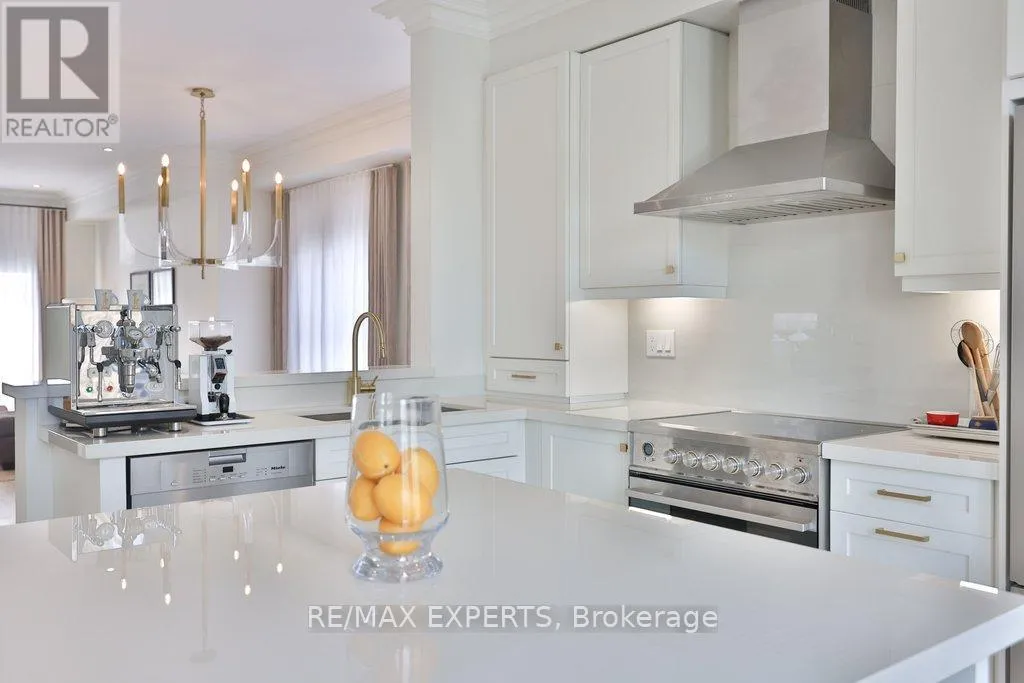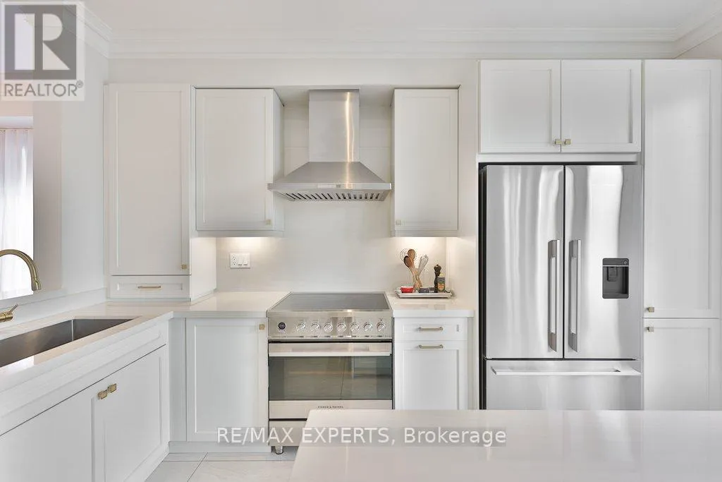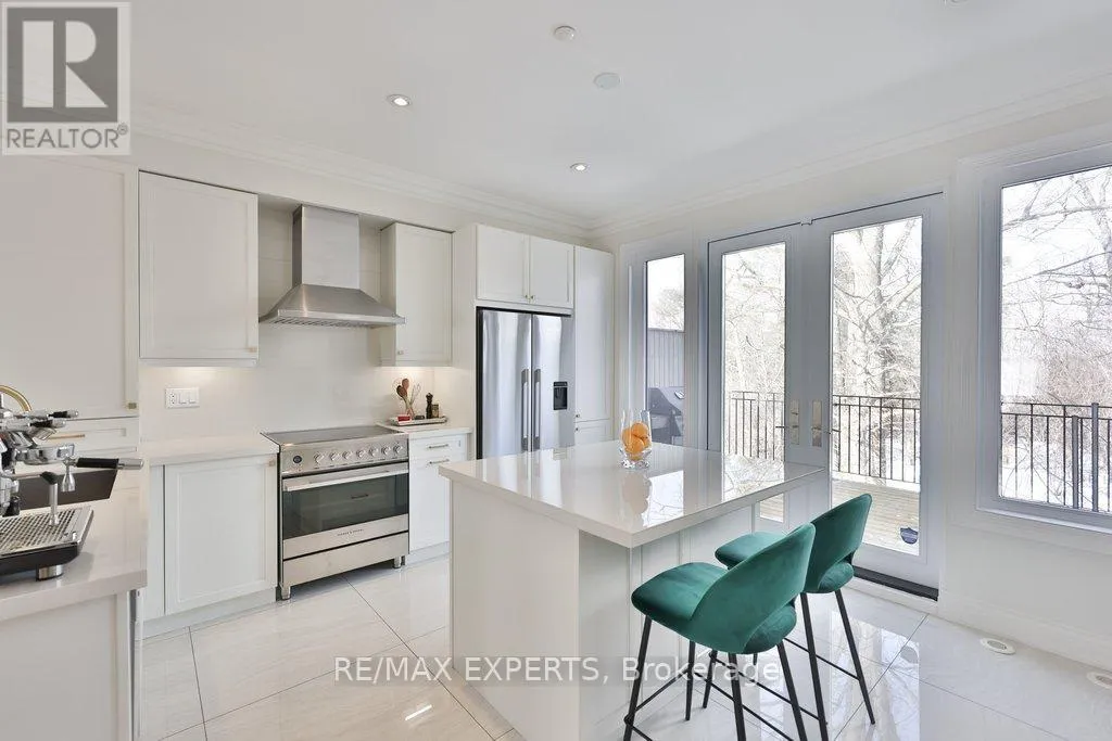Hwy 7 & Kipling Exceptional design meets an exceedingly spacious floorplan in this executive townhouse backing onto a ravine and conservation. Rarely available true 4 bedroom unit with ground level suite that can be used as a 5th bedroom. Being an end-unit, this home is wider than its counterparts and is flooded with natural light throughout. No space in this home has been left untouched - brand new white oak flooring throughout, new windows and 8 ft tall sliding glass doors, a designer kitchen with high-end appliances and coffee station/servery, heated foyer floors, restoration hardware drapery, and a private primary retreat with custom walk-in closet to die for! Multiple rear walkouts on the home allow you to experience the tranquil ravine setting from almost anywhere in the house. The home features a finished ground level room (w/ bathroom & shower) with private access from the side of the house and leading out to the rear yard... a perfectly secluded space for older kids or in-laws - or as a home gym. Details in the home include: 9 foot smoothed ceilings throughout, pot lights, crown moulding, 32" porcelain tile floors in kitchen and foyer, custom-cabinetry in kitchen/walk-in closet/living room/foyer closet, insulated garage door, smoke and sprinkler system on all levels, custom white oak handrails and iron pickets, repainted in neutral pallet, gas outlet (& BBQ included) on rear deck, convenient laundry room on bedroom level with sink. Close to the conveniences of Market Lane shopping, banks, coffee shops, bakery, as well as Fortino's grocery and quick access to Hwy427 - it's hard to imagine a better spot to live! (id:27476)