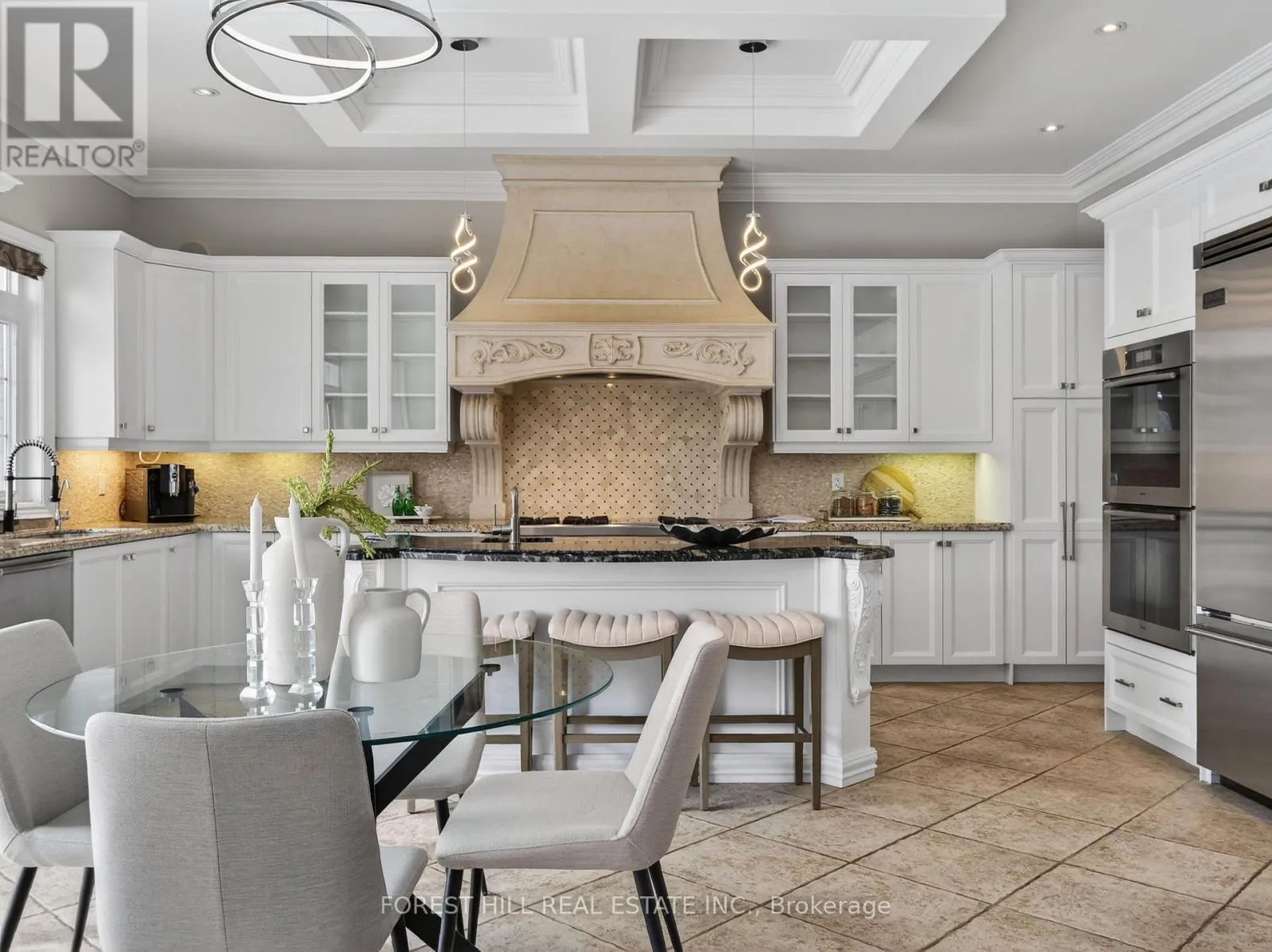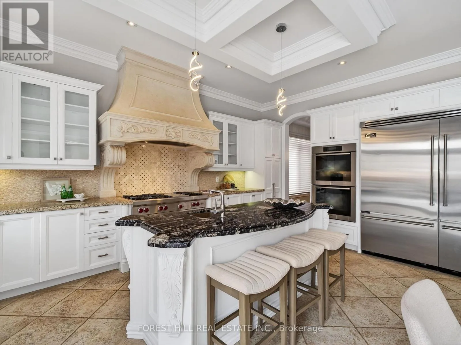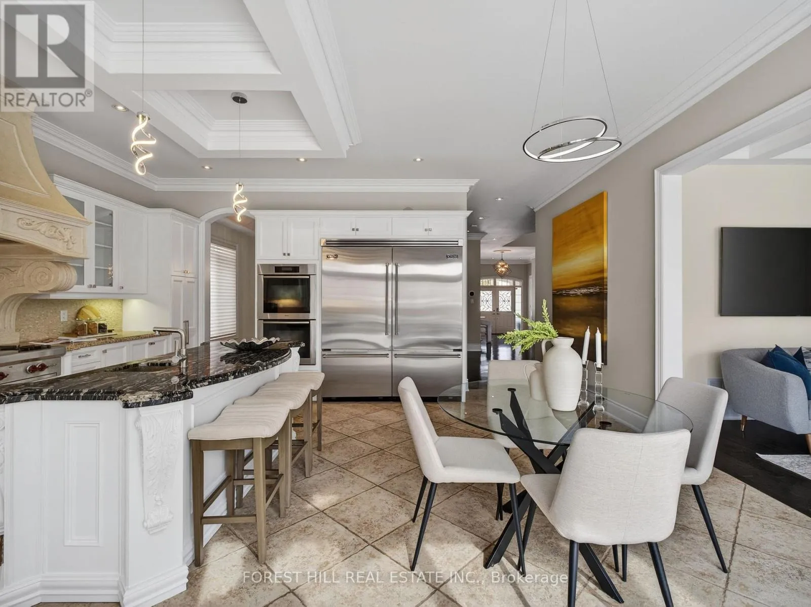 Dufferin Street and Major Mac Drive Welcome to 232 Luca Avenue, an elegant and timeless detached residence in the prestigious Patterson community of Vaughan. Situated on an impressive 47.57 x 134.29 ft lot with a deep backyard, this exceptional 4+1 bedroom, 7 bathroom home showcases refined living, quality craftsmanship, and a thoughtfully designed layout ideal for both grand entertaining and comfortable family life. The main floor features soaring 10-foot ceilings, rich hardwood flooring, and expansive windows that fill the home with natural light. The gourmet chef's kitchen is a true showpiece, equipped with top-tier appliances including two Viking refrigerators, two Miele ovens, and a Wolf 6-burner gas cooktop with griddle. Custom cabinetry, elegant stone countertops, and a large centre island create the perfect gathering space. The kitchen flows seamlessly into the spacious family room and formal dining area, offering both warmth and sophistication. Upstairs, a stunning skylight brightens the hallway, leading to four generously sized bedrooms, each complete with its own private ensuite for ultimate comfort and privacy. The primary suite is a serene retreat featuring a walk-in closet with custom organizers, double-sink vanity, separate water closet, and abundant natural light. The fully finished basement expands the living space with heated laminate flooring, a dedicated home theatre, guest bedroom, and two additional bathrooms - ideal for extended family or entertaining. Located minutes from Eagles Nest Golf Club, Maple Nature Reserve, Yummy Market, top-rated schools, parks, Mackenzie Health Hospital, shopping, community centres, and major highways, this beautifully maintained home offers luxury, convenience, and exceptional value in one of Vaughan's most sought-after neighbourhoods. (id:27476)