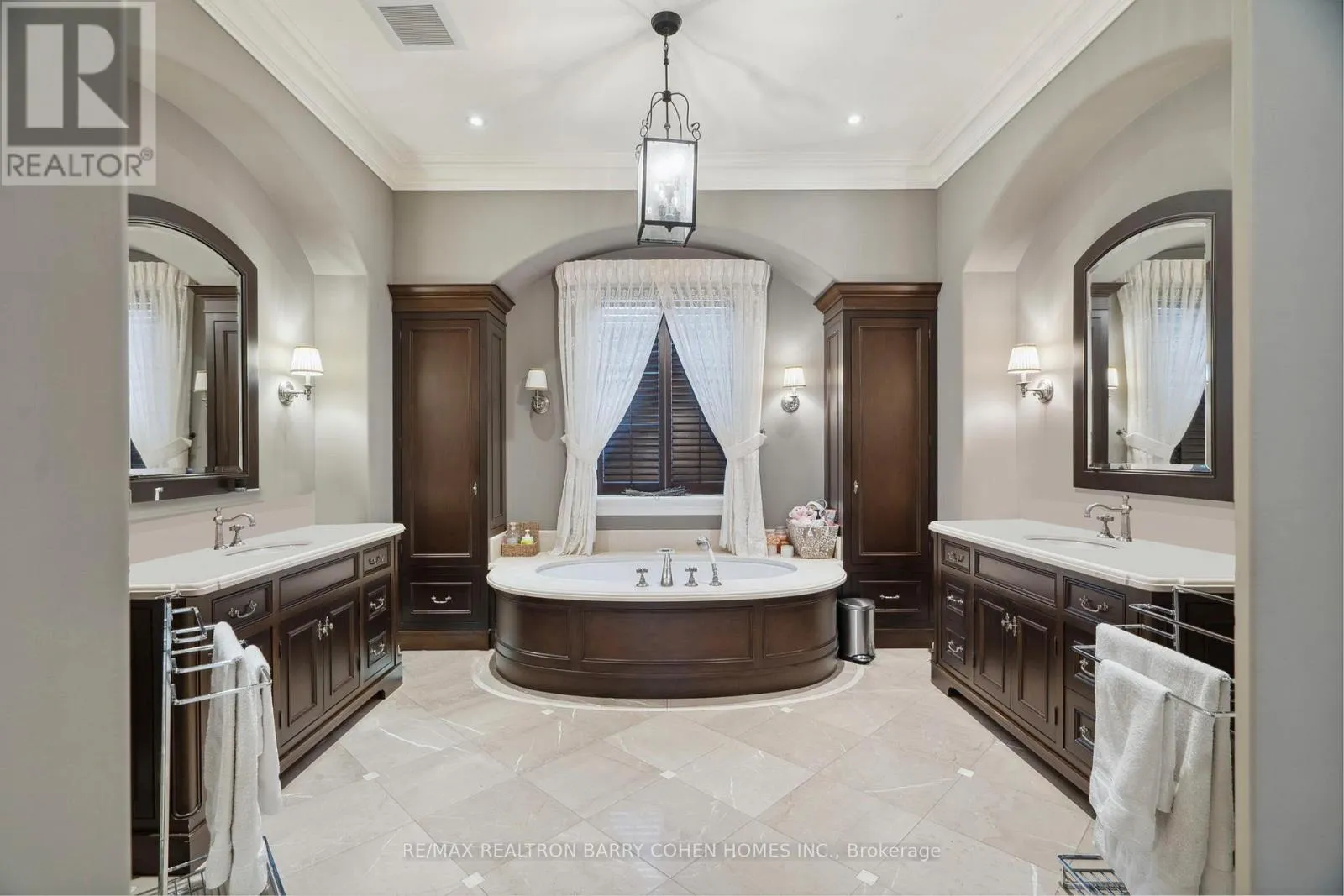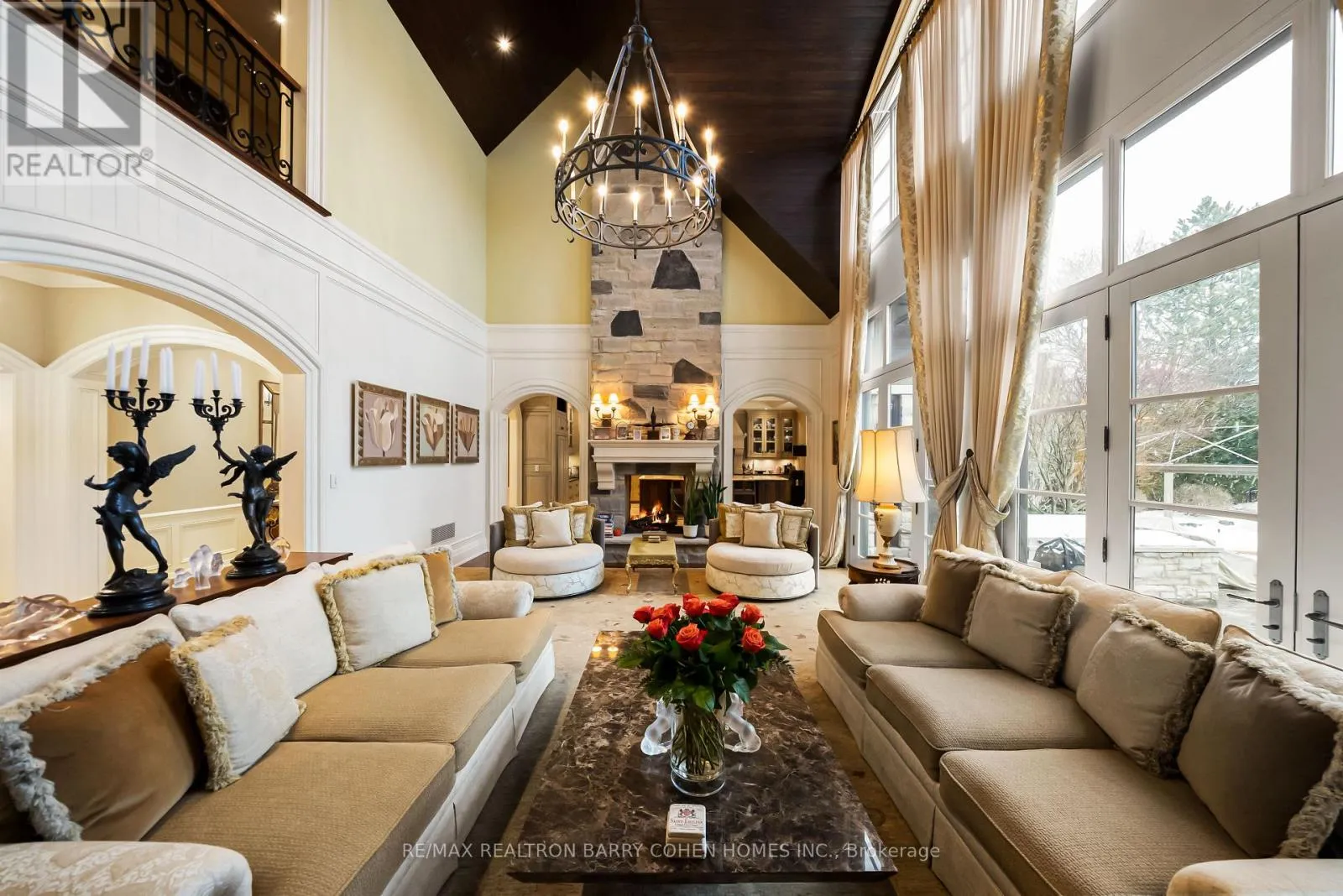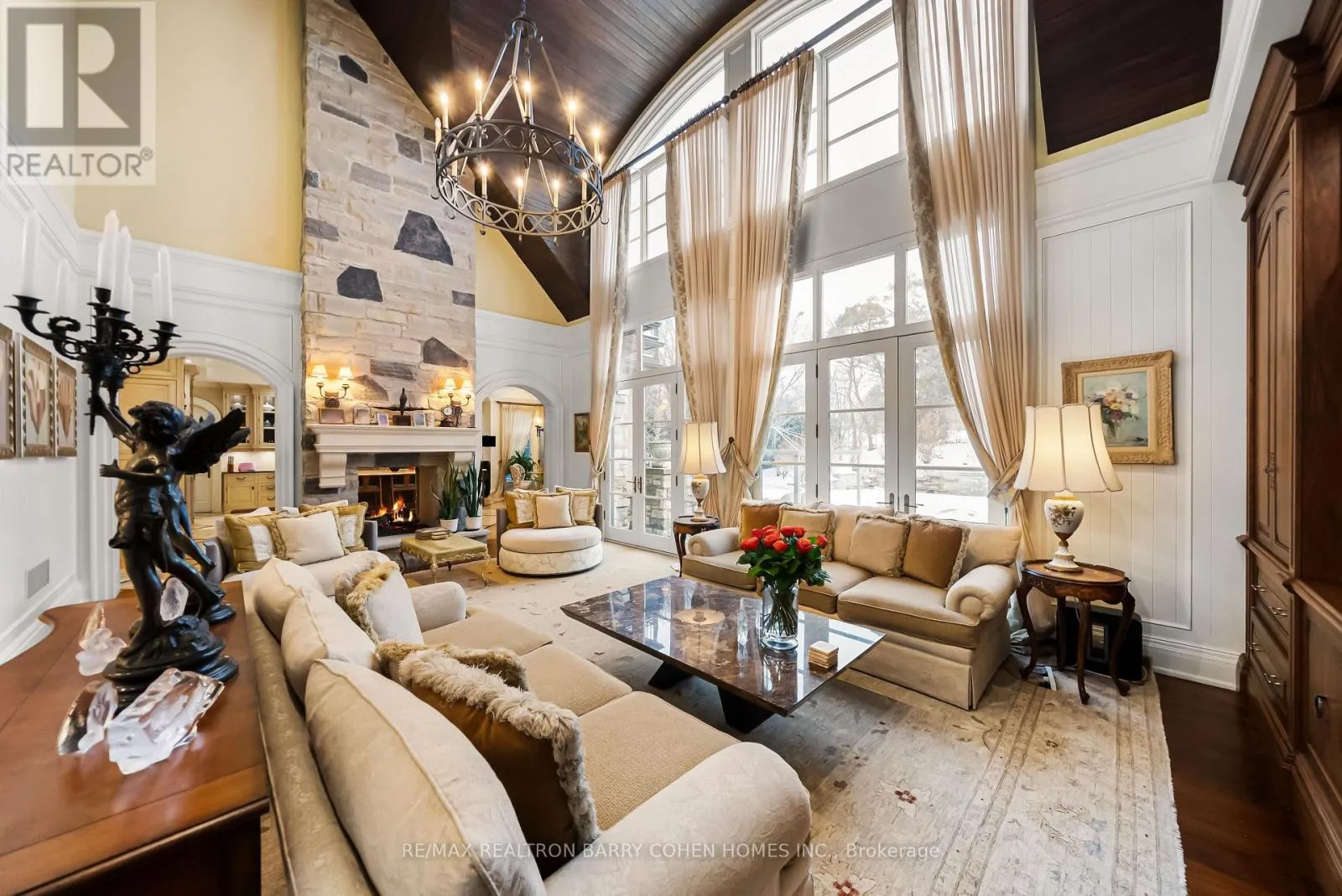 Cross Streets: Centre St/Bathurst. ** Directions: West of Yonge St. Landmark Estate Backing Onto The Prestigious Thornhill Golf And Nestled On Its Expansive South-Facing Lot. Towering Mature Trees For Ample Privacy. A Masterclass In Timeless Elegance And Craftsmanship With Striking Limestone Exterior & Cedar Shake Roof. Opens To A Grand Foyer With Majestic Cathedral Ceiling Soaring to a Breathtaking Height of Over 18 Feet, Custom Wall Paneling, Heated Natural Limestone Floors And Crown Molding. The Main Level Offers 11' Ceilings, Formal Living & Dining Rooms, Private Office Complete With Floor To Ceiling Wood Panelling and Gas Fireplace, Chef's Gourmet Kitchen With Custom Cabinetry, Natural Stone Countertops Complete in Leathered Finish, Wolf Appliances, Limestone Floors With Elegant Marble Inlays, Walk-in Pantry, Breakfast Area and Walk-out to Rear Gardens. The Family Room Impresses With Grand Atrium Ceilings, Flooded W/ Natural Light, Custom Built-Ins, And A Dual Fireplace. Heated Floors Enhance The Side Entrance And Powder Rooms. Unparalleled In Grandeur Primary Suite Offers Walk-Out to Terrace, Gas Fireplace, Walk-In Closet W/ Vanity Island, A Spa-Like Bath W/ Heated Marble Floors, His&Hers Vanities, Jacuzzi TubAnd Separate Water Closet. Upper Level Features Three Oversized Bedrooms, Each With Private Ensuites, Custom Closets & 2 Balconies. Walk-Out Lower Level Designed by World Renowned Lori Morris, Features 9' Ceilings,Home Theatre, Games Room, Temp. & Humidity Controlled Wine Cellar (1,500 bottles), Guest Suite, Full Spa With Sauna & Shower, Gym W/ Direct Access To The Gardens and Heated Pool. Smart Home Features Incl. Lutron Lighting, Sonos Sound System, Radiant Floor Heating. Full Snow-Melt Systems For Driveway And All Exterior Stone Surfaces. Backyard Oasis Features An Inground Heated Salt Water Pool W/ Cascading Waterfall, Hot Tub, Outdoor Bathroom/Change Room,Lush Gardens, And Resort-Style Amenities. A One-Of-A-Kind Estate With Unparalleled Blend Of Sophistication, Ultimate Privacy And Prestigious Golf Course Setting. (id:27476)