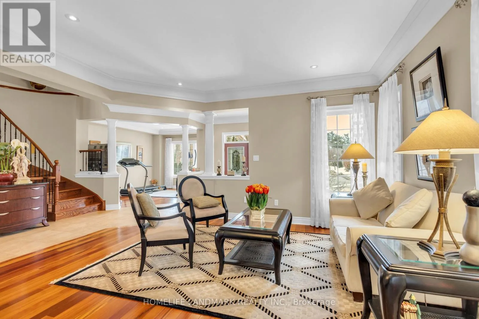 Cross Streets: Rutherford Rd & Weston Rd. ** Directions: North/East Corner of Rutherford Rd & Via Campanile. Welcome to 7 Via Campanile. Situated in the prestigious heart of Woodbridge, this former model home offers over 4,100 square feet of refined living space, perfectly positioned among lush parks, elite schools, and estate residences. The main floor is a masterclass in architectural detail, featuring soaring 9 ft coffered ceilings, decorative columns, and rich hardwood floors. A signature spiral oak staircase with contemporary metal spindles serves as a striking focal point, while upgraded crown molding and designer pot lighting throughout the first floor add a layer of modern sophistication. Even the family room has been elevated with a special upgraded fireplace mantle, creating a truly grand atmosphere for relaxation. A Gourmet Chef's Sanctuary. The heart of the home is the expansive kitchen, designed for both high-end entertaining and daily functionality. Stunning granite countertops with plenty of counter space for meal prep. Extra-height cabinets that maximize storage and vertical scale. Integrated under-cabinet lighting to highlight the workspace , along with a kitchen pantry. The elegance continues to the upper level, which features crown molding throughout for a polished finish. All four generous bedrooms boast ensuite access, but the primary sanctuary is the true showpiece. It features a romantic 2 way fireplace and a spa-inspired ensuite complete with a glass shower stall and a bidet. For added versatility, the open-concept loft offers the perfect footprint for a private media lounge. Limitless Potential, With a massive 2,000 sq. ft. unfinished basement featuring a separate service entrance, the potential for a custom guest suite or high-end rental is limitless. Located minutes from top-rated golf courses, shops, and major highways, 7 Via Campanile offers prestige, privacy, and unparalleled convenience. This is a true turn-key luxury home in one of Vaughan's premier neighborhoods. Updates: Roof (2026), A/C (2021), Hot Water Heater (2020) and Furnace (2019) (id:27476)