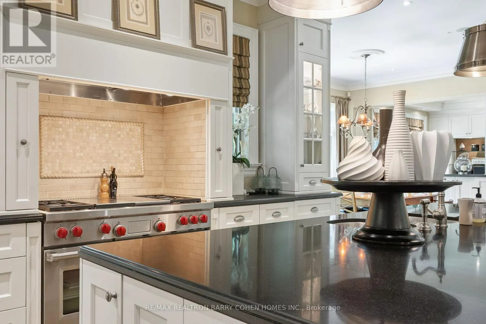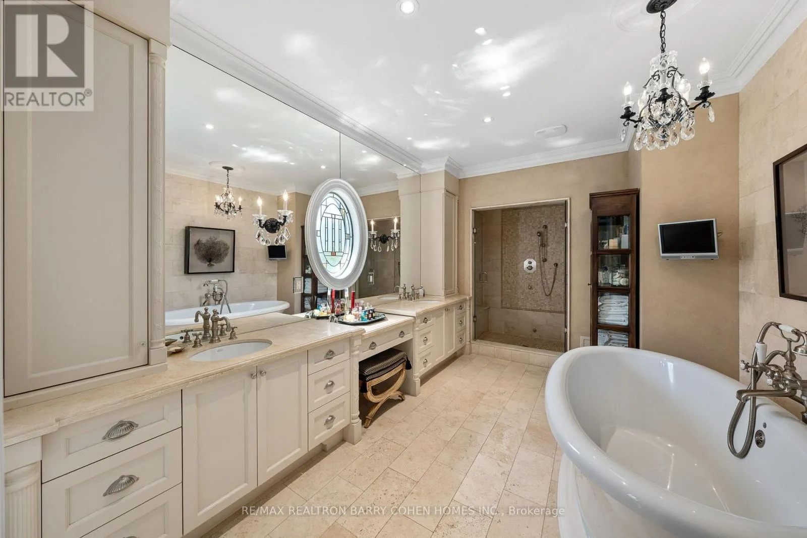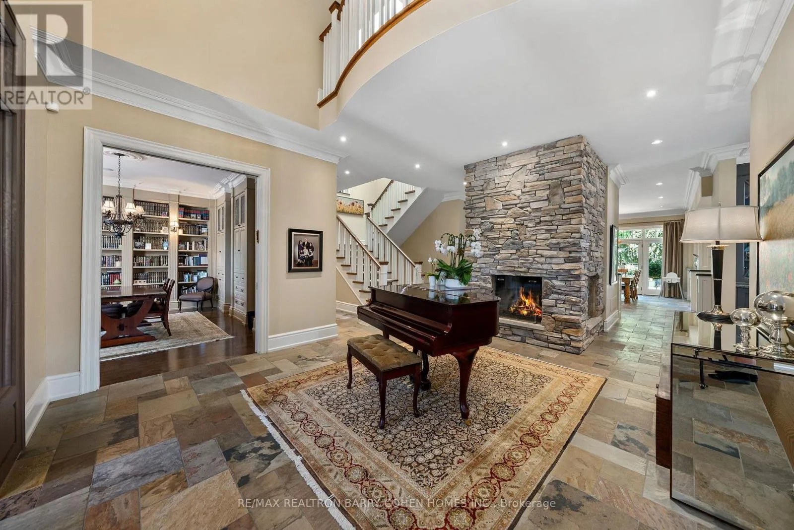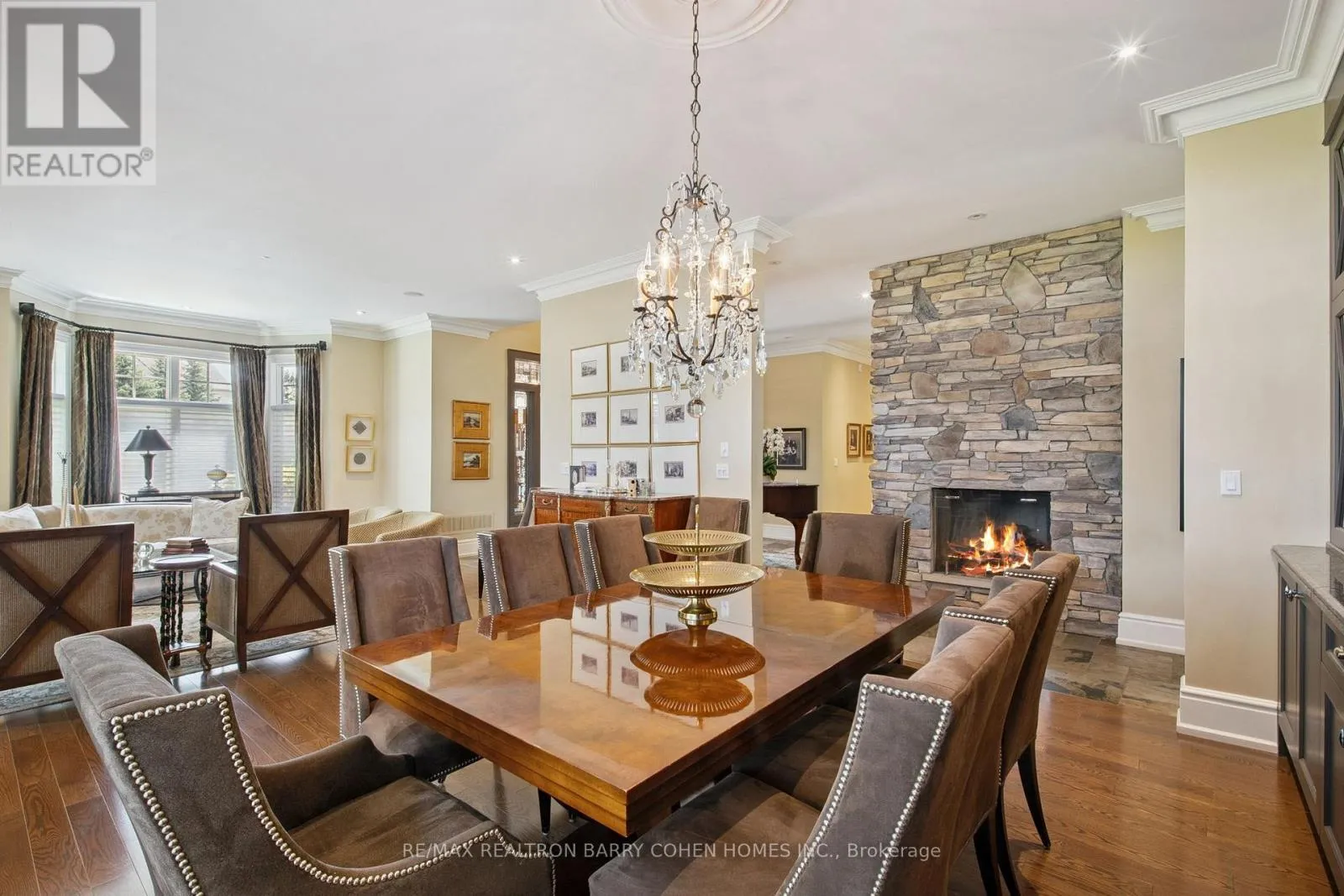 Cross Streets: Bathurst/407. ** Directions: East of Bathurst. Grandeur On Parr Place Thornhills Only Entry Gated Community Located Amongst Like Mansions. Custom Built Design By David Small. This Craftsman-Inspired Masterpiece Boasts Over 9,700 Sq. Ft. Of Exquisitely Designed Living Space, Surrounded By Mature Trees In A Tranquil, Resort-Like Setting. Step Inside To Soaring Ceilings, Rich Oak Hardwood Floors, Slate Tile, Integrated Sound, Detailed Crown Moulding, Custom Stained Glass, And Anderson Windows Throughout. The Main Floor Centers Around A Grand Two-Sided Stone Fireplace, Connecting Elegant Principal Rooms With A Warm, Timeless Ambiance. Gourmet Chefs Will Love The Designer Kitchen With Centre Island, Breakfast Area With Views Of The Manicured Rear Gardens, And Seamless Indoor-Outdoor Flow. A Dedicated Utility Corridor Offers Garage Access, Laundry, And A Private Staircase To Upper And Lower Levels. Retreat To The Luxurious Primary Suite Featuring Vaulted Ceilings, Gas Fireplace, Double-Door Entry, A Custom Walk-In Closet, And An Opulent 9-Pc Ensuite. Versatile Upper Level Offers Primary Suite With Magnificent Boudoir Or 6 Spacious Bedrooms, Each With Private Or Semi-Private Ensuites, Ideal For Large Families Or Hosting Guests In Comfort And Style. The Fully Finished Lower Level Is Built To Entertain With A Second Kitchen, Oversized Rec Room With Fireplace, Wet Bar, Games Room, Gym, Bedroom, 2 Bathrooms & Cold Storage. The Private Backyard Oasis Is An Entertainers Dream With Multiple Pergolas, Covered Patio, Sport Court, Saltwater Pool, And A Fully Fenced Dog Run. Prime Location With Easy Access To 407, Yonge St, Top-Rated Public & Private Schools, Parks, And Shopping. This One-Of-A-Kind Estate Checks Every Box Luxury, Location, And Lifestyle. (id:27476)