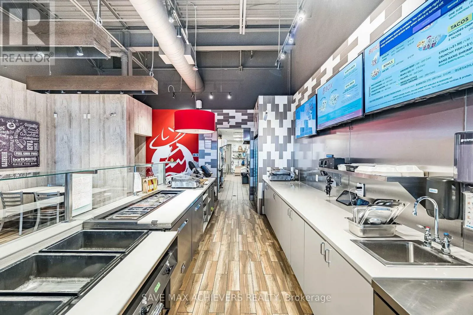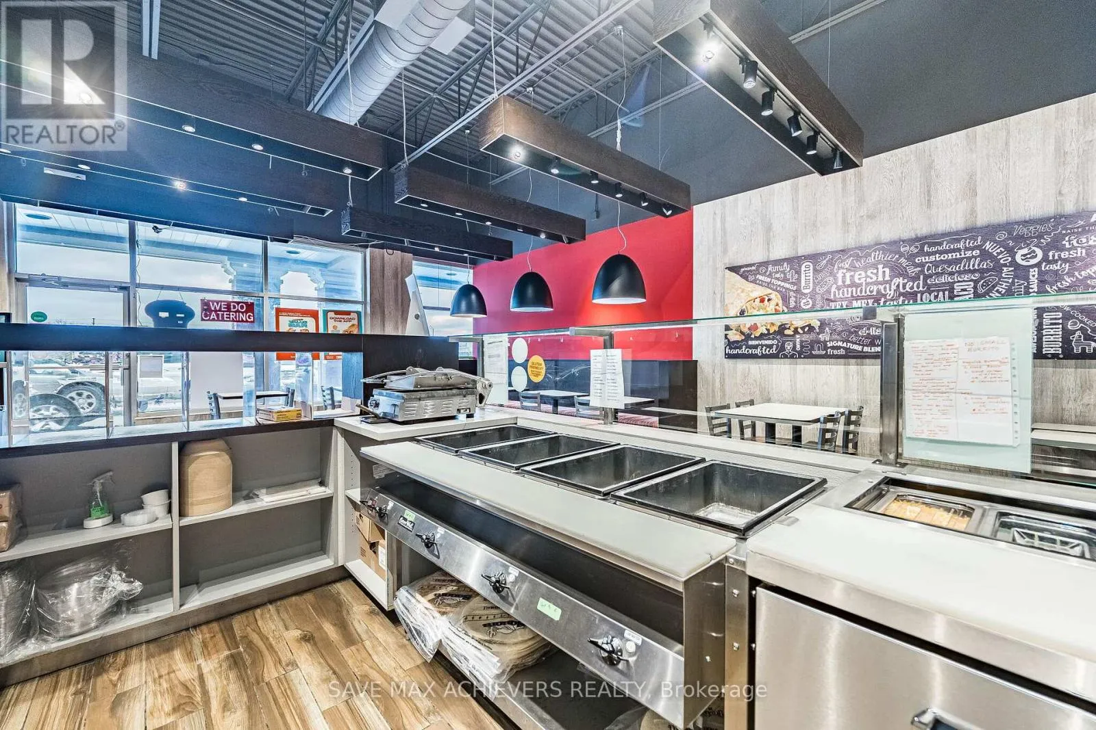 Islington Ave.& Rutherford Rd Excellent Turnkey Franchised Business Opportunity - Bar Burrito located in a high-traffic plaza at the busy intersection of Islington Ave. & Rutherford Rd., in Vaughan (Woodbridge). Surrounded by a mature residential neighborhood with anchor tenants such as Food Basics, McDonald's, Tim Hortons, and Pizza Pizza. Proximity to schools, Highway 400, and numerous residential developments provides steady walk-in traffic and potential for growth. This well-established fast-casual restaurant boasts high monthly sales of approximately $33,000-$35,000 with low monthly rent of$5,708 (Incl. TMI & HST). Utility costs are approximately. $1,000-$1,200/month. Franchise fees include 6.0% royalty and 1.25%advertising. Long-term lease in place with two 5-year renewal options available. Store size approx. 1,500 sq.ft. with a seating capacity of 24- 28 people. Well-maintained, fully equipped kitchen and dining area with a strong customer base and opportunity to increase revenue through catering, delivery platforms, and community engagement. Perfect for owner-operators or investors seeking a stable, branded food business in a premium location. (id:27476)