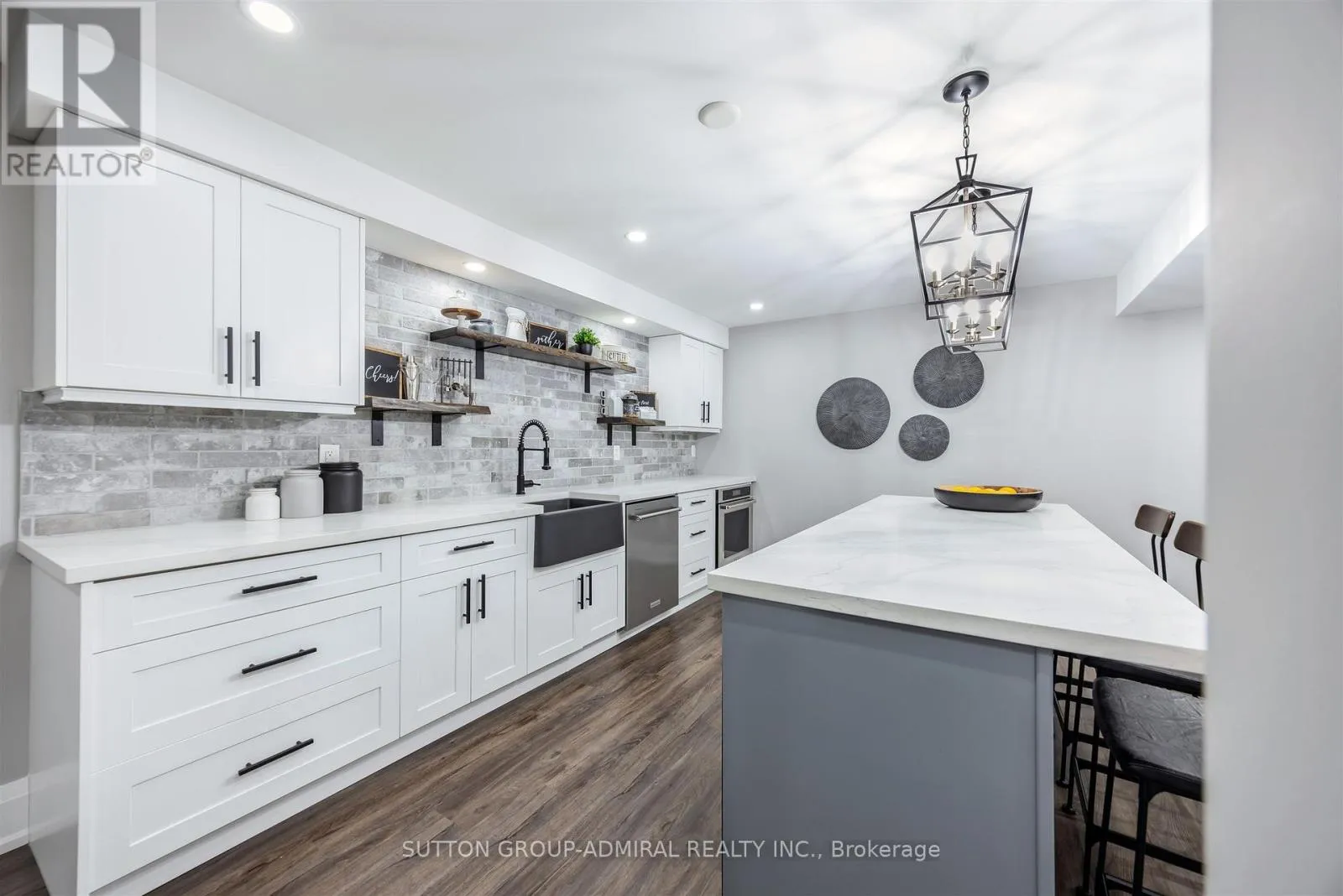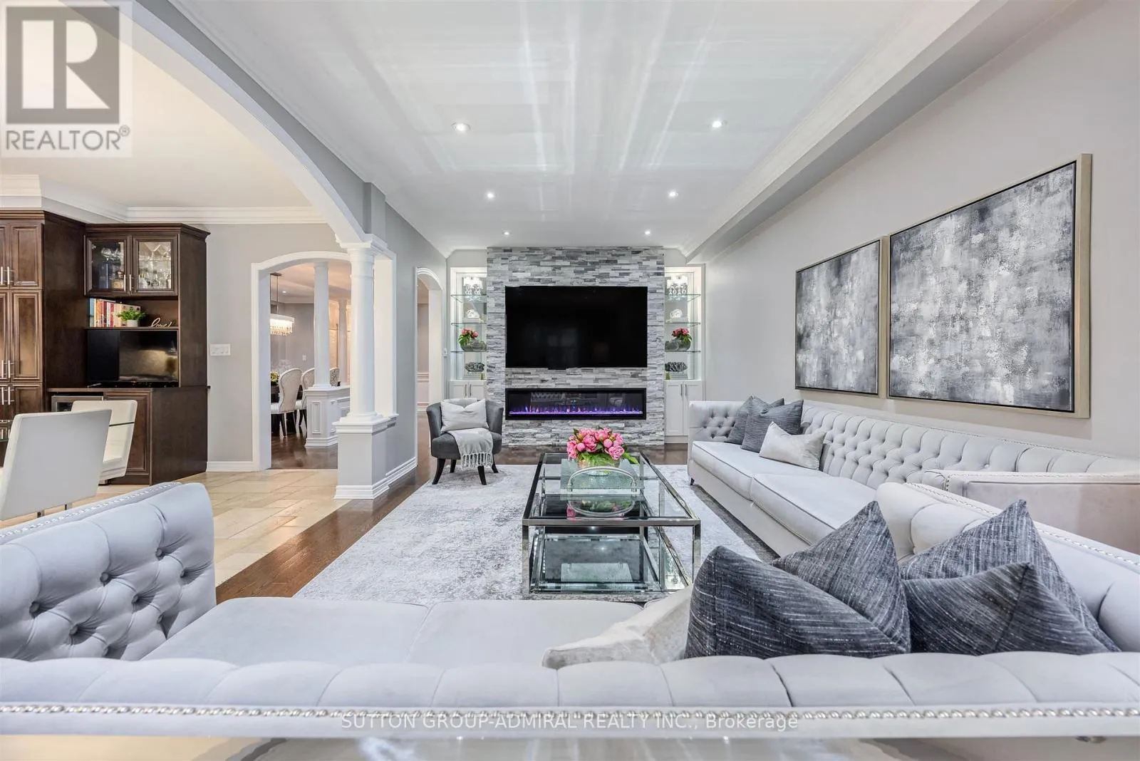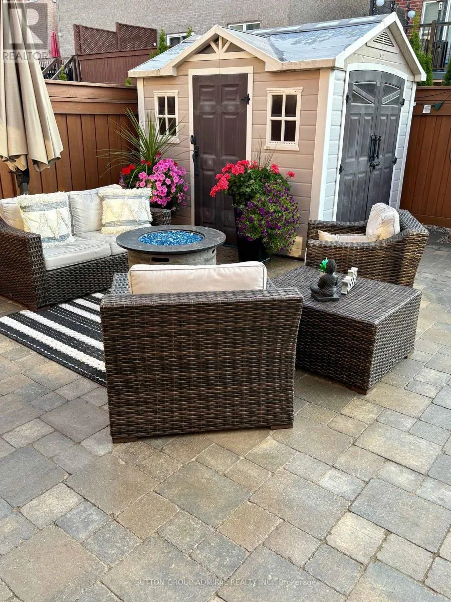 Major Mack/Weston Rd Welcome to this beautifully maintained home that truly displays pride of ownership. Featuring a striking stone and brick exterior with elegant exterior pot lighting, the property is professionally landscaped front & back with interlock. Enjoy the charming flagstone front porch & steps, along with a private backyard complete with a gazebo & shed. The property also features a long driveway with no sidewalk, allowing for additional parking spots. Step inside to a spacious open concept floor plan with large principal rooms. The main floor features a formal dining room and a large chef-inspired kitchen with center island and breakfast bar, upgraded appliances, Caesarstone countertops, tumbled marble floors, and a glass mosaic backsplash. The kitchen opens seamlessly to the inviting family room- perfect for everyday living & entertaining. The family room showcases a custom stone feature wall with a built-in linear fireplace along with custom cabinetry & shelving. The upper level offers four generous bedrooms, including two primary suites- each with its own ensuite bathroom and walk-in closet. Two additional bedrooms share a convenient semi-ensuite bathroom, making this level ideal for families. The professionally finished lower level adds exceptional versatility, featuring a secondary custom kitchen with a large eating area, a spacious recreation room with fireplace, a 3-piece bathroom, an office nook, and ample storage space. Located in the desirable Vellore Village community, this homes is close to all amenities including public transit, shops, schools, restaurants, and convenient access to major highways. (id:27476)