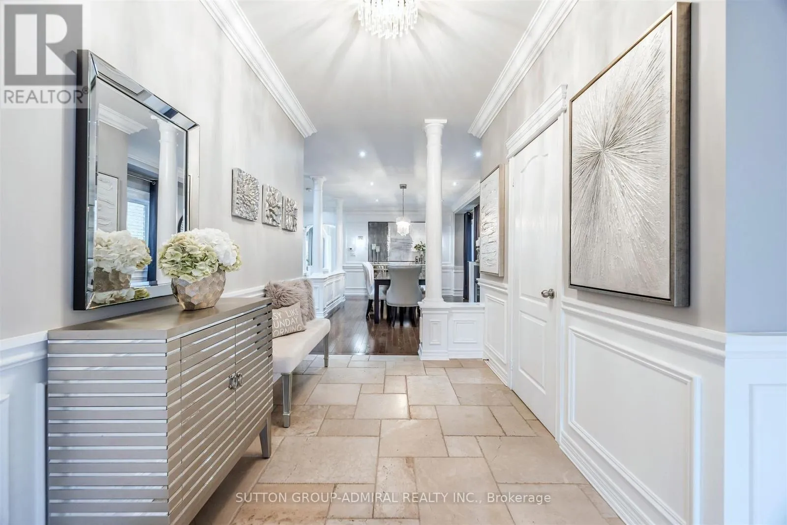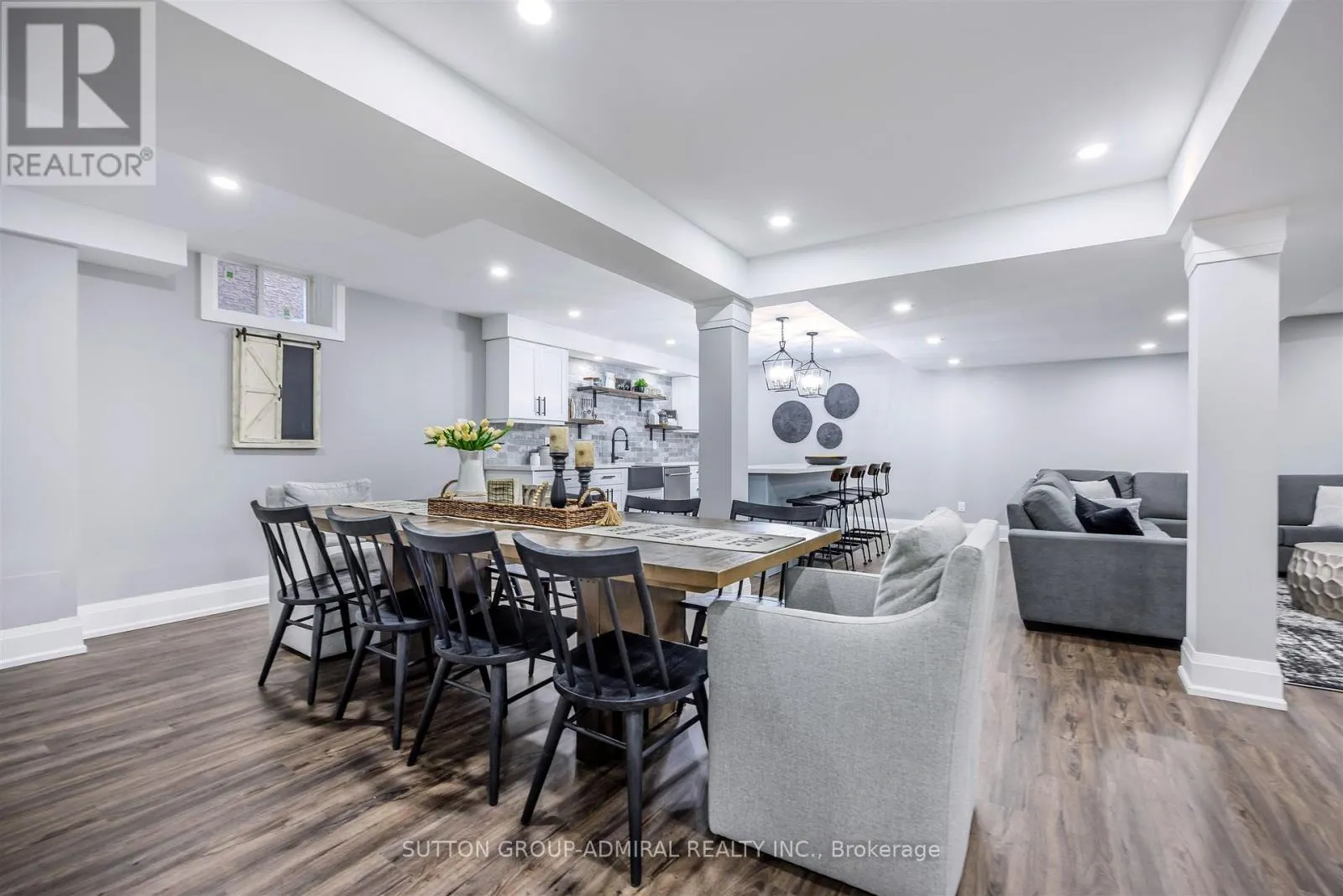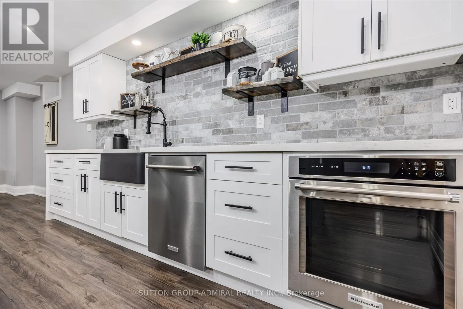 Major Mack/Weston Rd Welcome to this beautifully maintained home that truly displays pride of ownership. Featuring a striking stone and brick exterior with elegant exterior pot lighting, the property is professionally landscaped front & back with interlock. Enjoy the charming flagstone front porch & steps, along with a private backyard complete with a gazebo & shed. The property also features a long driveway with no sidewalk, allowing for additional parking spots. Step inside to a spacious open concept floor plan with large principal rooms. The main floor features a formal dining room and a large chef-inspired kitchen with center island and breakfast bar, upgraded appliances, Caesarstone countertops, tumbled marble floors, and a glass mosaic backsplash. The kitchen opens seamlessly to the inviting family room- perfect for everyday living & entertaining. The family room showcases a custom stone feature wall with a built-in linear fireplace along with custom cabinetry & shelving. The upper level offers four generous bedrooms, including two primary suites- each with its own ensuite bathroom and walk-in closet. Two additional bedrooms share a convenient semi-ensuite bathroom, making this level ideal for families. The professionally finished lower level adds exceptional versatility, featuring a secondary custom kitchen with a large eating area, a spacious recreation room with fireplace, a 3-piece bathroom, an office nook, and ample storage space. Located in the desirable Vellore Village community, this homes is close to all amenities including public transit, shops, schools, restaurants, and convenient access to major highways. (id:27476)