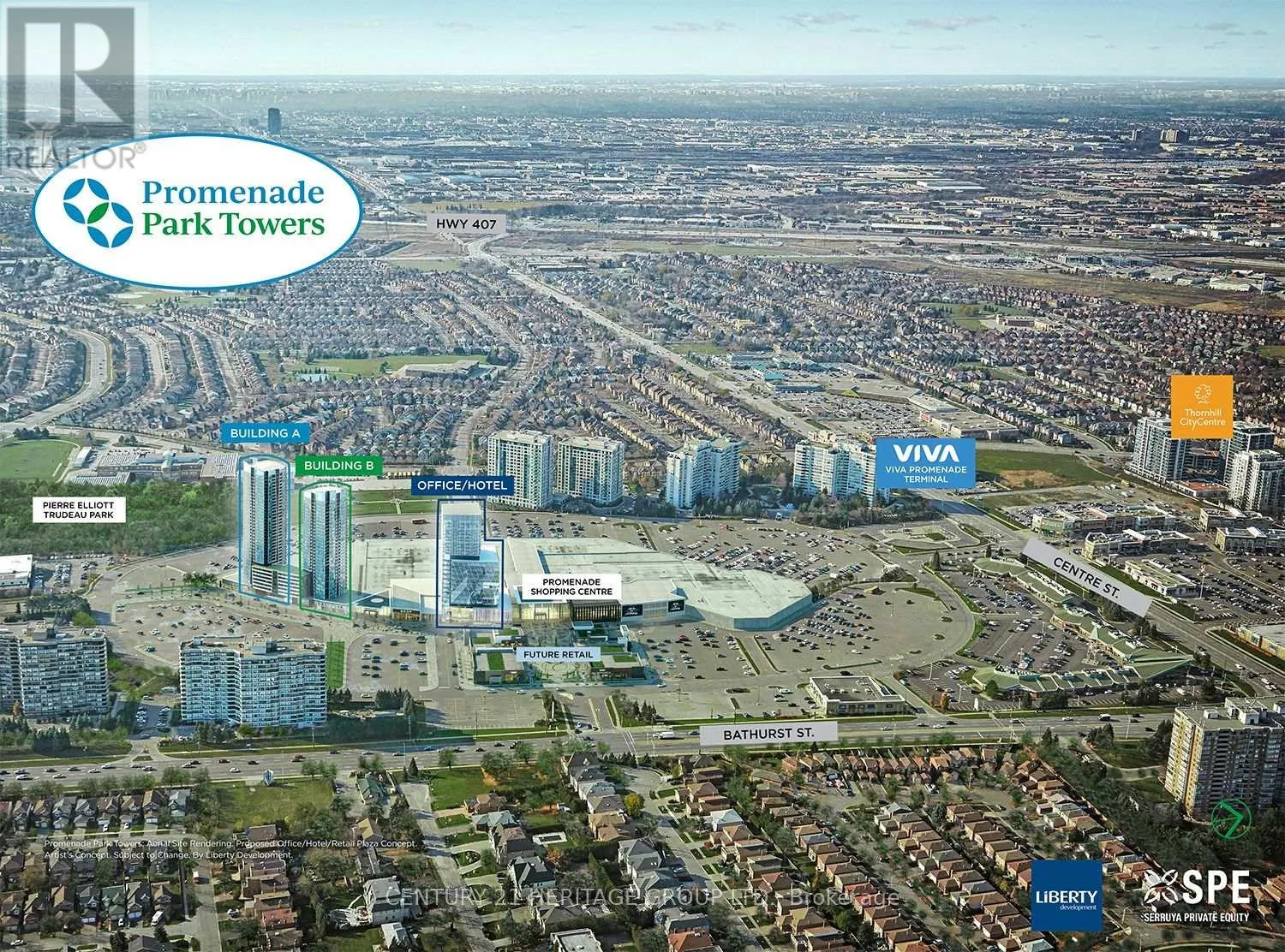 Cross Streets: Bathurst St & Centre St. ** Directions: Bathurst & Center St- Promenade Mall. Stunning unobstructed city and downtown views from the 35th floor of Promenade Park Towers - Tower A, ideally located in the heart of Thornhill, Vaughan. This bright and spacious unit offers approximately 685 sq. ft. plus balcony and features a well-designed open-concept living, dining, and kitchen layout with walk-out to a private balcony. The unit includes a large primary bedroom, a versatile den with sliding door and closet that can easily function as a second bedroom or home office, and two full bathrooms. Enjoy 9-foot ceilings, laminate flooring throughout, and a modern European-style kitchen with quartz countertops and stainless steel appliances. This brand-new luxury building boasts a stunning lobby and exceptional resort-style amenities, including 24-hour concierge, green roof terrace, fitness centre, yoga studio, party room with private dining area and kitchen, indoor and outdoor children's play areas, study lounge, cyber lounge, sports lounge, billiards room, media/game room, golf simulator and more. Direct indoor access to Promenade Mall and a high-end grocery store. Prime location steps to the VIVA Transit Terminal and rapid transit, and close to libraries, parks, nature trails, golf and country clubs, community centres, schools, theatres, and shopping plazas with restaurants and services. Easy access to Highways 407 and 7. Extras: 24-hour concierge, one underground parking space, and condo fees include heat, water, and internet. (id:27476)