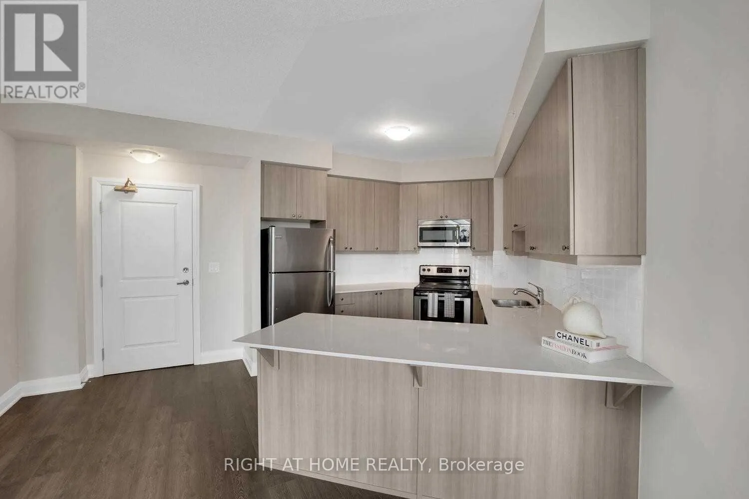 Cross Streets: Highway 7 & Martin Grove Rd. ** Directions: Highway 7 to Woodstream. Welcome to 24 Woodstream Blvd, Suite 305-an executive one-bedroom condo in the boutique "Allegra" building. This beautiful unit offers close to 700 sq. ft. of thoughtfully designed open-concept living space, plus a balcony, with 9-foot ceilings and a fully upgraded kitchen featuring Caesarstone countertops, premium cabinetry, and a mosaic glass backsplash-ideal for entertaining or enjoying a quiet evening at home. This rarely offered layout is the largest one-bedroom model in the building, showcasing a bright, sun-filled exposure and generous living space to suit your needs. Features include sleek laminate flooring throughout, a spa-inspired bathroom, custom window coverings, and stunning park views from the oversized balcony, making this a true move-in-ready home. Upgraded appliances include stainless steel fridge, stove, dishwasher, microwave, as well as a washer and dryer. Rent includes all window coverings, light fixtures, one parking space, and one locker. Residents enjoy exceptional amenities such as a rooftop terrace, fully equipped fitness centre, party room, boardroom, and more. Located in one of Vaughan's most sought-after neighbourhoods, this building is just steps from major transit, schools, community centres, shopping, dining, parks, and all essential conveniences. (id:27476)