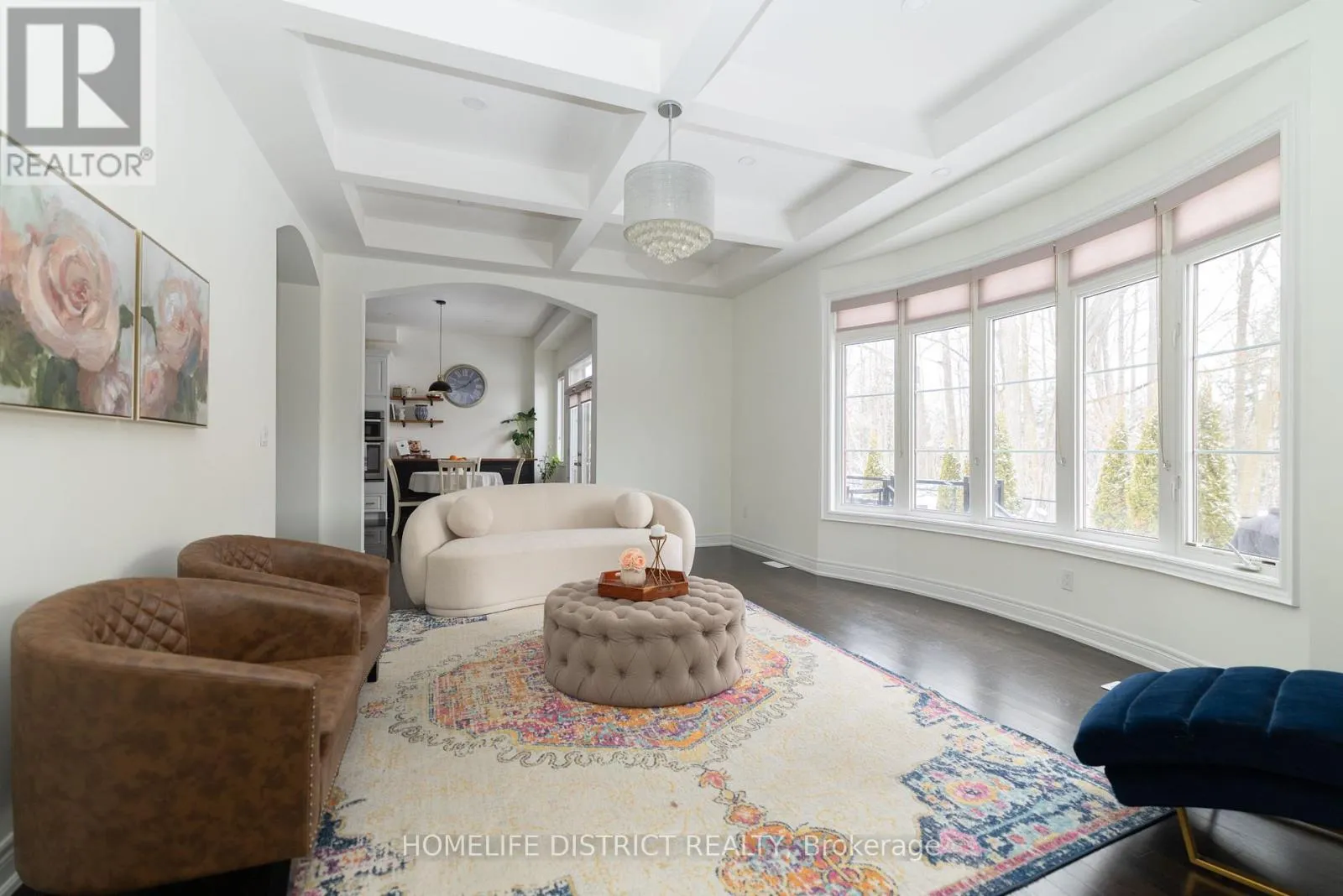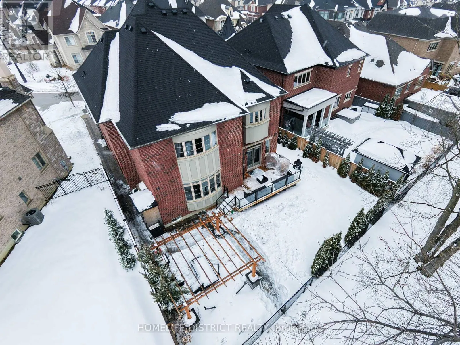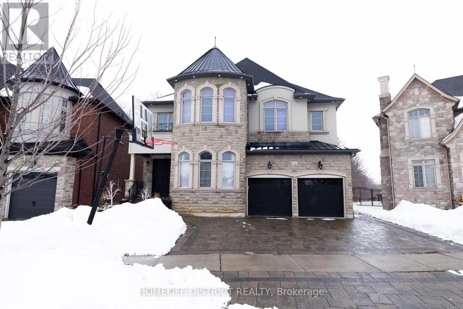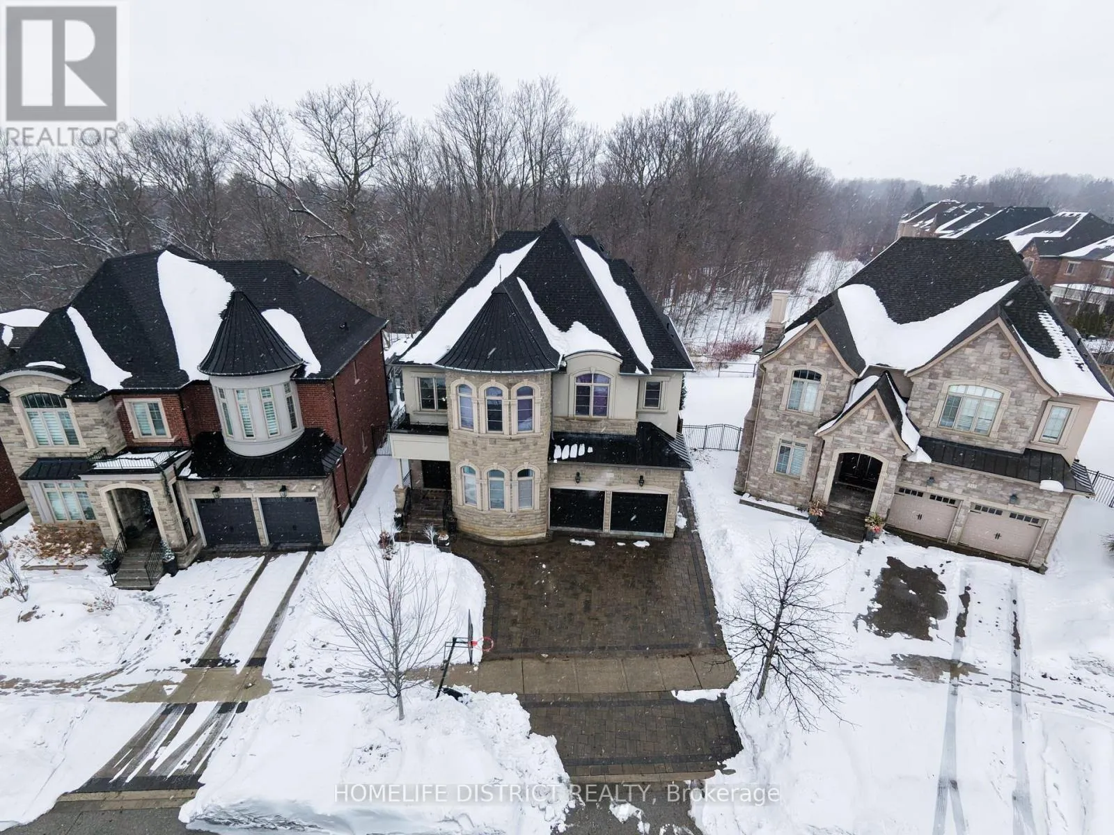 Major MacKenzie Dr W and Weston Rd Wake up to the peaceful chirping of birds in this luxury ravine-backing home offering ultimate privacy. Built by Mosaik Homes, The St. Germain Elevation C offers 4,160 sq ft above grade with 10-ft waffle and coffered ceilings on the main floor and 9-ft ceilings on the second and basement levels. The open-concept layout features spacious living areas and four large bedrooms, each with its own walk-in closet. The primary retreat includes a bay window overlooking the ravine, space for a sitting area, a spa-like ensuite with soaker tub, double sinks, glass shower, vanity, and abundant natural light, plus a custom walk-in dressing room. Upgrades include a separate basement entrance, main floor laundry/mudroom, extended kitchen cabinetry, granite countertops throughout, hardwood flooring, custom archways, built-in office and dining cabinetry, stone fireplace mantle, pot lights (interior/exterior), custom drapes and shades, and in-ground sprinklers. The finished basement is designed for entertaining with built-in seating/storage, home theatre with projector and speakers, reading nook, full kitchen, bar, bathroom, and a glass-enclosed gym (easily convertible to an in-law suite).Exterior highlights include an extended interlock driveway and patio fitting 3 cars side-by-side plus a 2-car garage. Interlock continues to the separate entrance and backyard pergola seating area overlooking a rose garden and ravine. A wood deck with glass railing provides unobstructed wildlife views. Additional features include double arched gates, landscaped gardens, fire pit area, and ample green space with room for a future pool. Close to Walmart Supercentre plaza, grocery stores, Cortellucci Vaughan Hospital, and walking distance to elementary, high school, and Catholic schools. (id:27476)