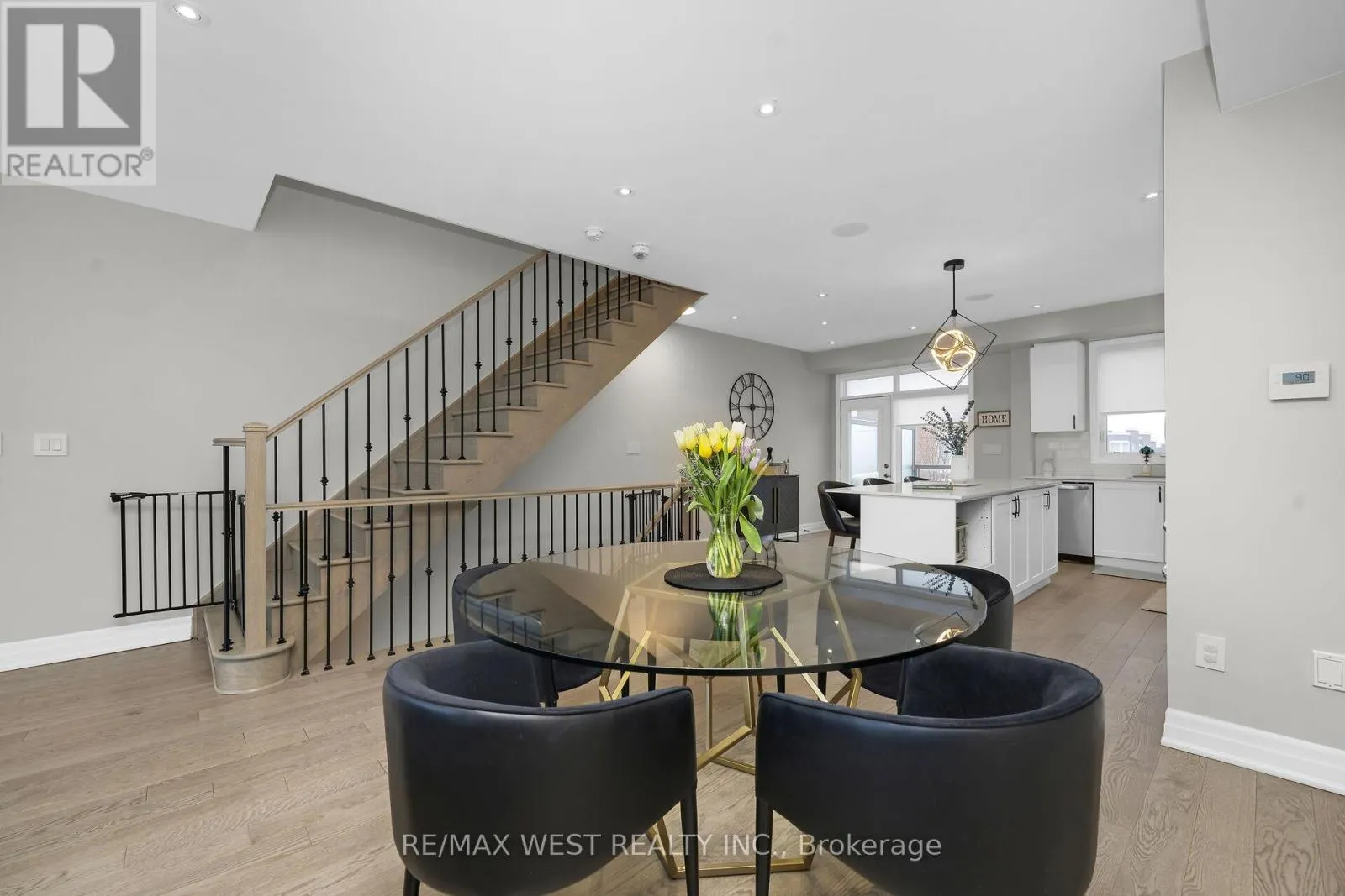 Pine Valley and Willis Don't miss out on this gorgeous 3-Storey Bright and Spacious Townhouse! Located in Desirable East Woodbridge, centrally located and close to several amenities. Open Concept layout with over 2000 sq ft of living space, and large principal rooms. Main floor boasts 9' ceilings, with pot light throughout and large balcony off the kitchen; great space to entertain guests. Upper level offers 3 Bedrms and 2 baths. Primary bedroom includes both a 5-pc ensuite and Lrg W/I closet, w closet organizers thru-out. Subtle neutral decor, with upgraded floors, pickets, countertops, audio system thru-out, alarm and security cameras, reverse osmosis, CVAC, upgraded light fixtures etc. Entire house freshly painted. This home comes equipped with central air, and BBQ gas line, and basement bathroom rough-in. (id:27476)