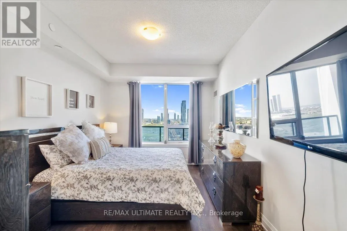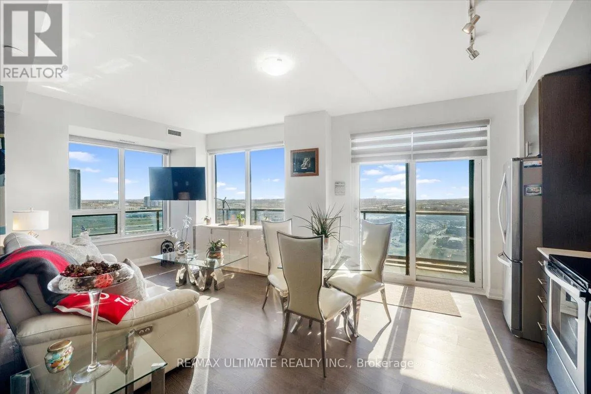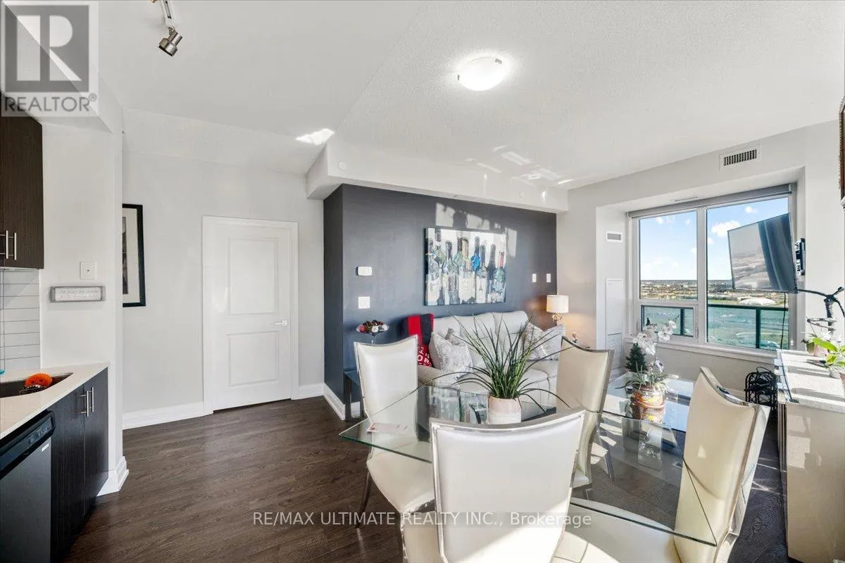 HIGHWAY 7 & WESTON RD Welcome to Unit 2008 at Centro Square Condominiums, where modern living meets unmatched convenience in the heart of Vaughan. This spacious 2-bedroom, 2-bathroom corner suite offers a bright layout filling the home with natural light and providing sweeping views of the city skyline over a wrap-around balcony. The kitchen is equipped with upgraded stainless steel appliances, seamlessly flowing into the combined living and dining area. Both bedrooms are generously sized, with the master featuring its own ensuite, while the second full bathroom ensures comfort for family, guests, or a work-from-home setup. Residents enjoy access to resort-style amenities including a fitness centre, indoor pool, party and meeting rooms, golf simulator, outdoor BBQ and lounge area, billiards & media rooms, guest suites, and 24-hour concierge service. Perfectly located with direct access to shopping, dining, and entertainment all across the street, major highways, and just minutes from Vaughan Metropolitan Centre subway station, this unit delivers the ideal blend of style, function, and urban lifestyle. Top of the line upgrades added include under-mount lighting, glass shower enclosure in master ensuite, stainless steel appliances, full-size washer & dryer, mirrored closet doors, kitchen cabinetry, and bath & kitchen fixtures. (id:27476)