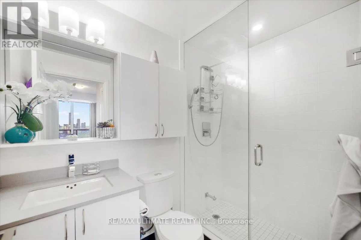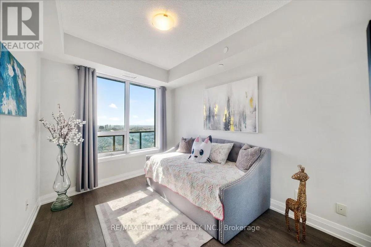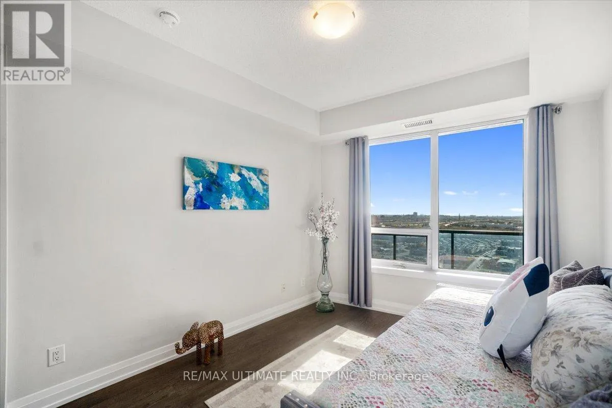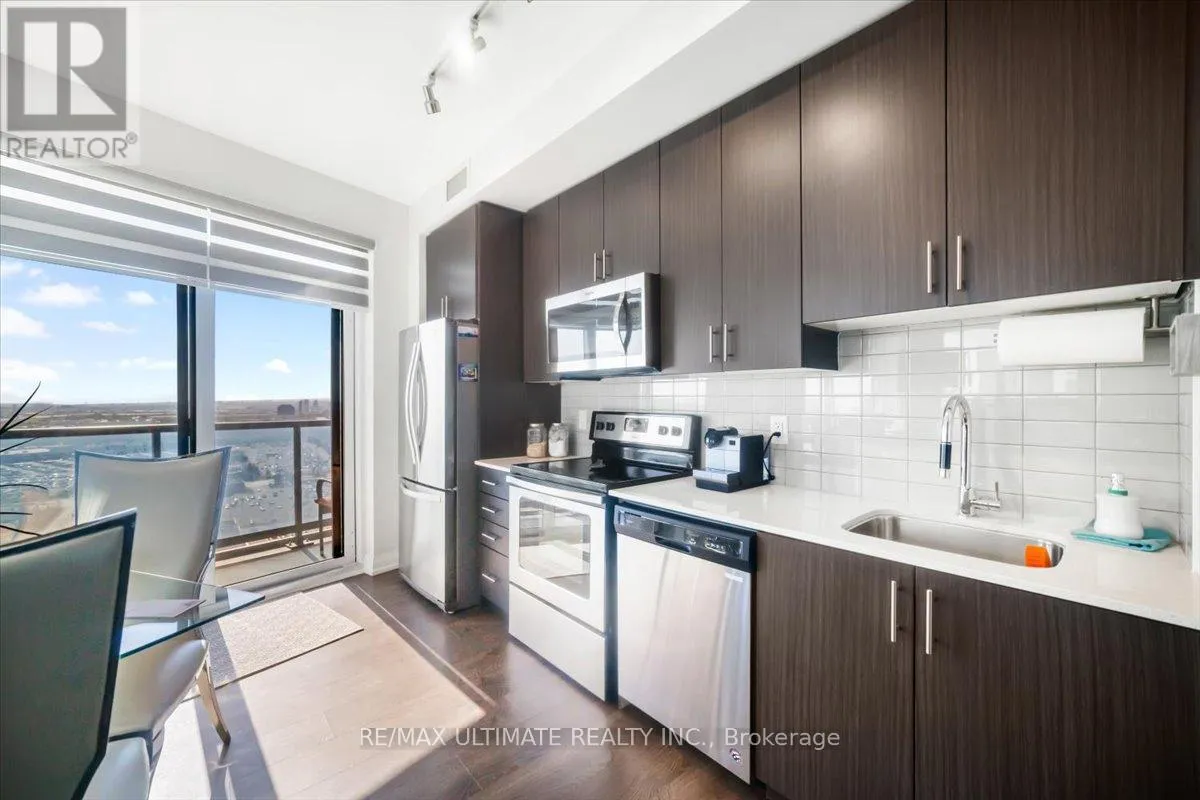 HIGHWAY 7 & WESTON RD Welcome to Unit 2008 at Centro Square Condominiums, where modern living meets unmatched convenience in the heart of Vaughan. This spacious 2-bedroom, 2-bathroom corner suite offers a bright layout filling the home with natural light and providing sweeping views of the city skyline over a wrap-around balcony. The kitchen is equipped with upgraded stainless steel appliances, seamlessly flowing into the combined living and dining area. Both bedrooms are generously sized, with the master featuring its own ensuite, while the second full bathroom ensures comfort for family, guests, or a work-from-home setup. Residents enjoy access to resort-style amenities including a fitness centre, indoor pool, party and meeting rooms, golf simulator, outdoor BBQ and lounge area, billiards & media rooms, guest suites, and 24-hour concierge service. Perfectly located with direct access to shopping, dining, and entertainment all across the street, major highways, and just minutes from Vaughan Metropolitan Centre subway station, this unit delivers the ideal blend of style, function, and urban lifestyle. Top of the line upgrades added include under-mount lighting, glass shower enclosure in master ensuite, stainless steel appliances, full-size washer & dryer, mirrored closet doors, kitchen cabinetry, and bath & kitchen fixtures. (id:27476)